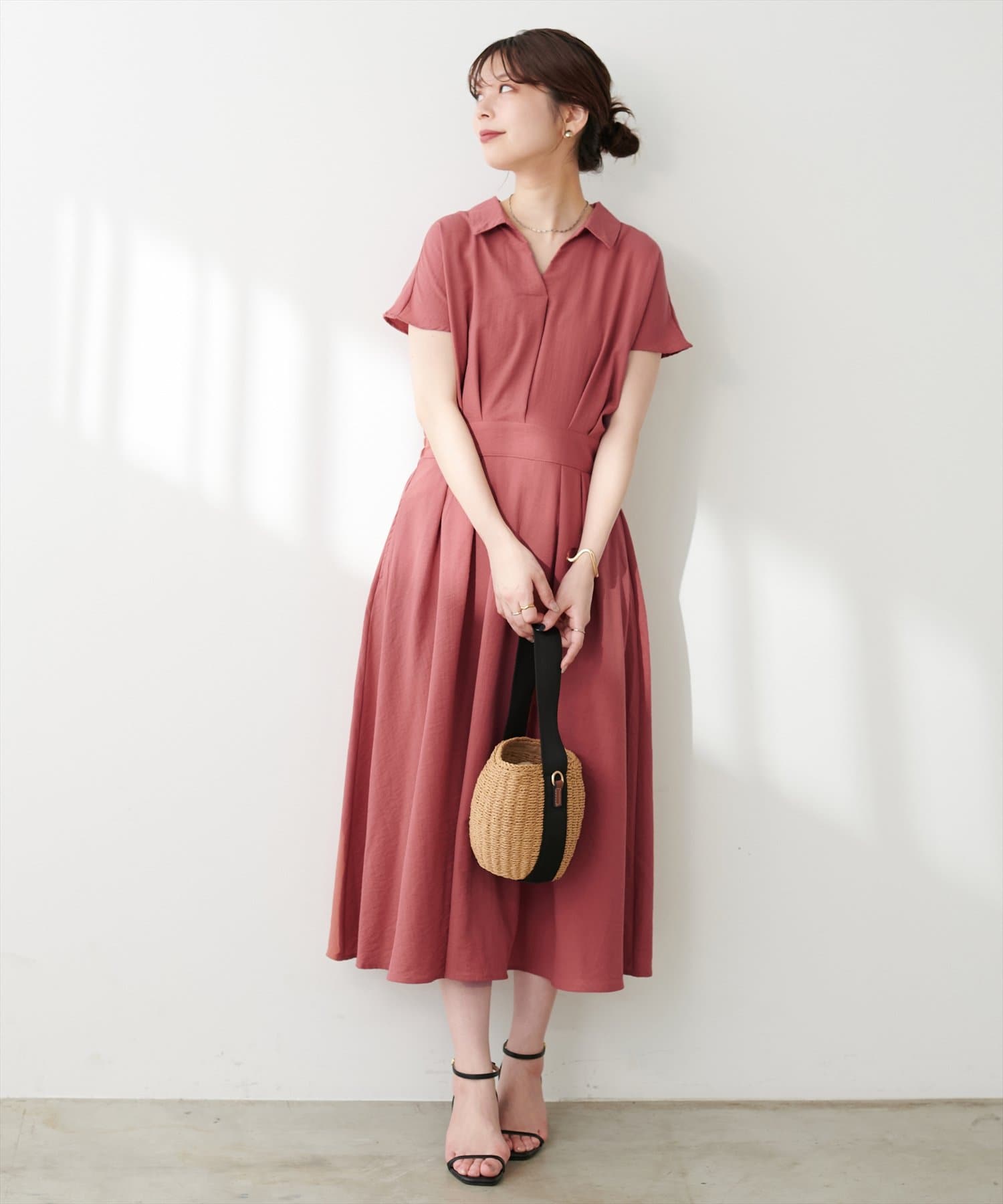 0341090460 涼しげスキッパー衿お上品ワンピース