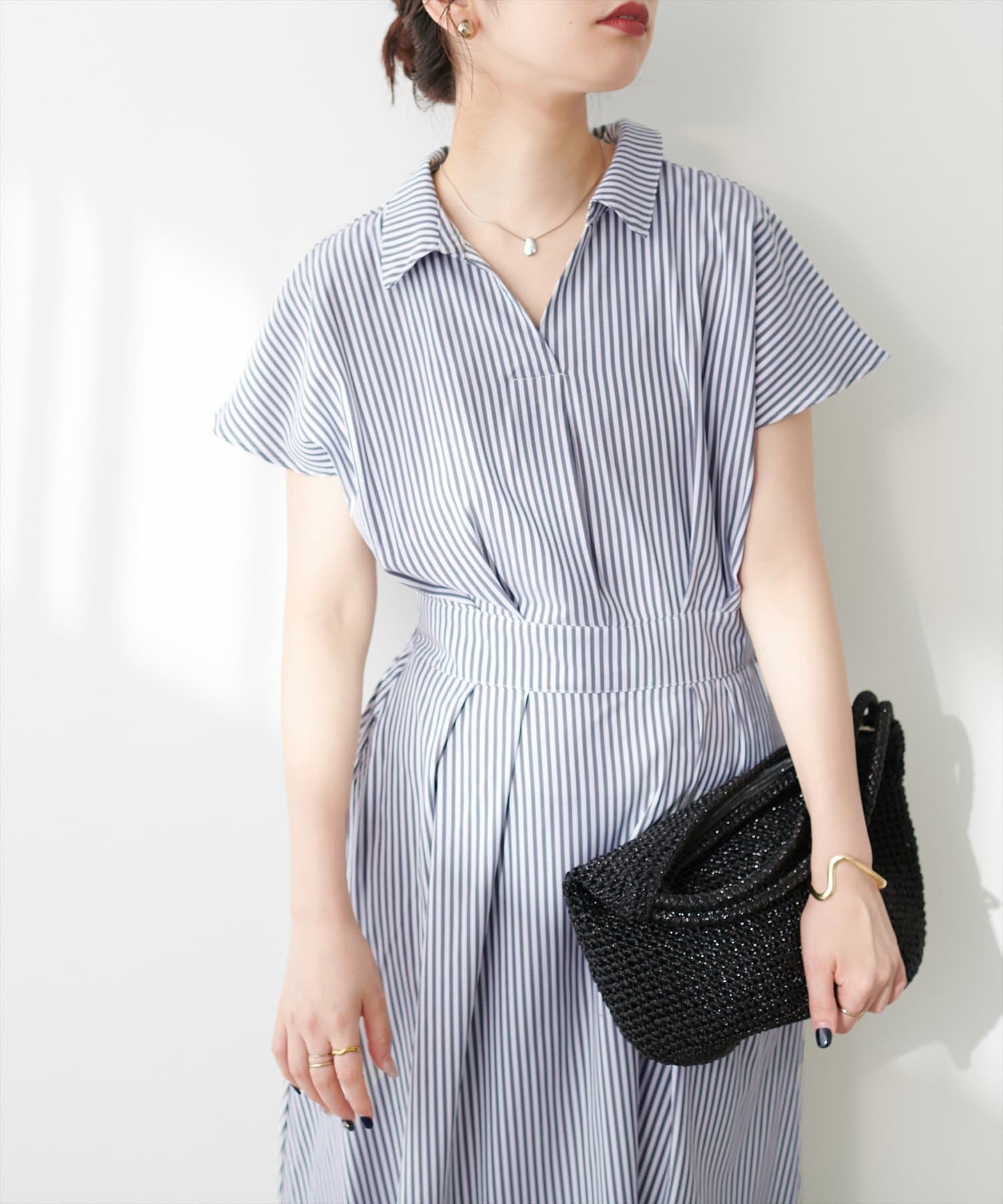 【WEB限定】涼しげスキッパー衿お上品ワンピース(Lサイズ)