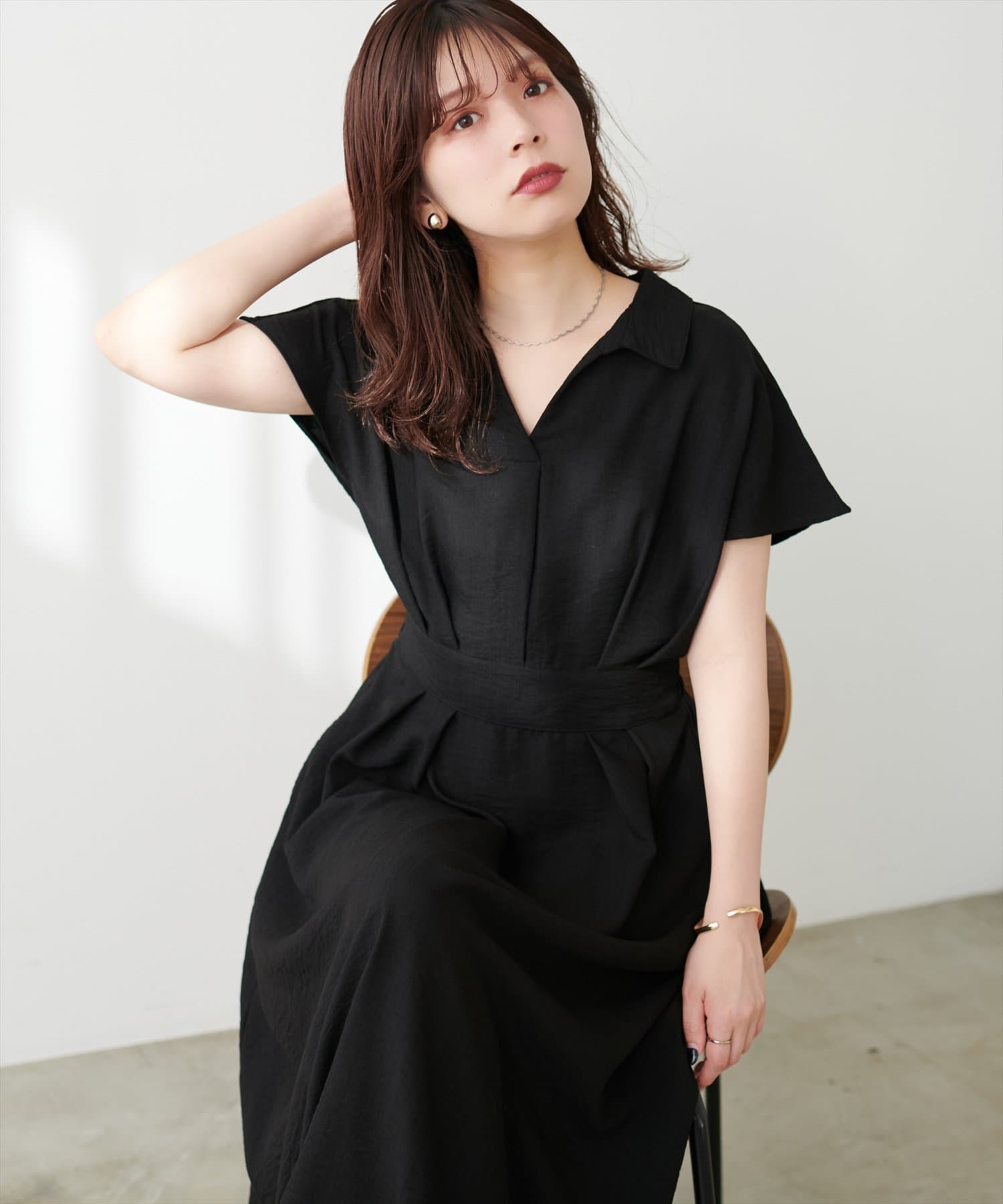 【WEB限定】涼しげスキッパー衿お上品ワンピース(Lサイズ)