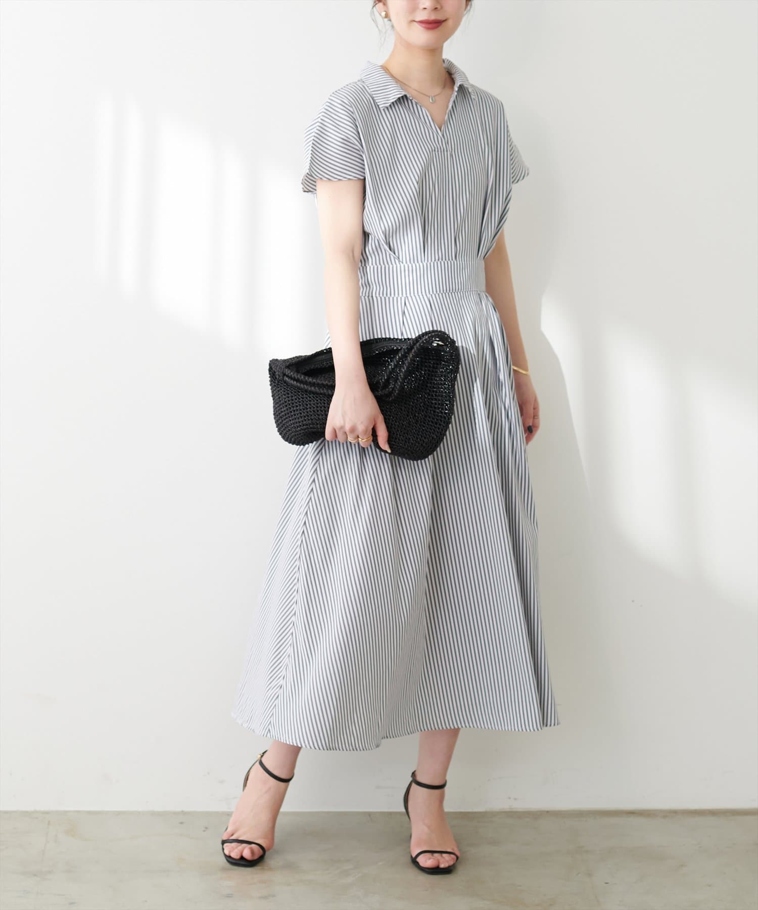 0341090460 涼しげスキッパー衿お上品ワンピース
