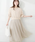 異素材を組み合わせて女性らしさをプラスし、さらっとお召し頂くだけでコーディネートがきまる優秀ワンピース。