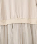 コットンを含む柔らかなスウェットと、ふんわりとしたチュールスカートをドッキングしたトレンド感のある1着。