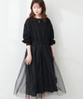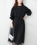 異素材ドッキングチュールワンピース