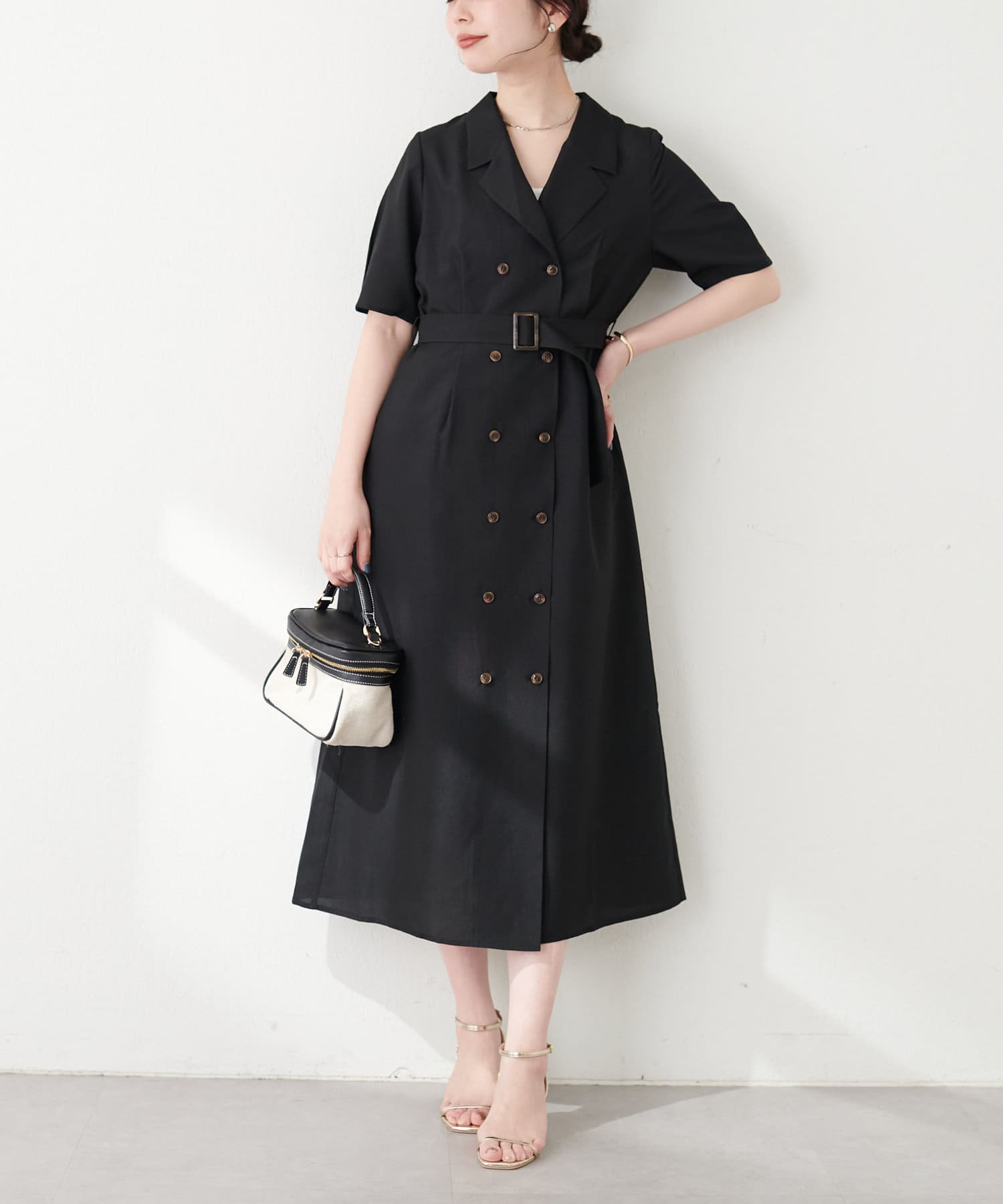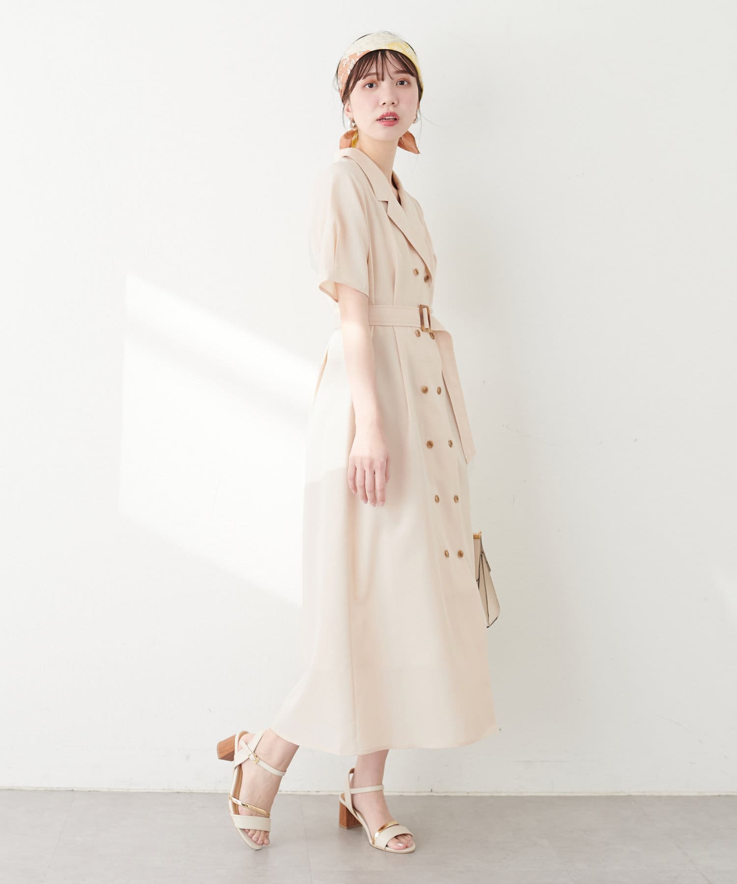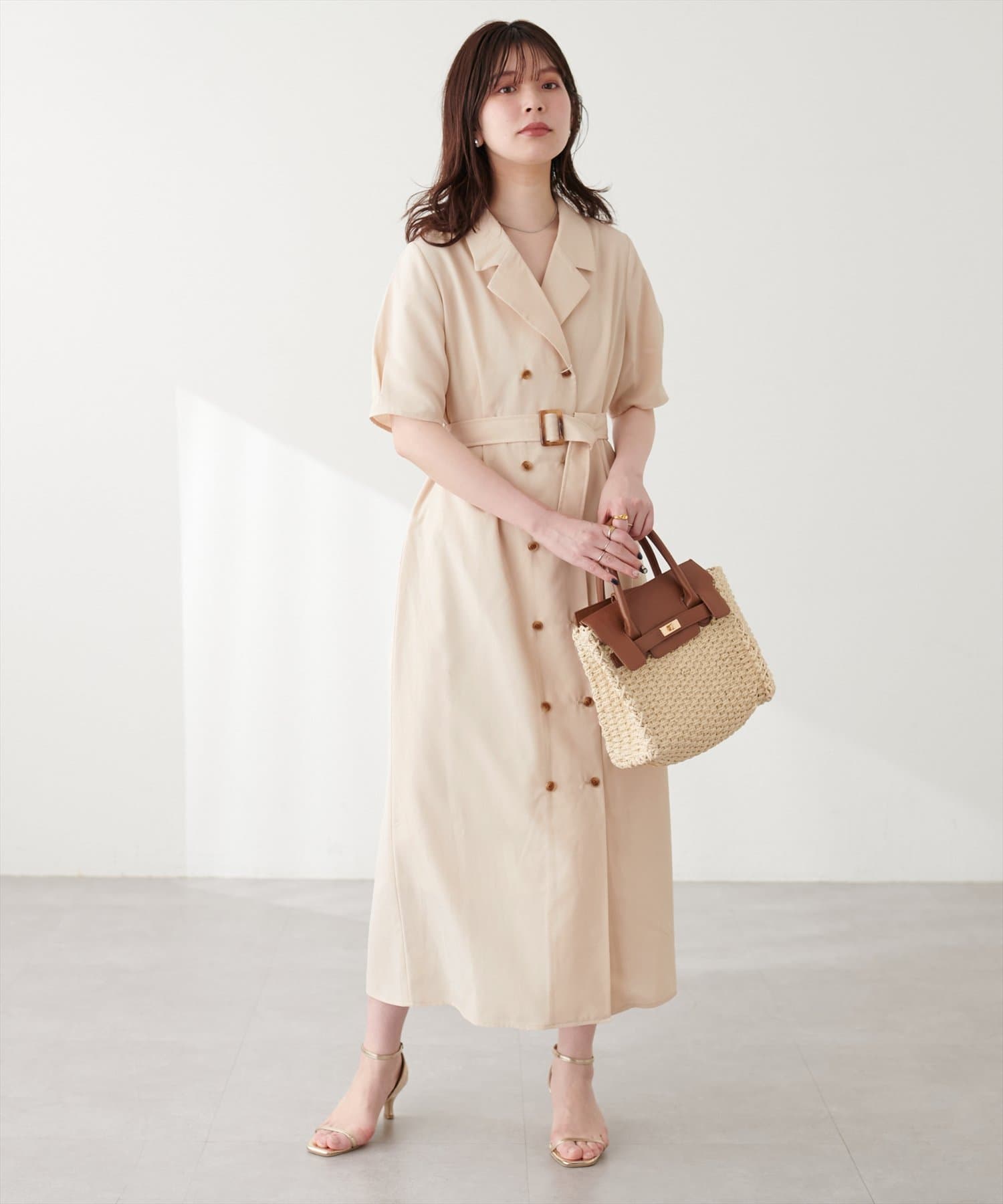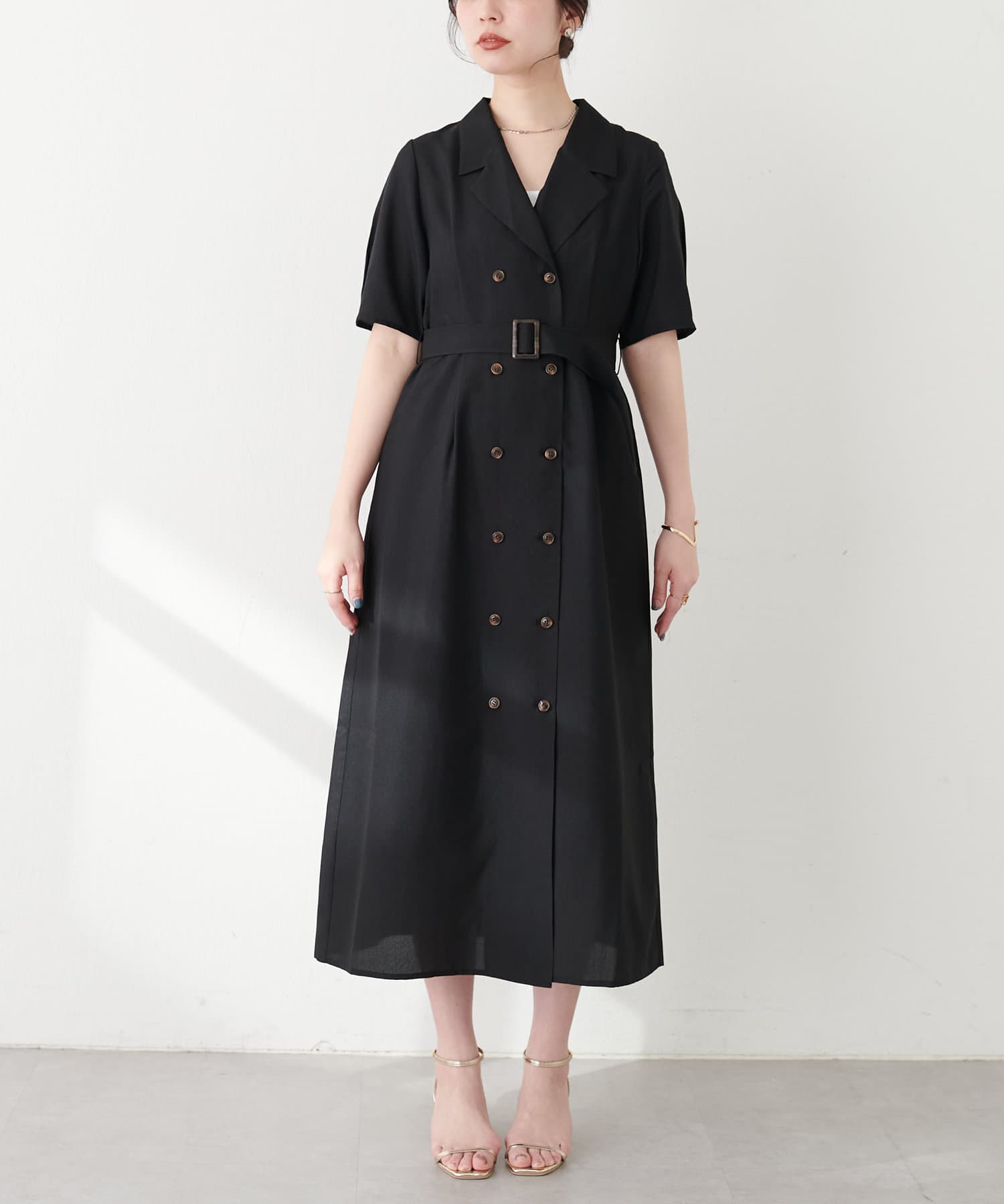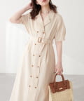 ダブルボタン使いがポイントの、スタイルアップな美シルエットラインが魅力な今季注目のワンピース。