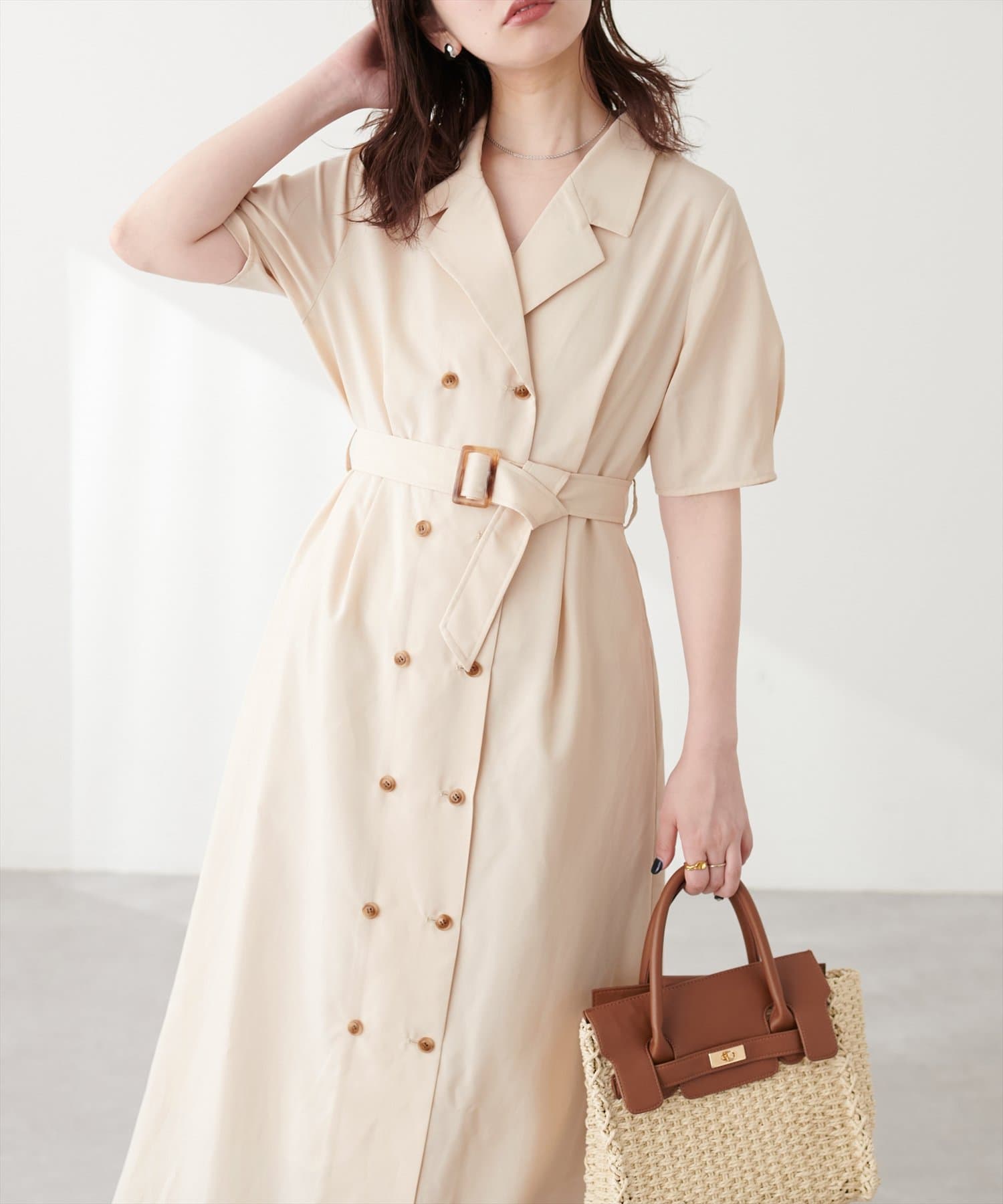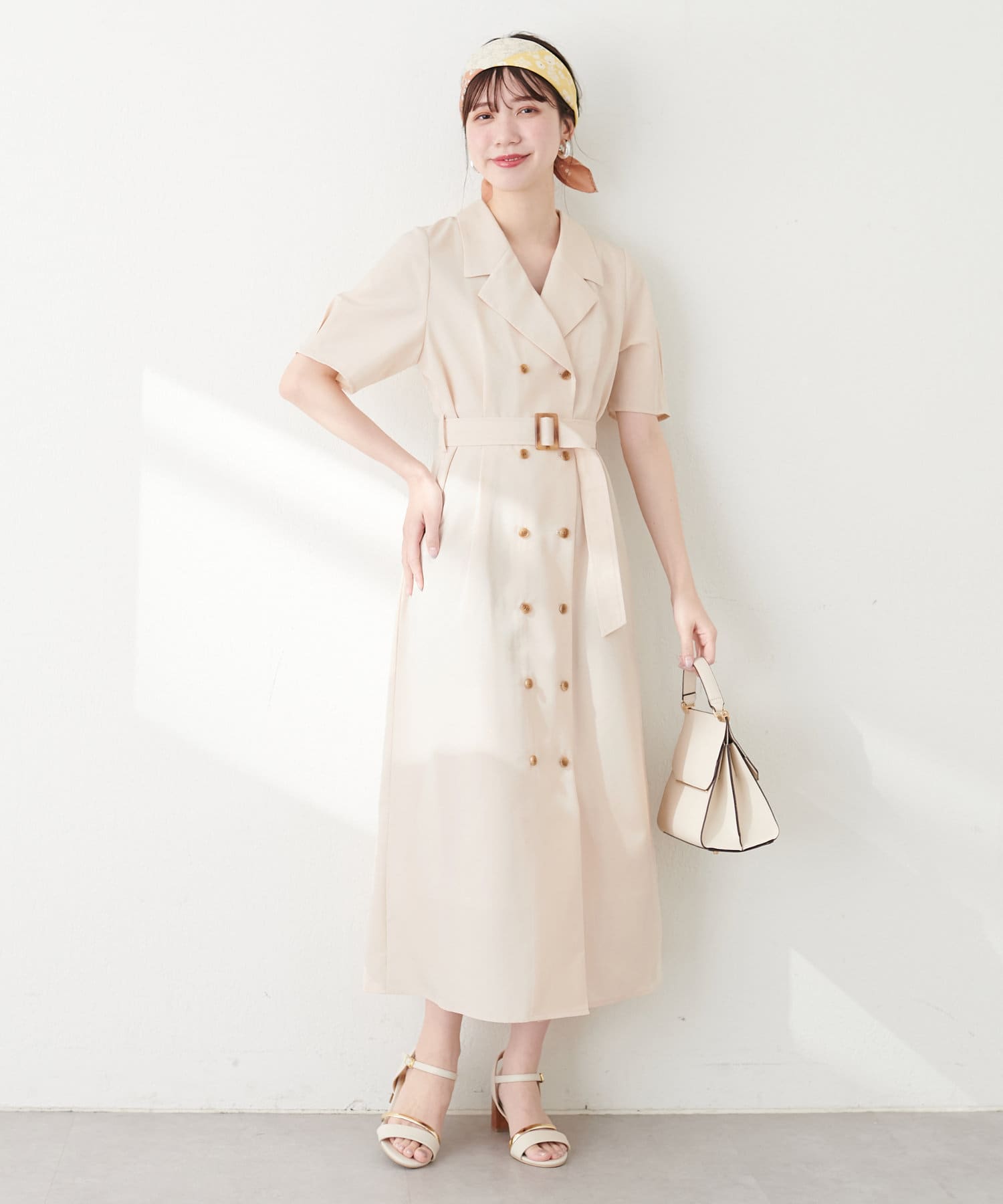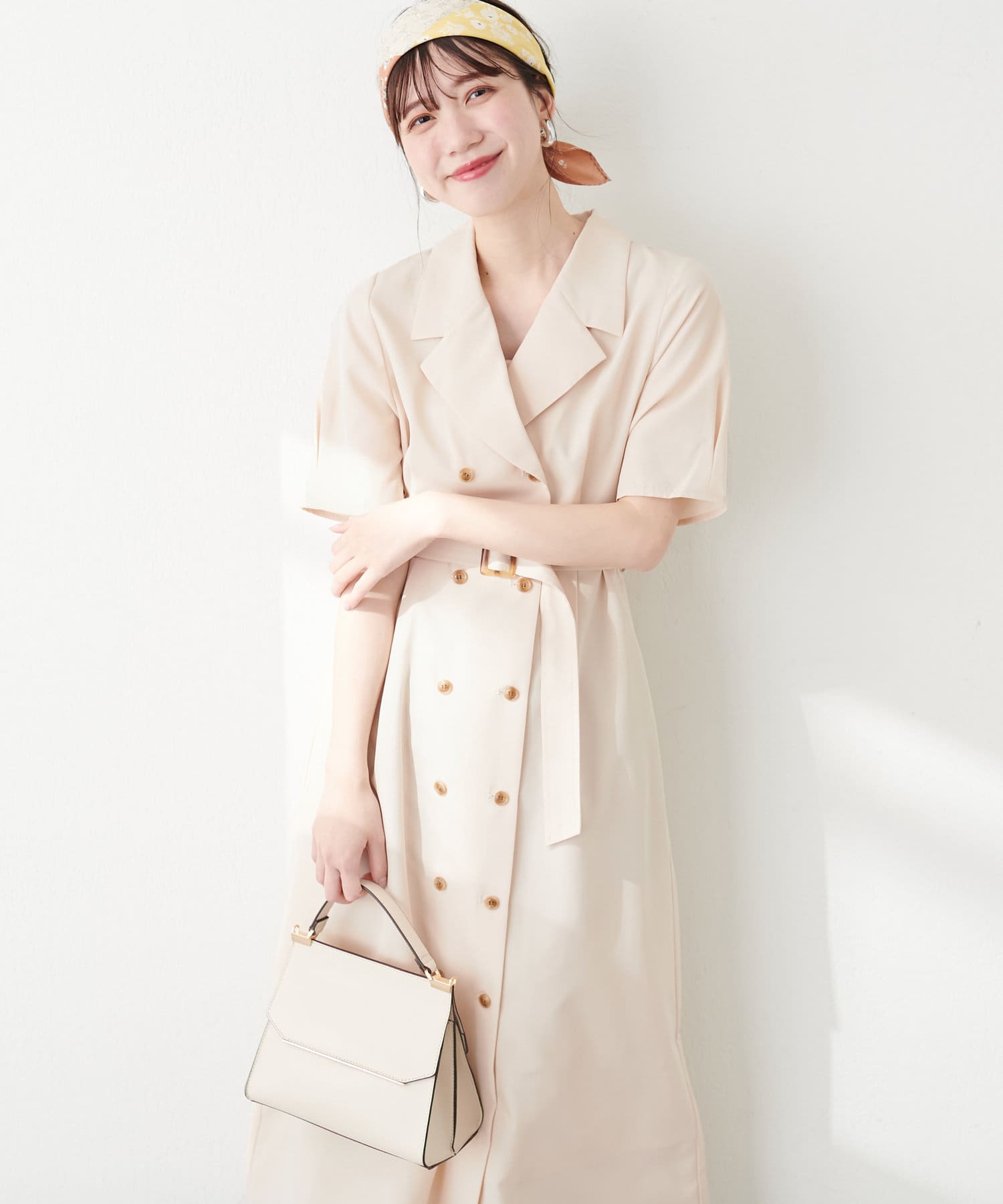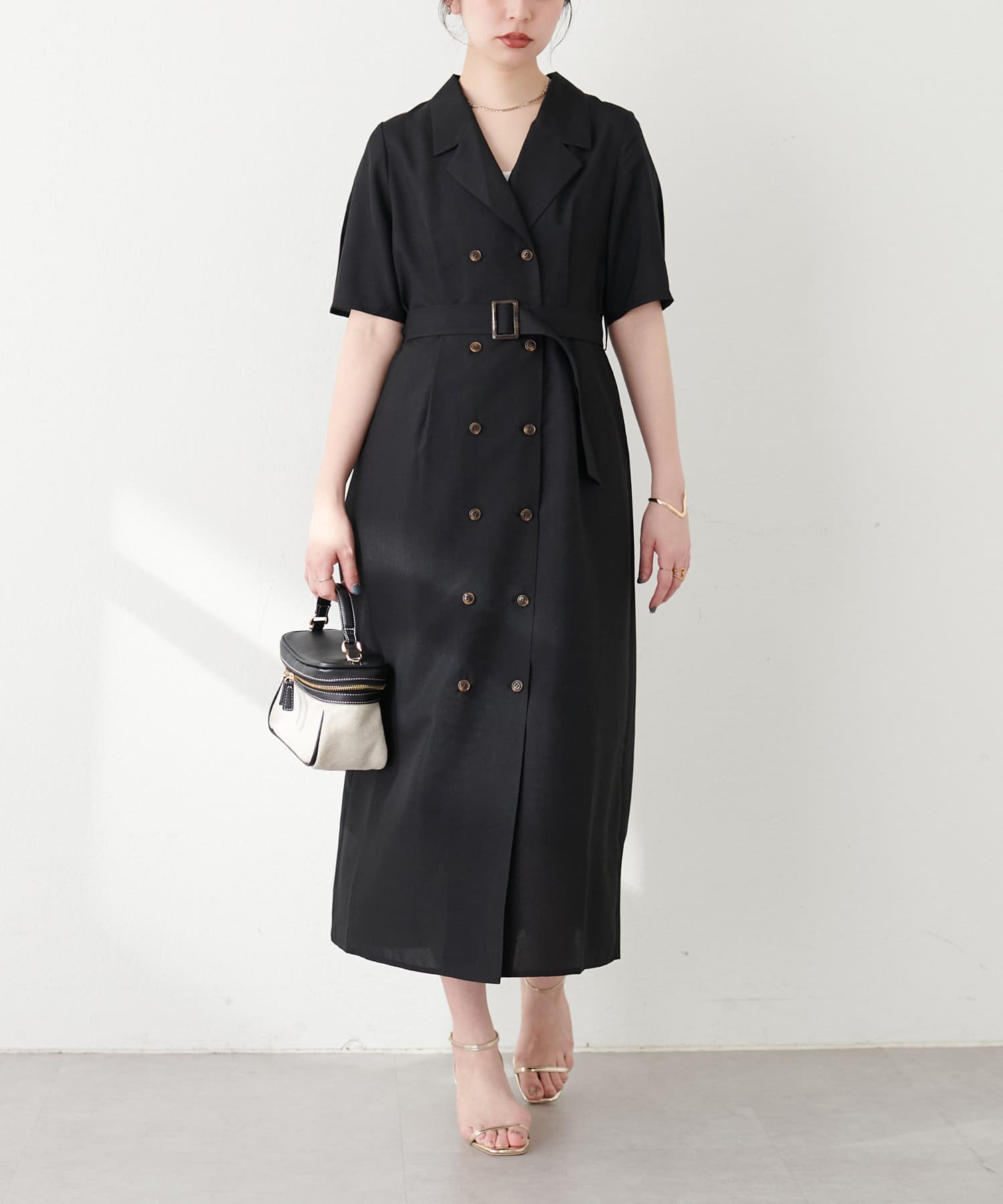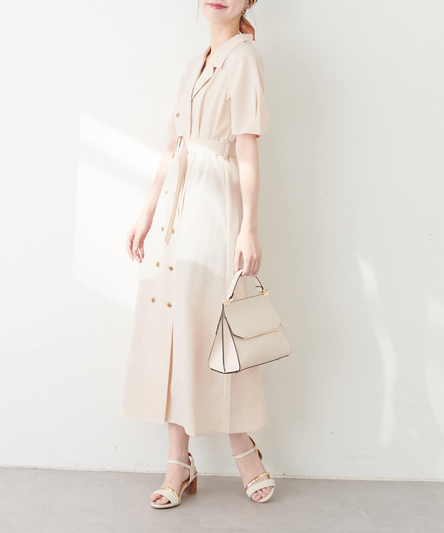 ダブルボタン使いがポイントの、スタイルアップな美シルエットラインが魅力な今季注目のワンピース。
