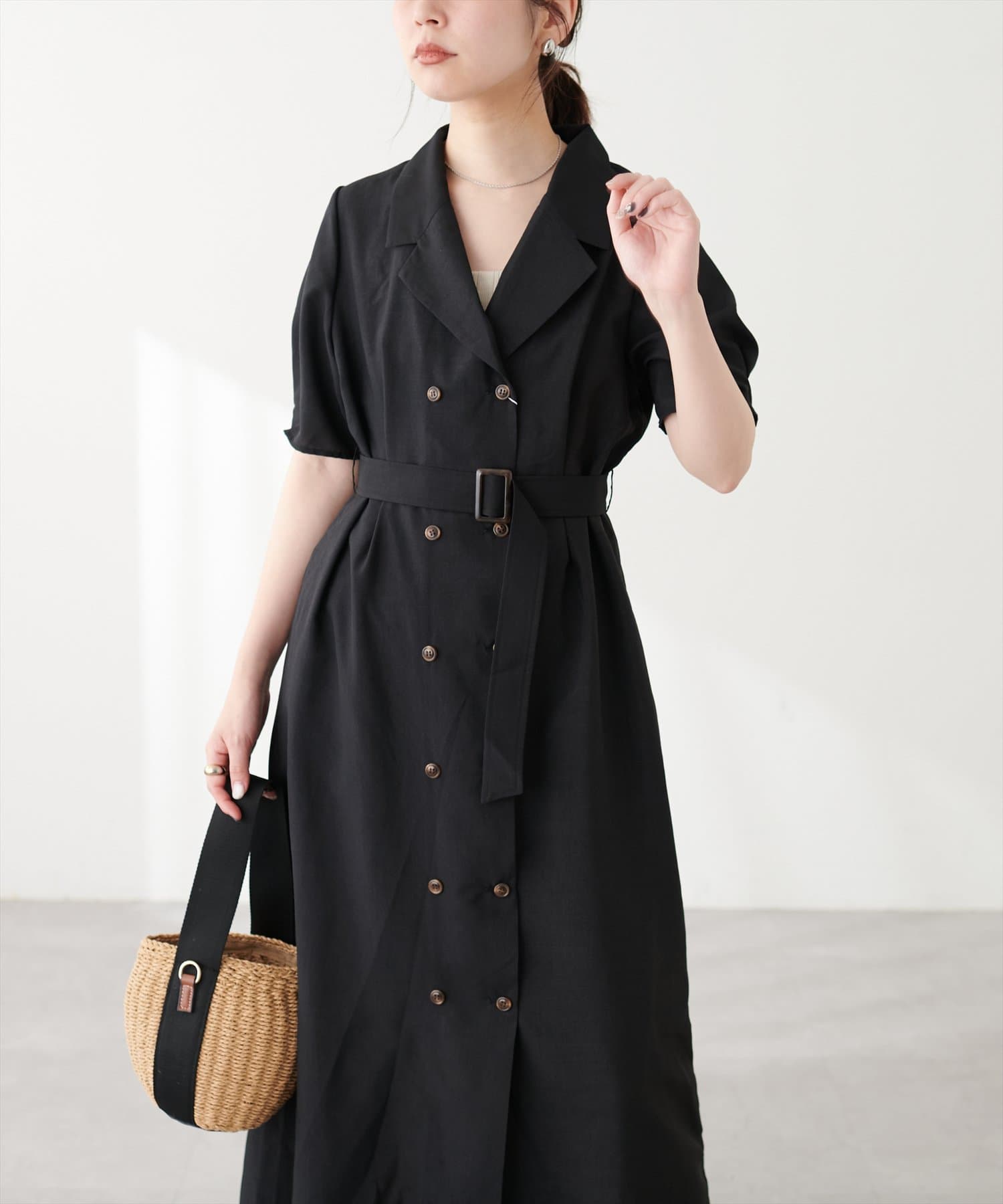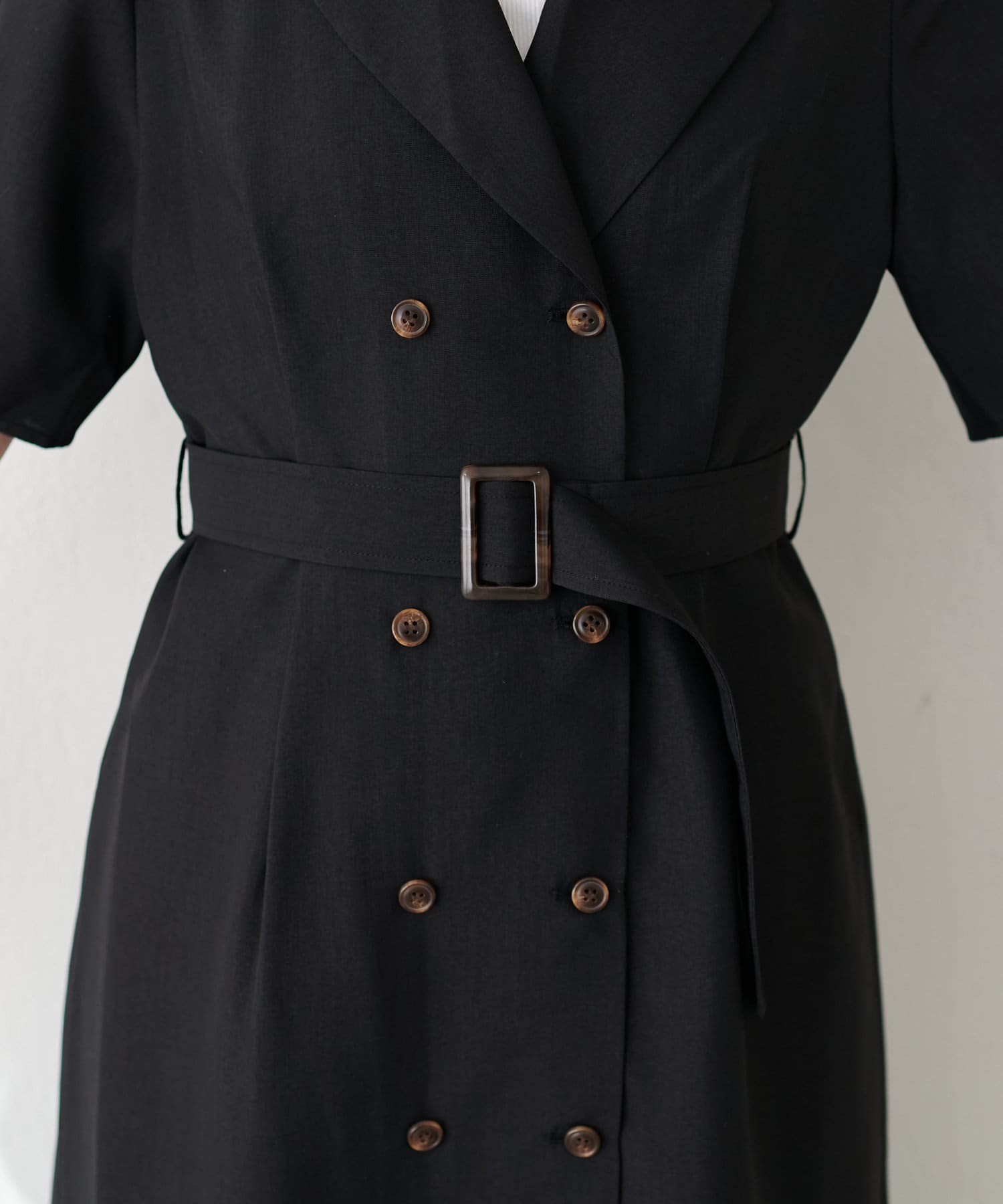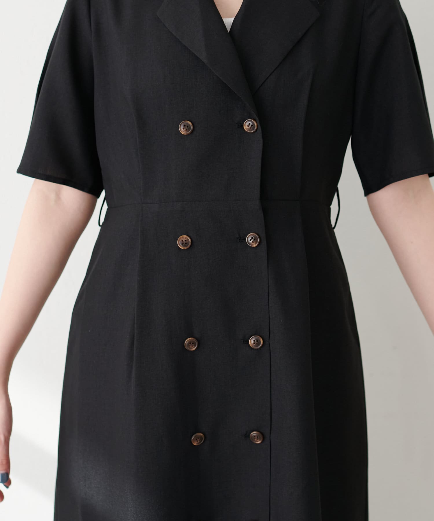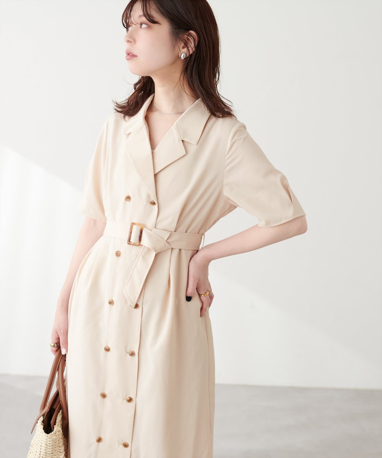 ダブルボタン使いがポイントの、スタイルアップな美シルエットラインが魅力な今季注目のワンピース。