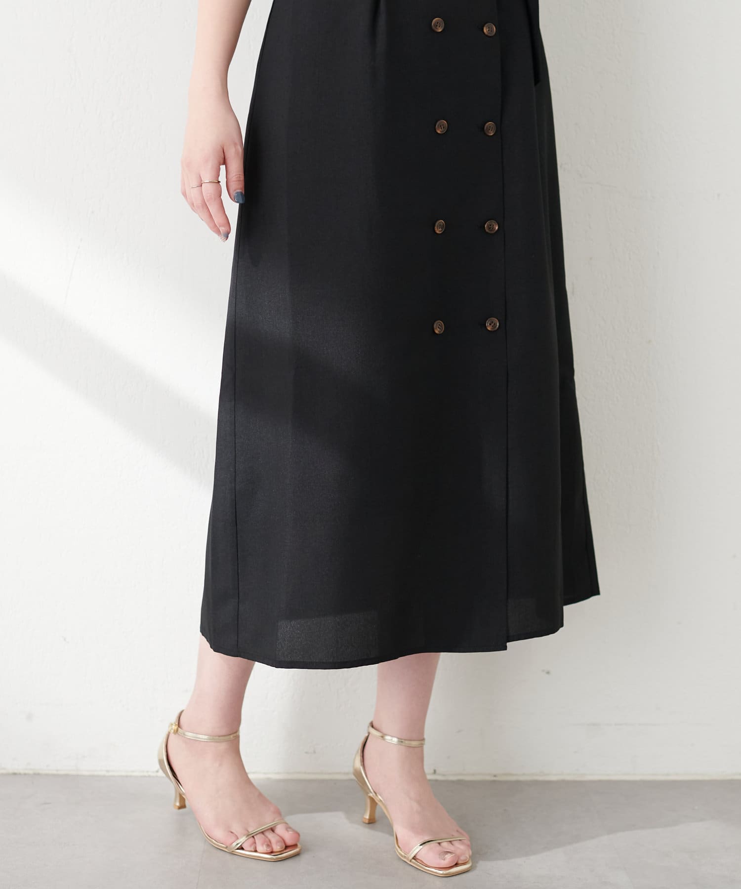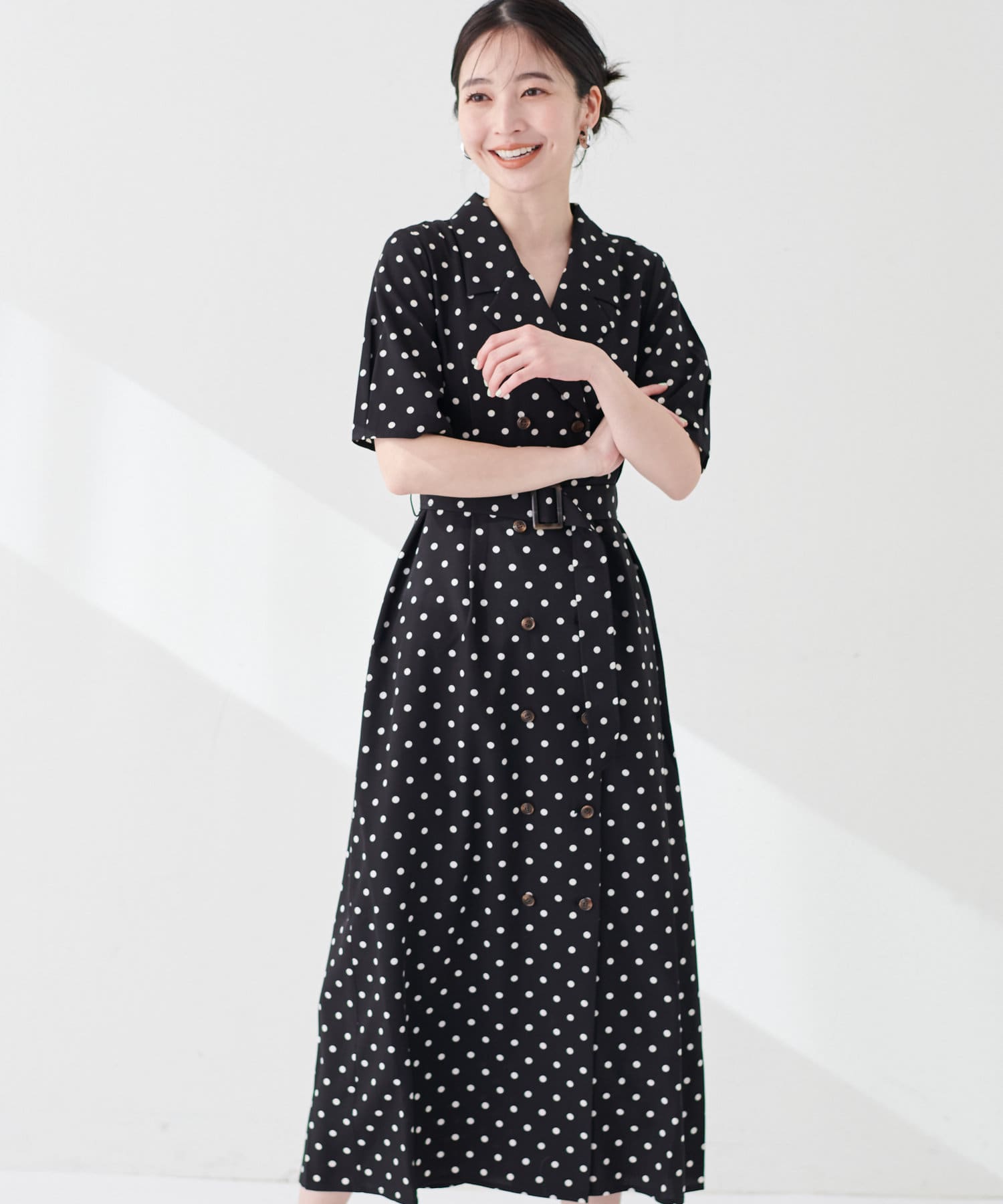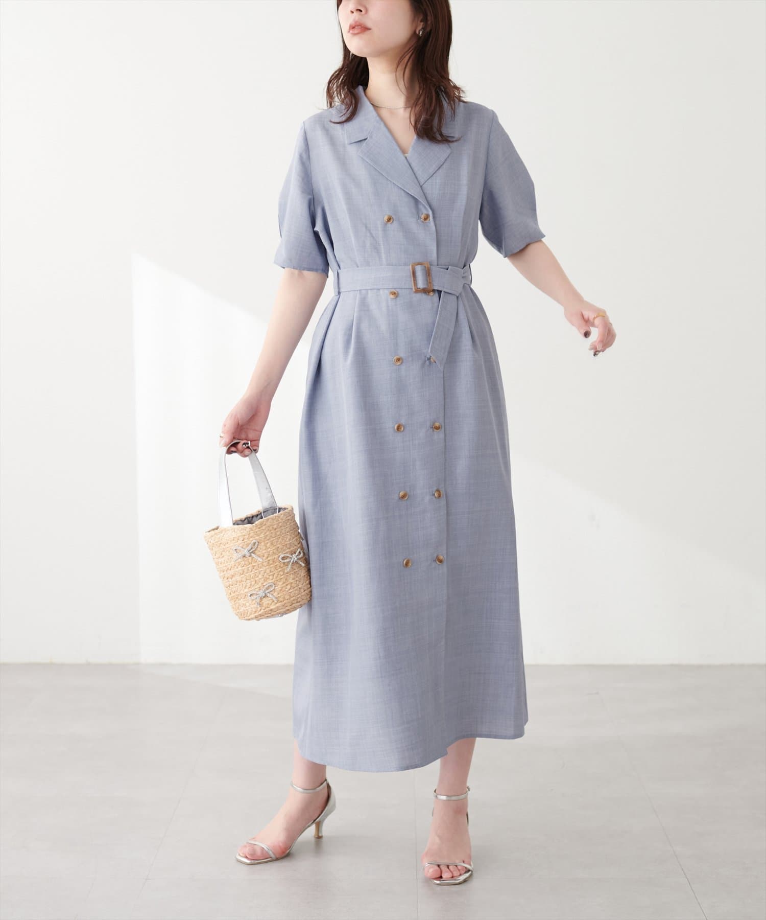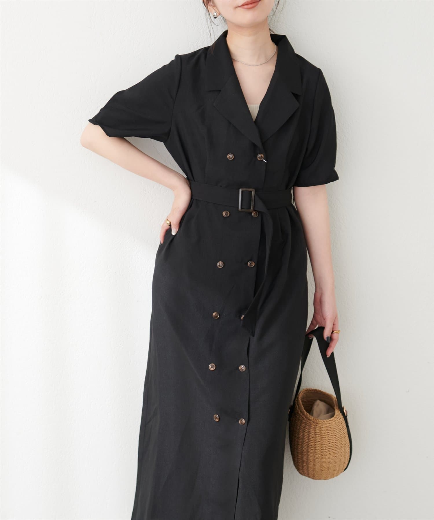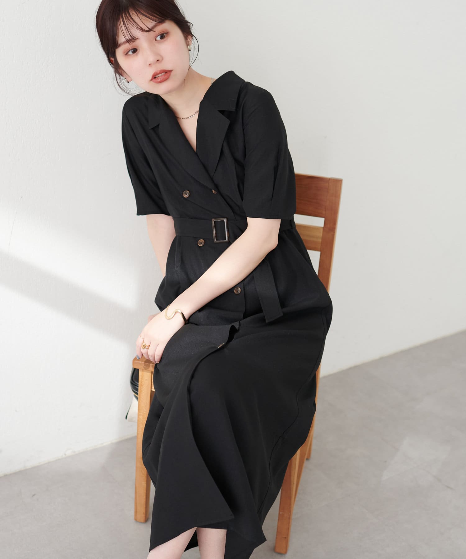 ダブルボタン使いがポイントの、スタイルアップな美シルエットラインが魅力な今季注目のワンピース。