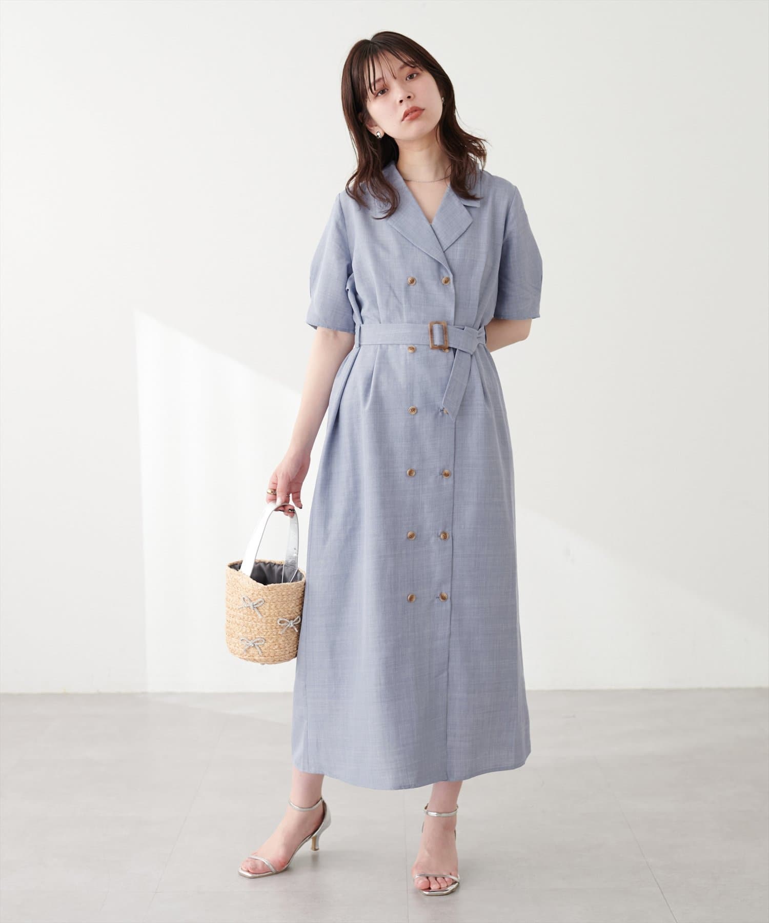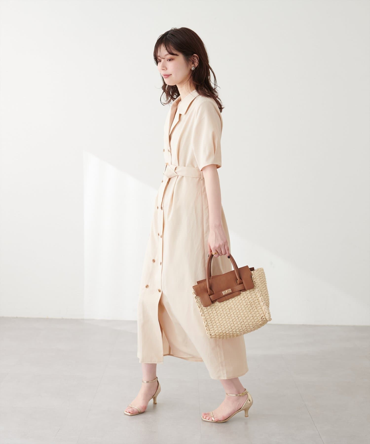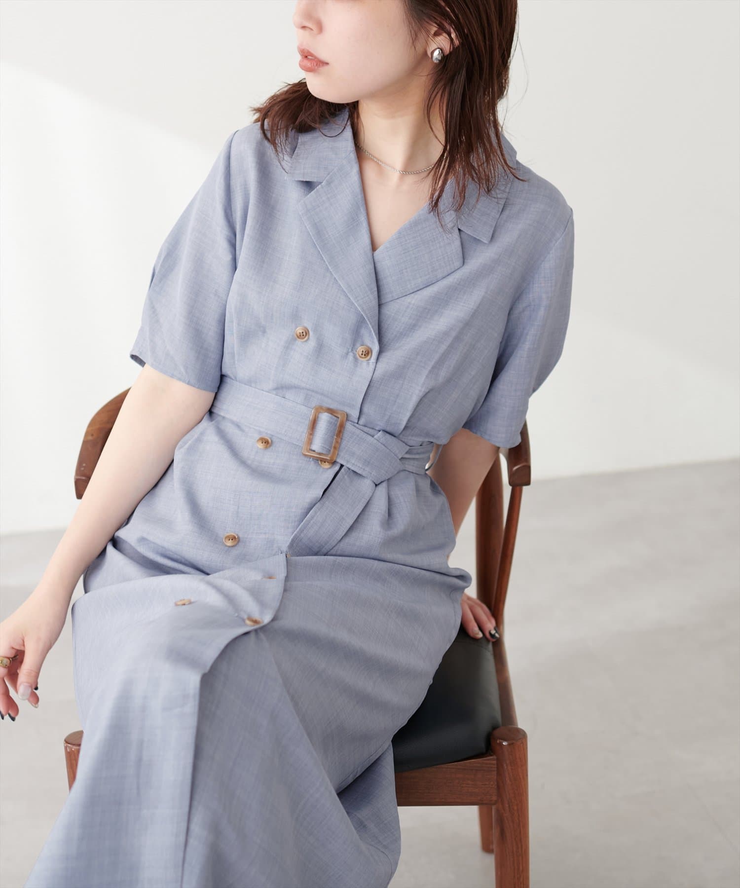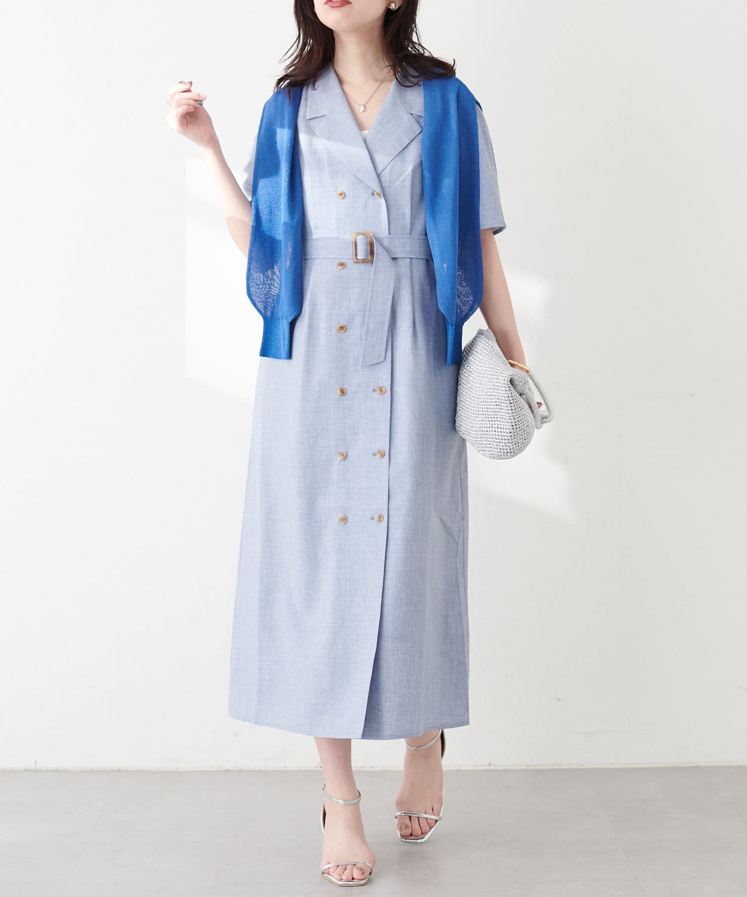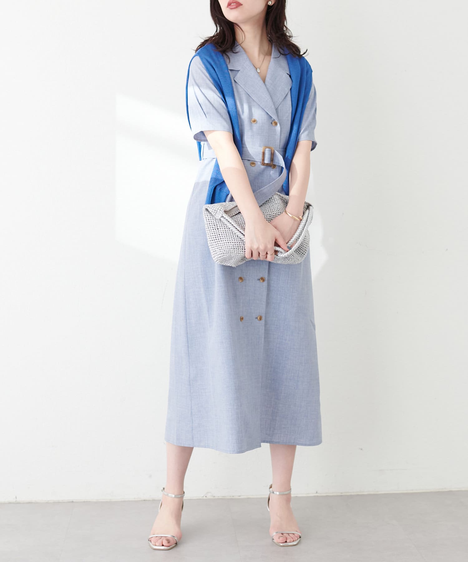 付属のベルトでウエストマークして頂くとメリハリが生まれ、よりすっきりとした印象でお召し頂けます。