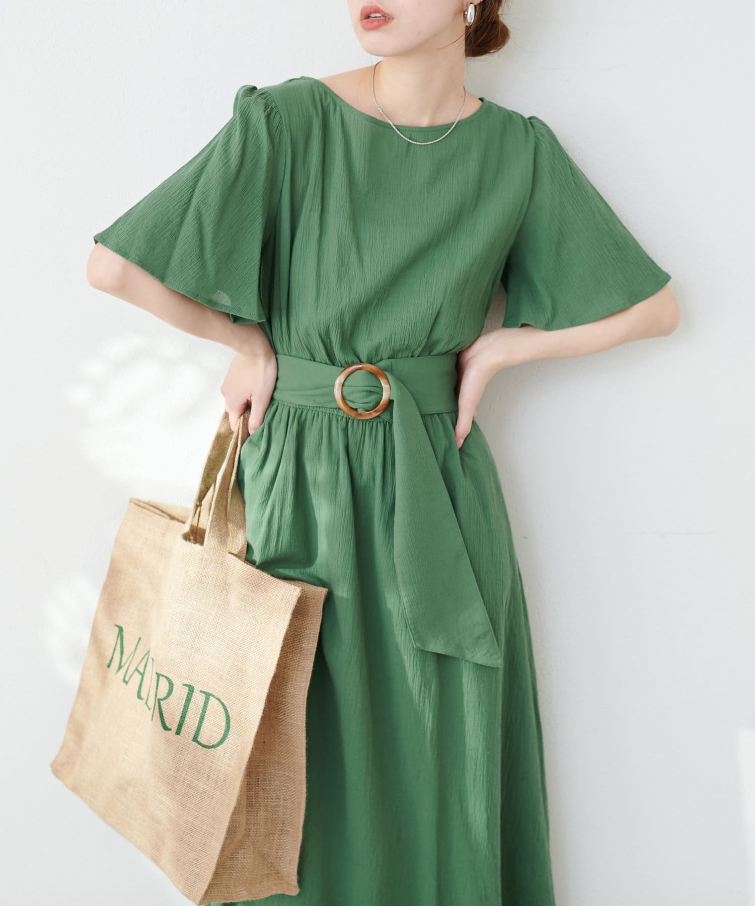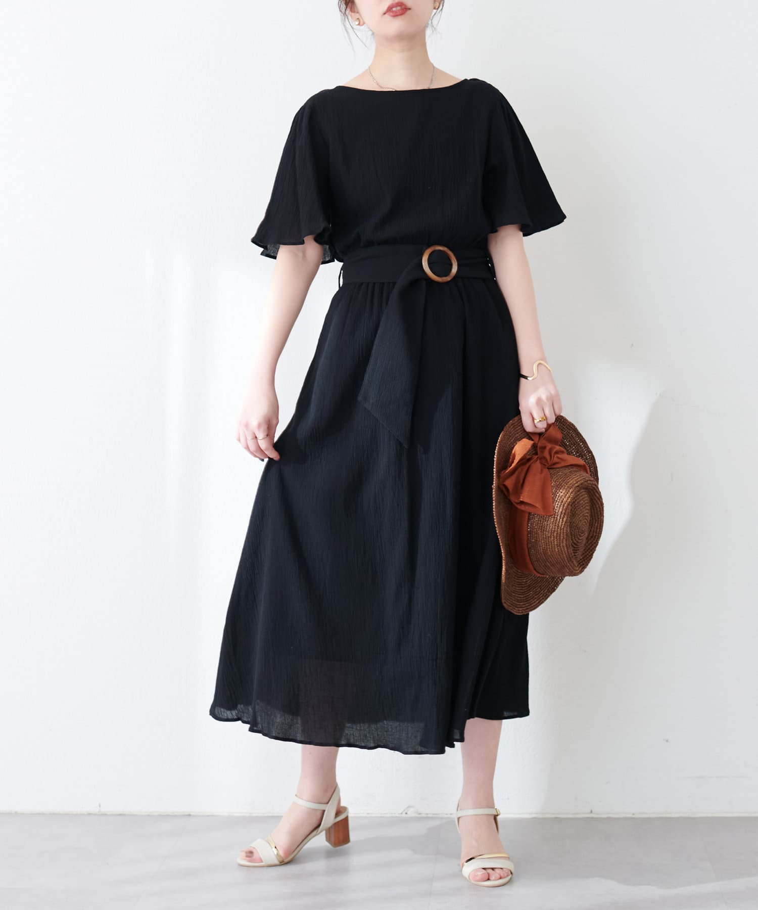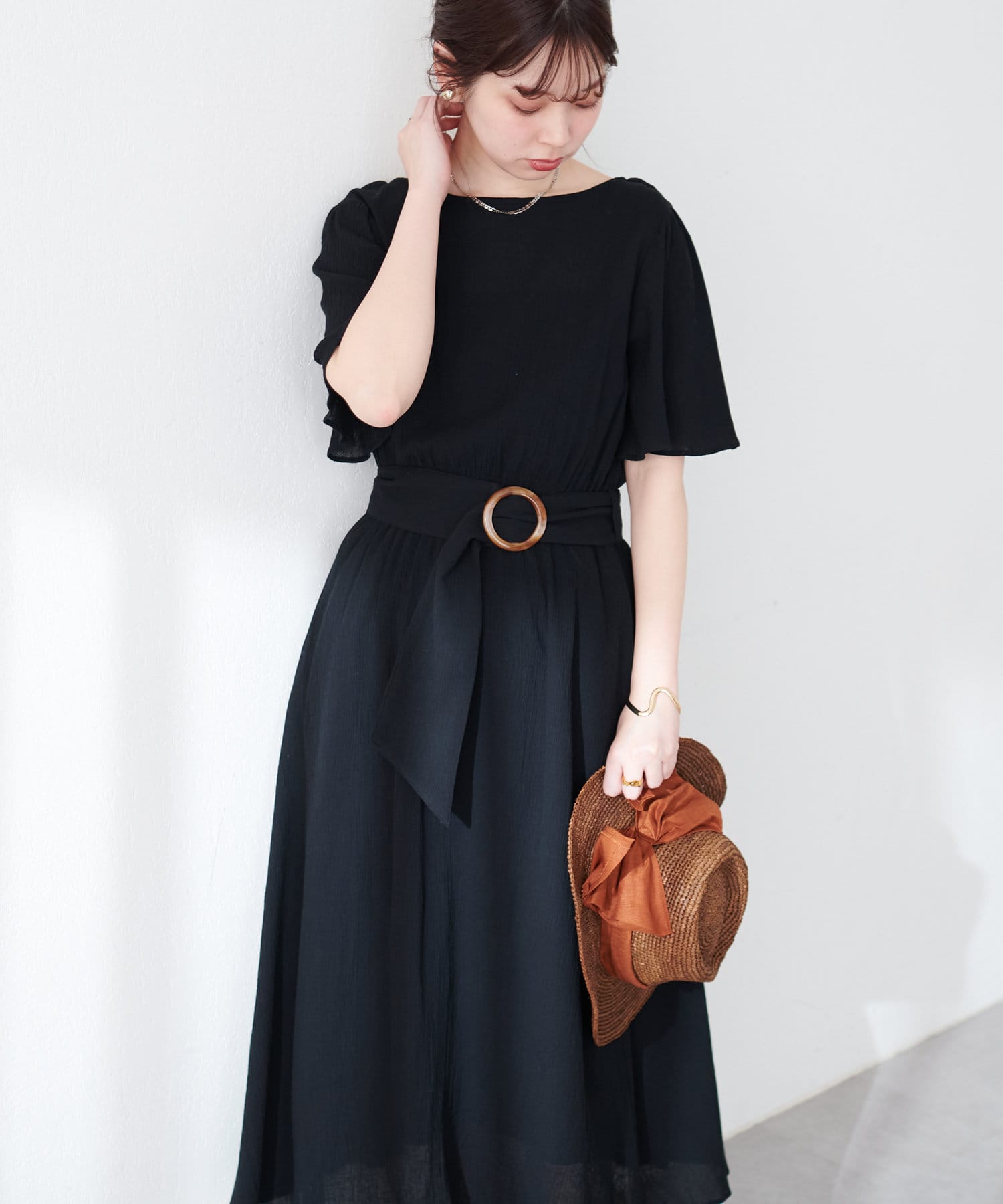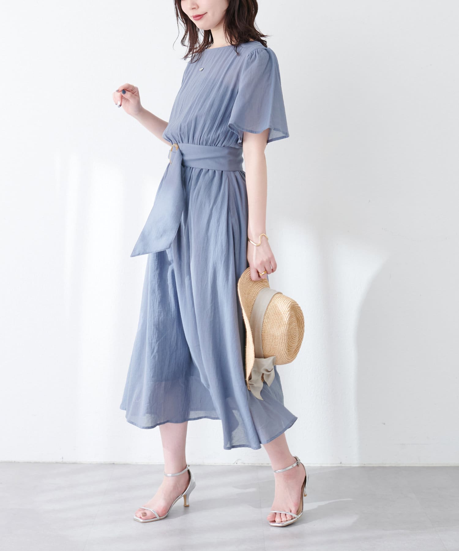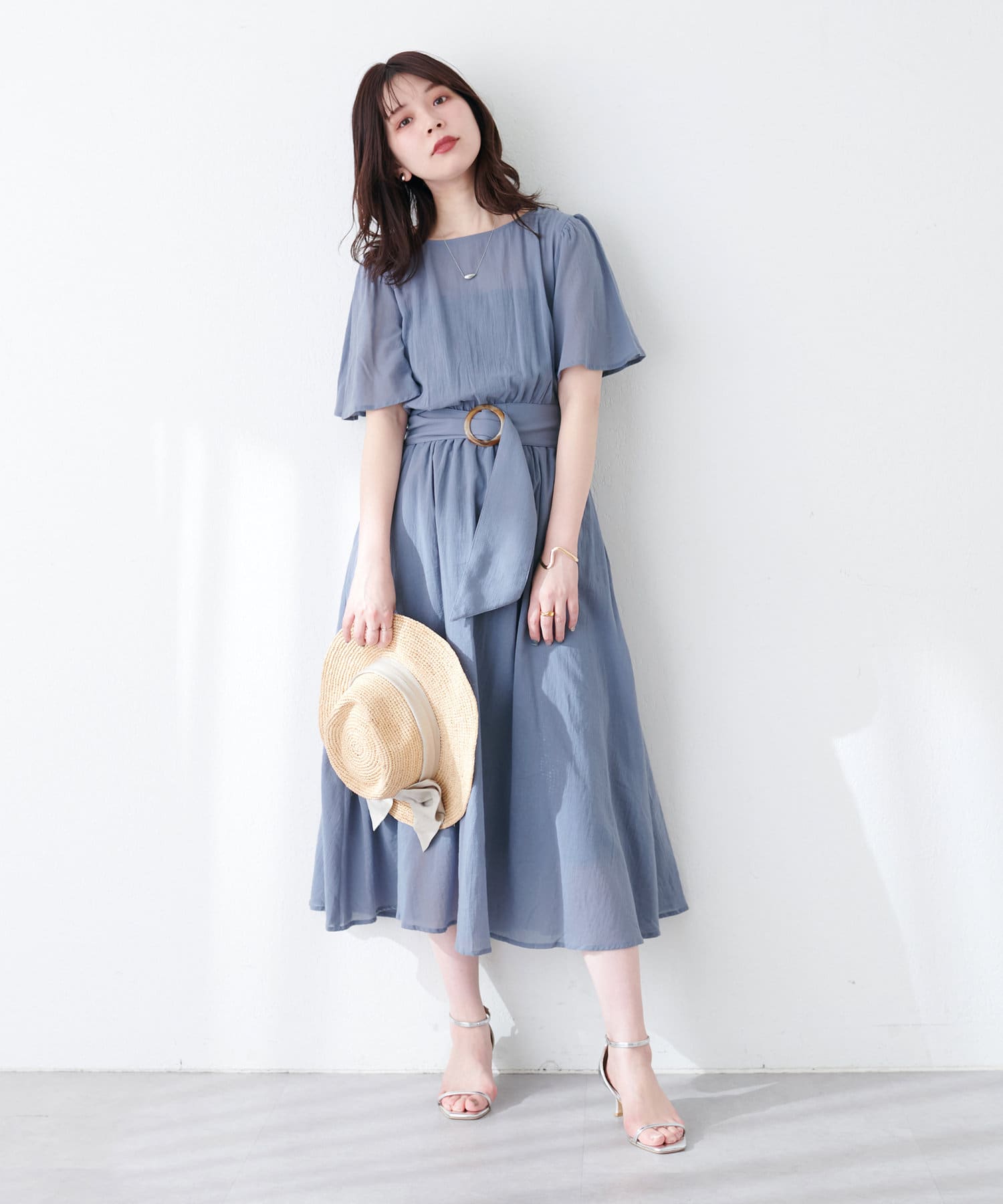付属のベルトでウエスト周りを華やかに彩れば、スタイルアップ効果も期待できる1枚。