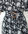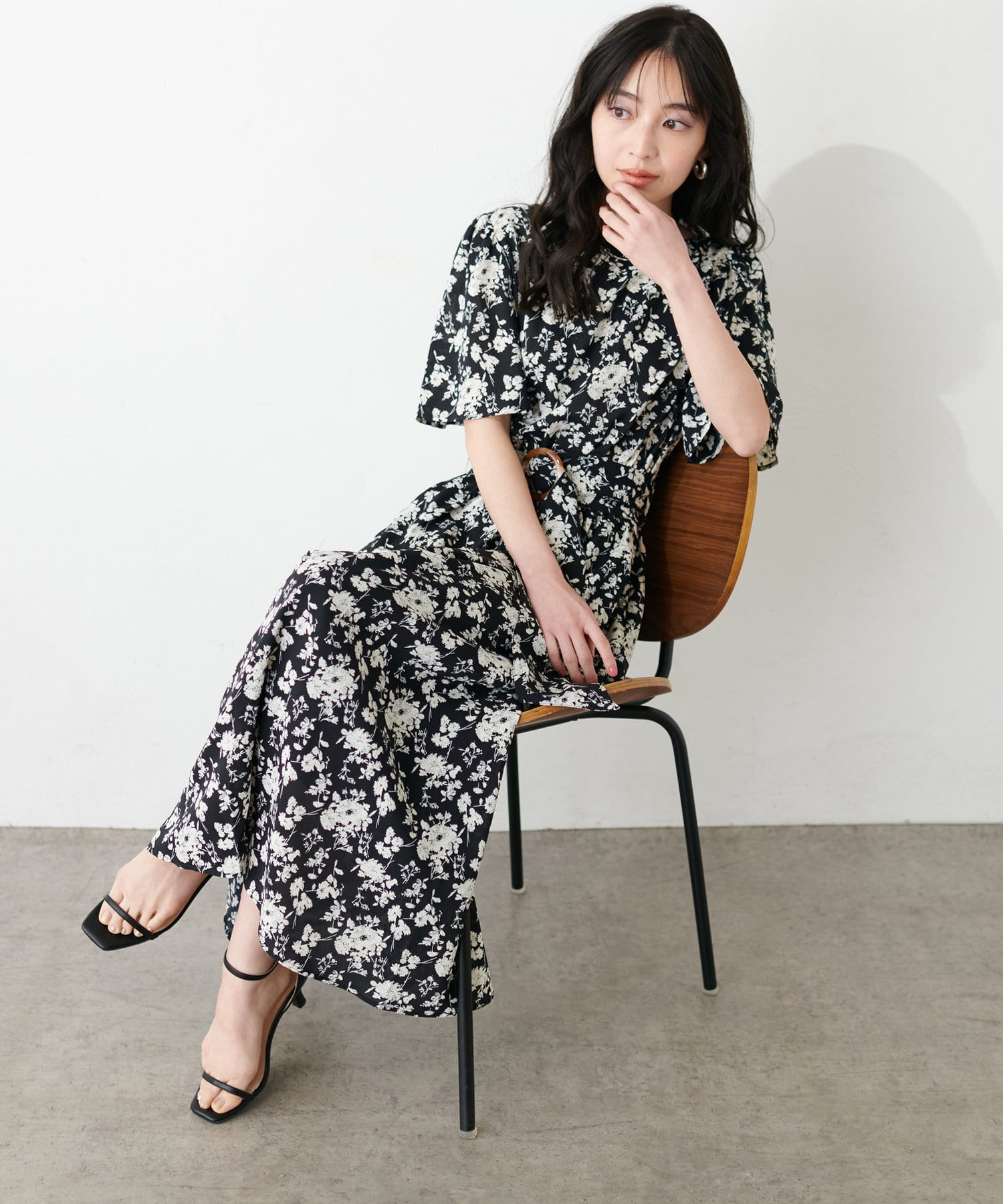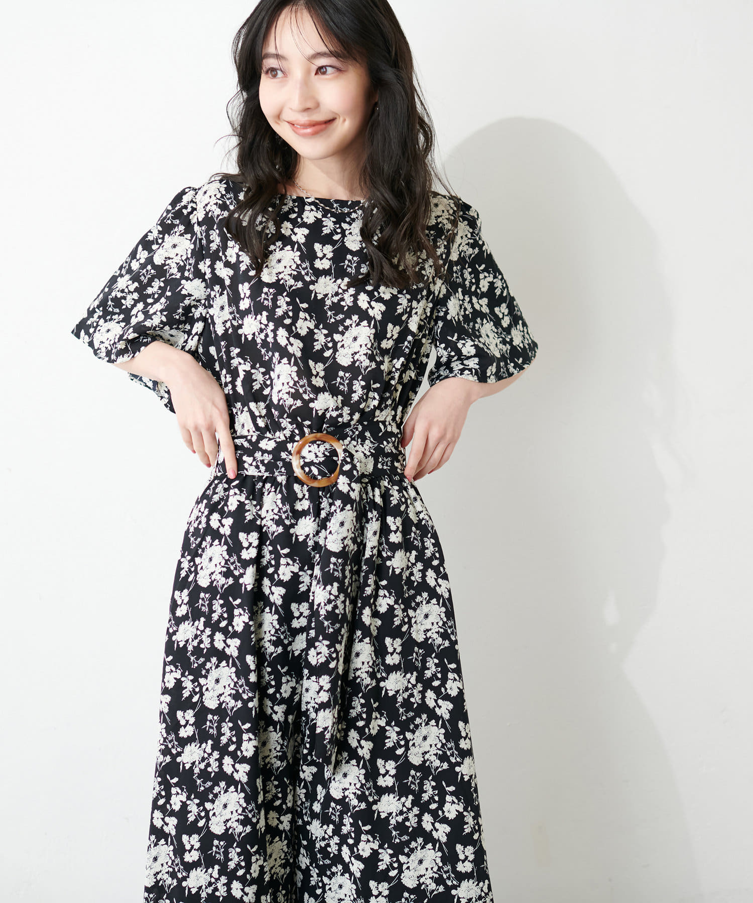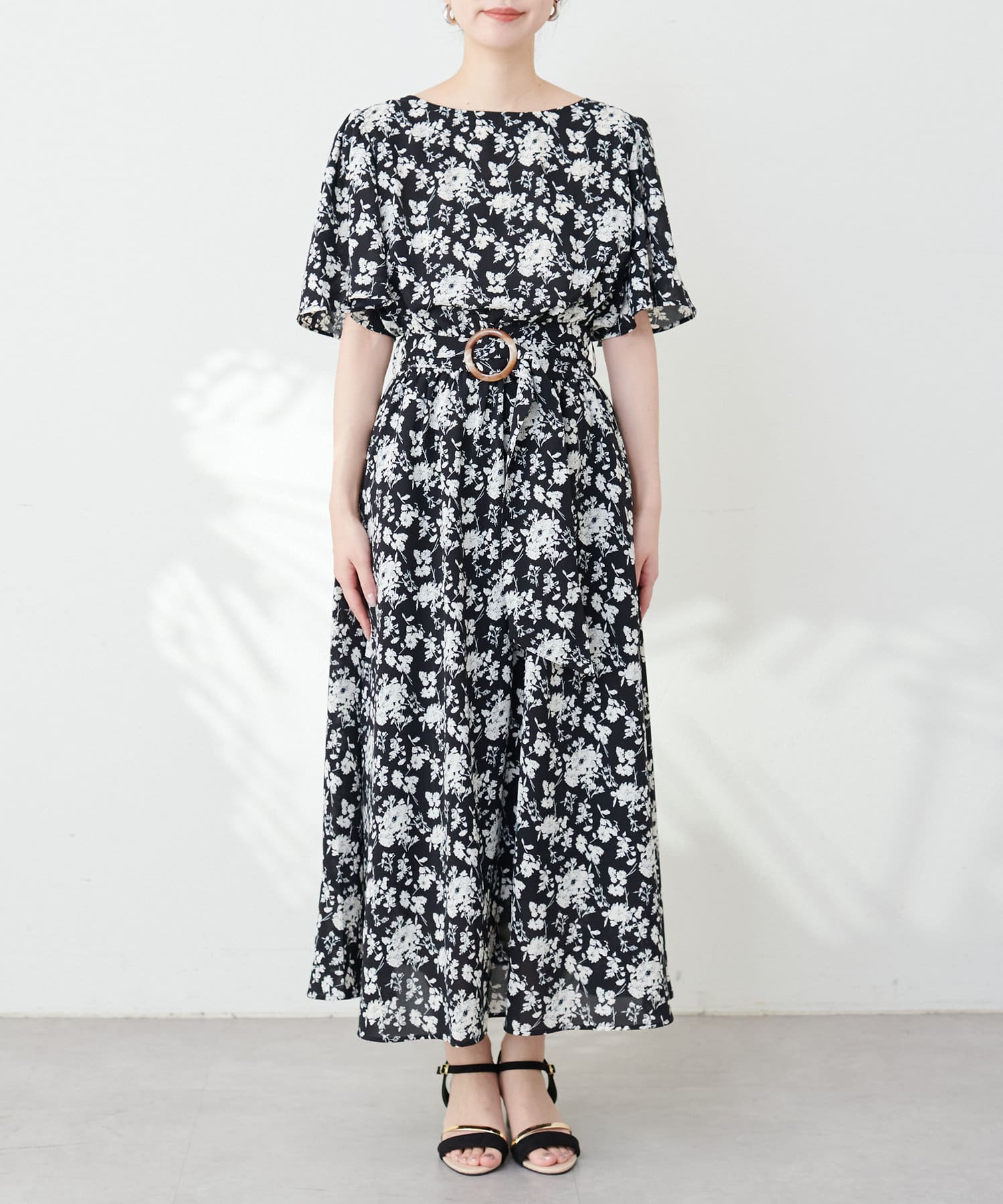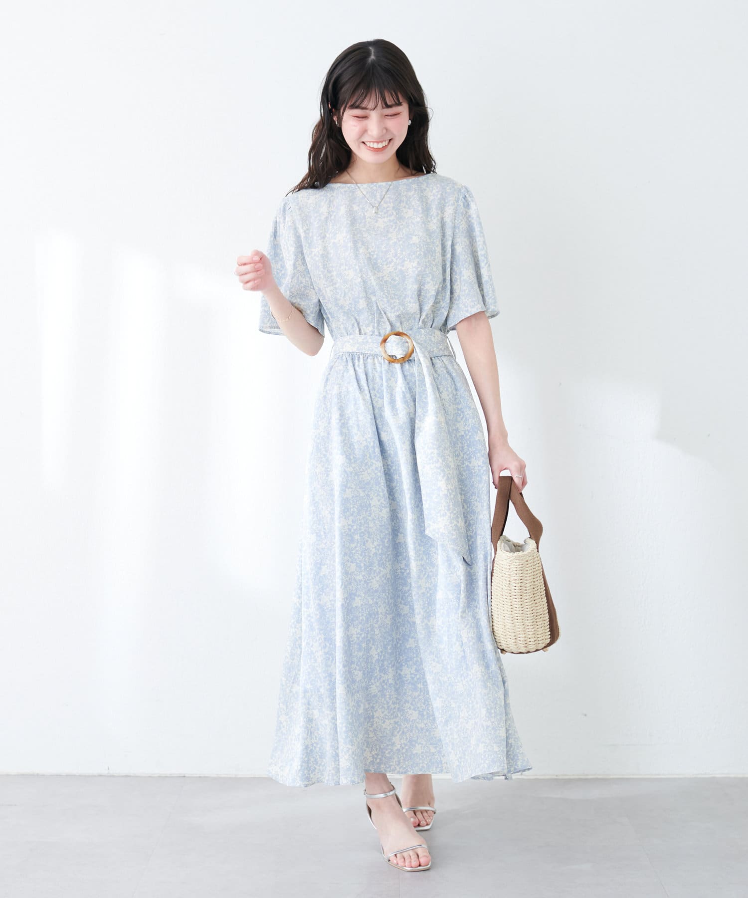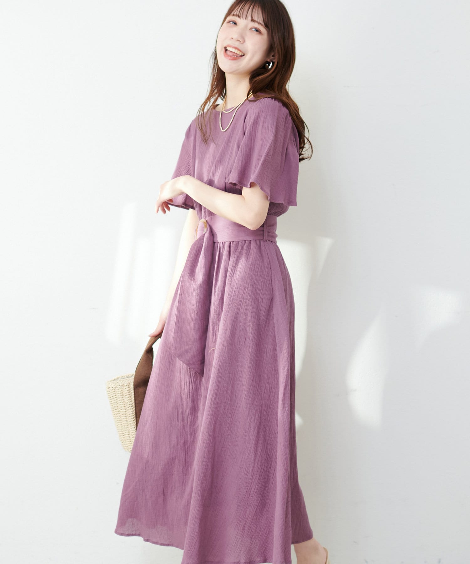付属のベルトでウエスト周りを華やかに彩れば、スタイルアップ効果も期待できる1枚。