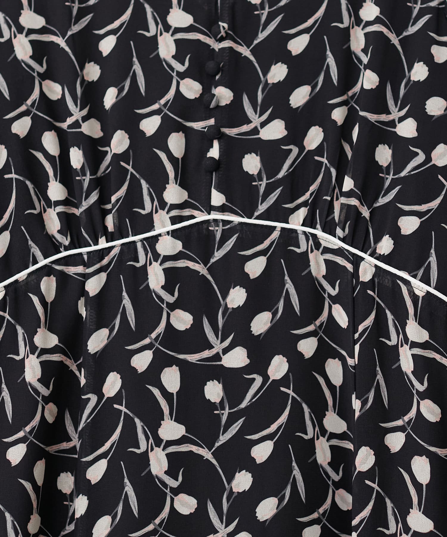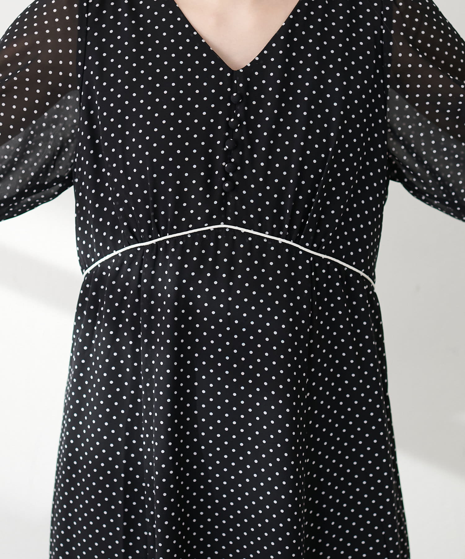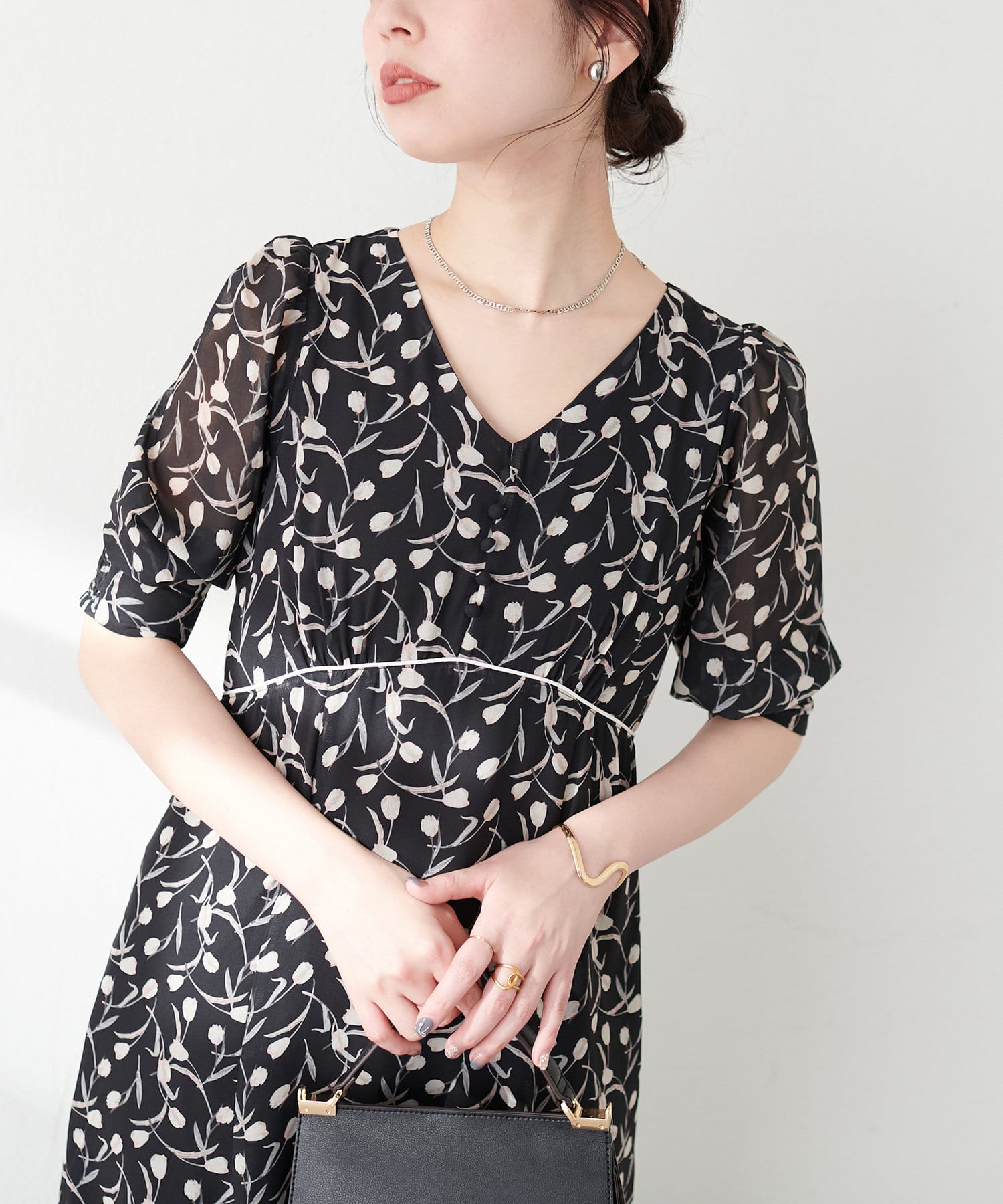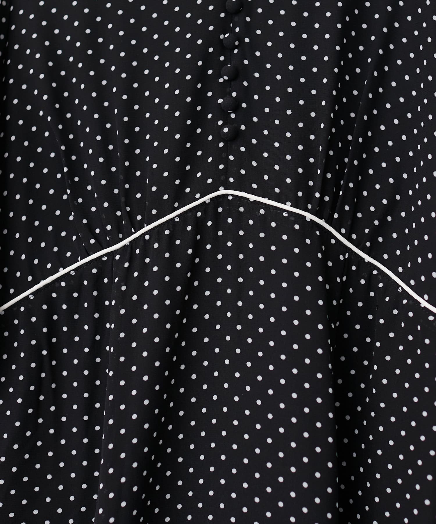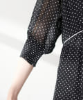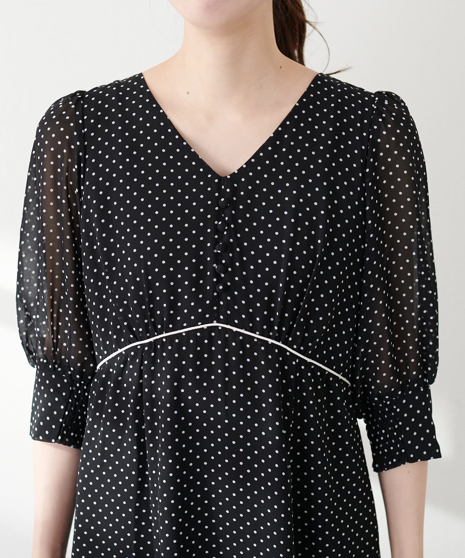 上品なふんわり感と胸元のくるみボタンでフェミニンさをプラス。