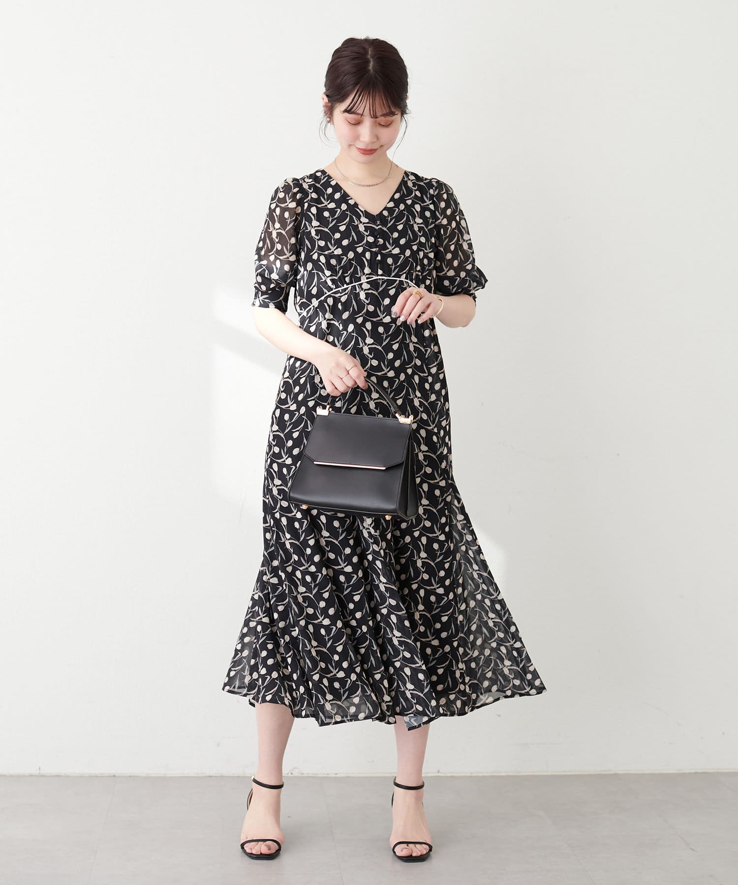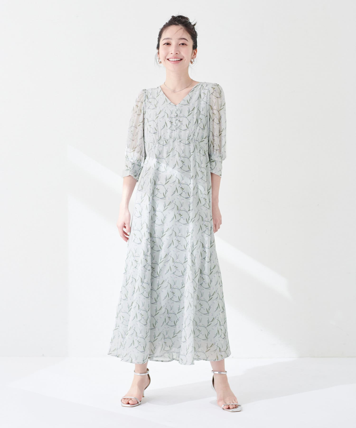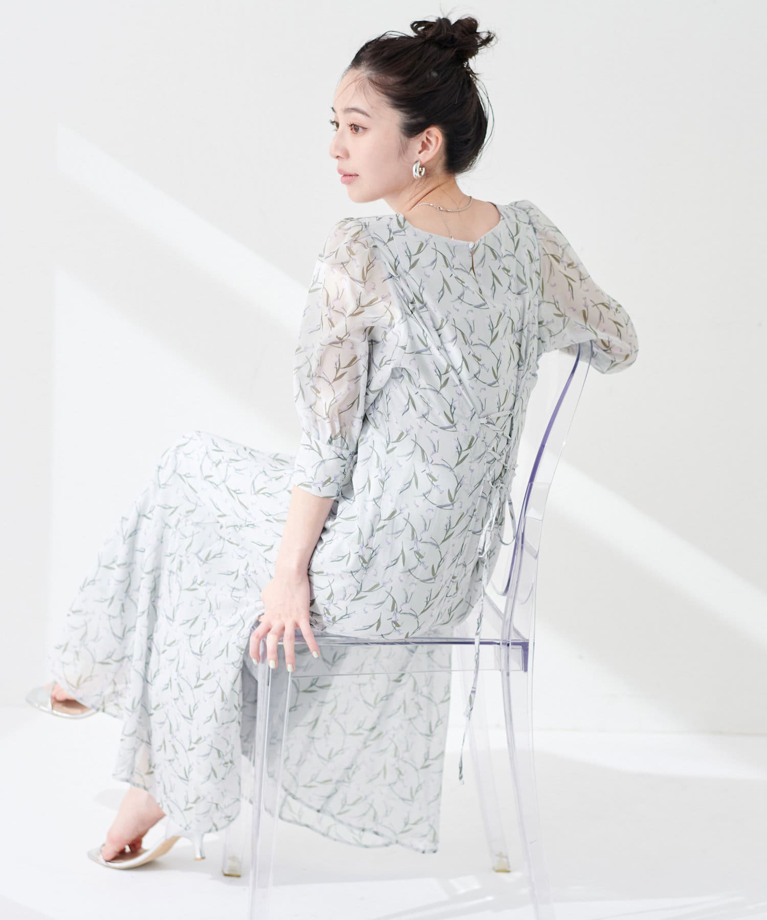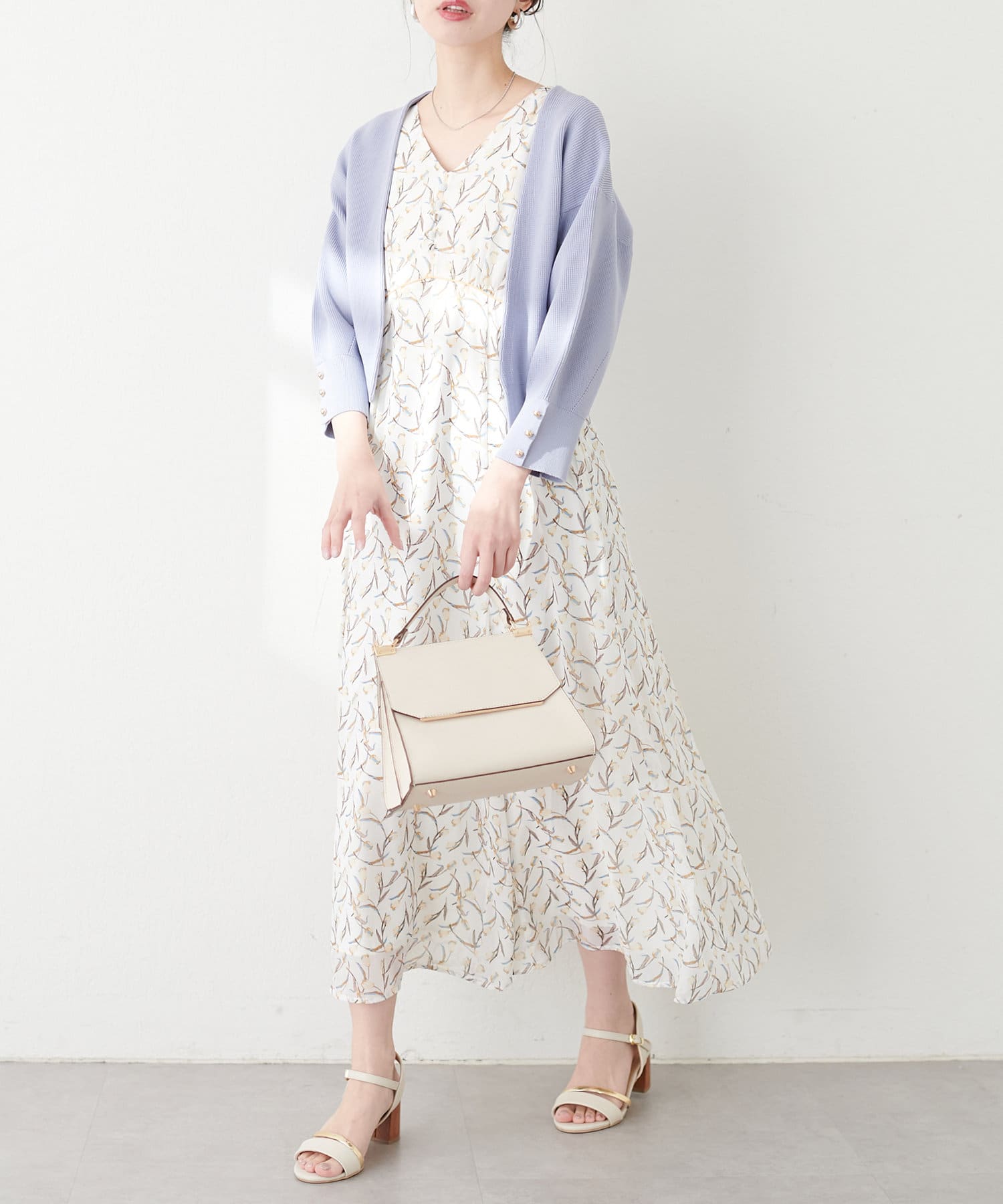 足元はサンダルやミュール、フラットシューズなどを合わせると、上品な大人レディスタイルに仕上がります。