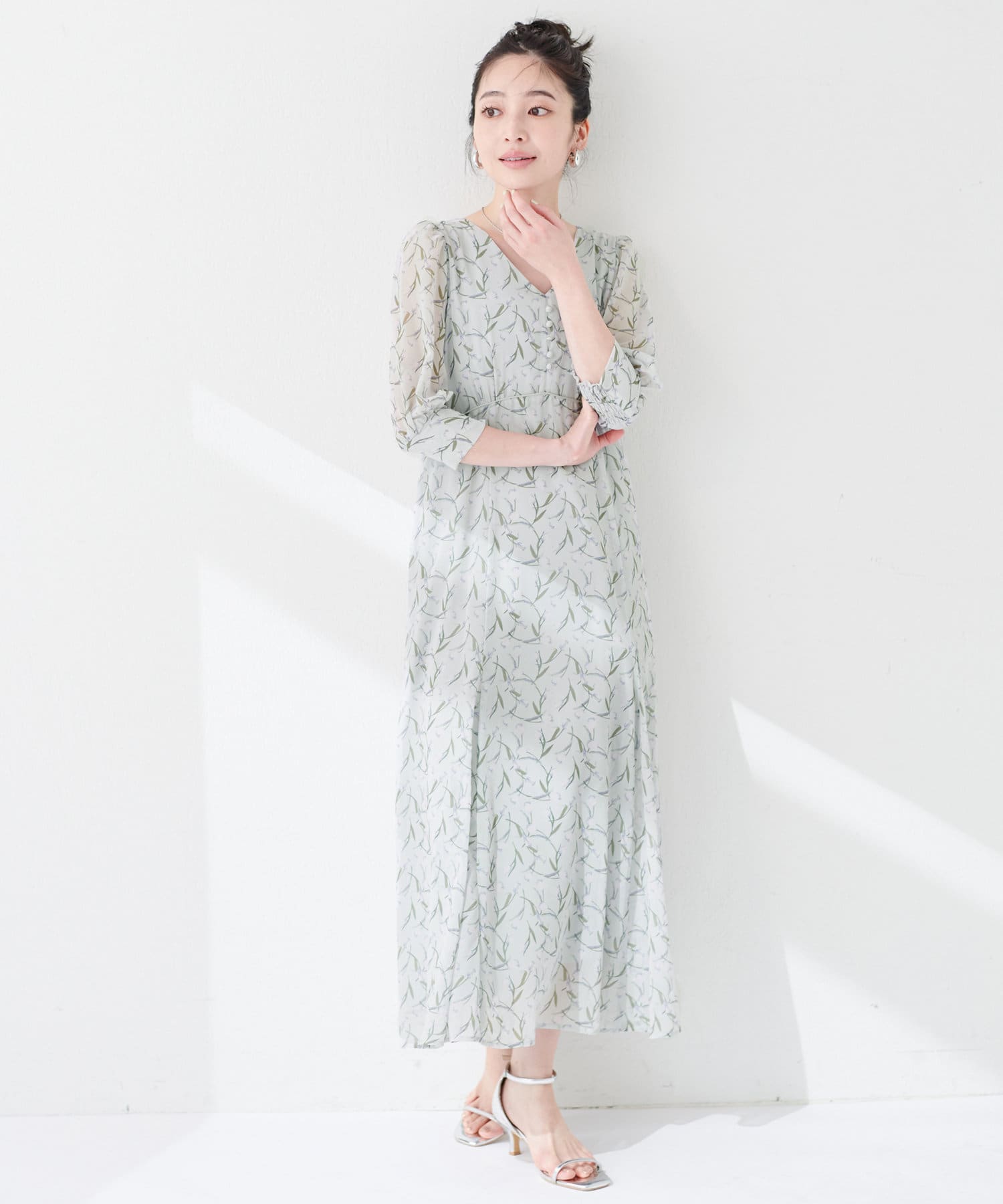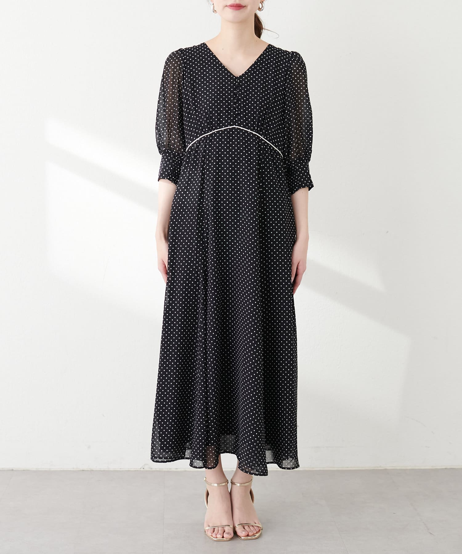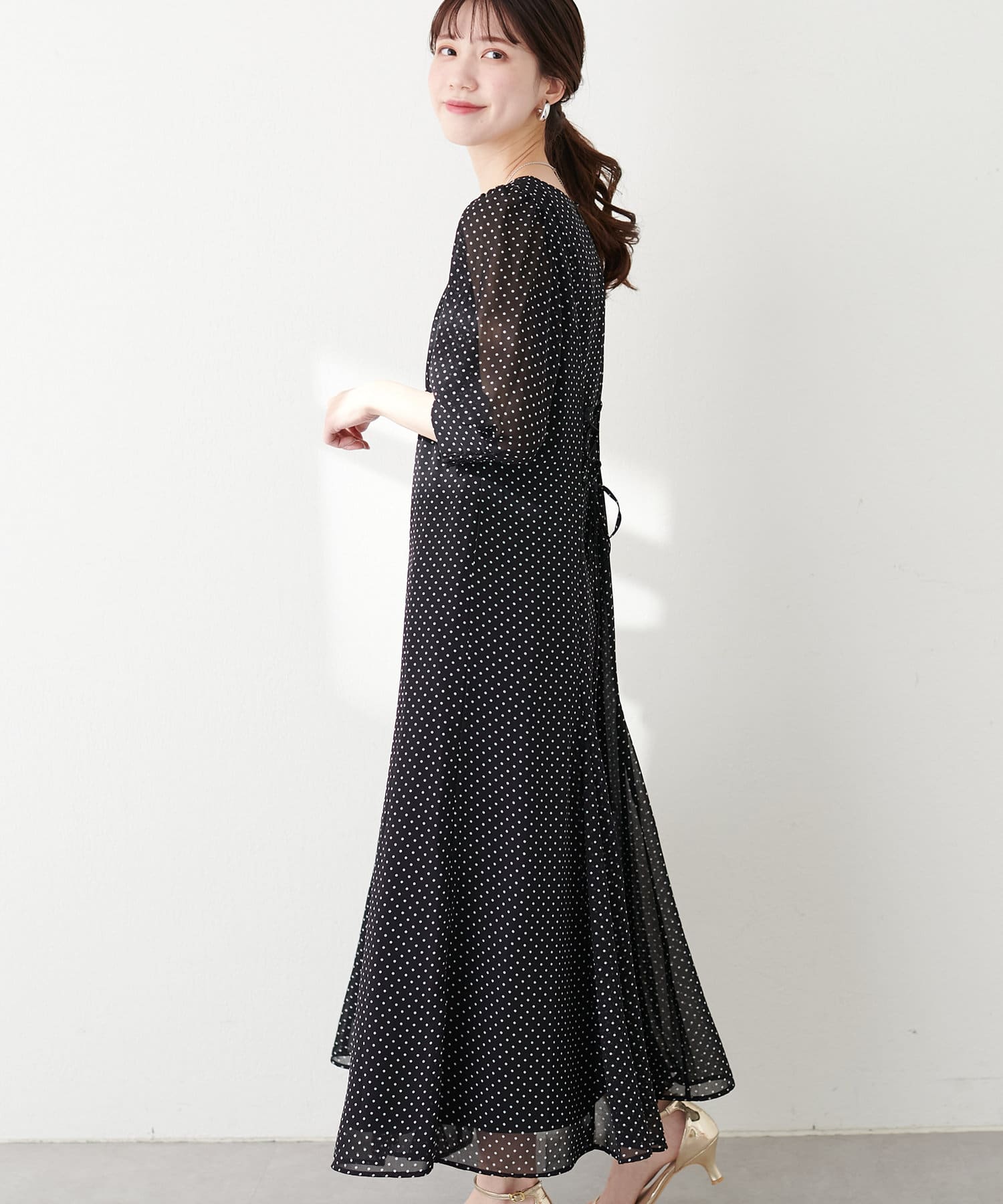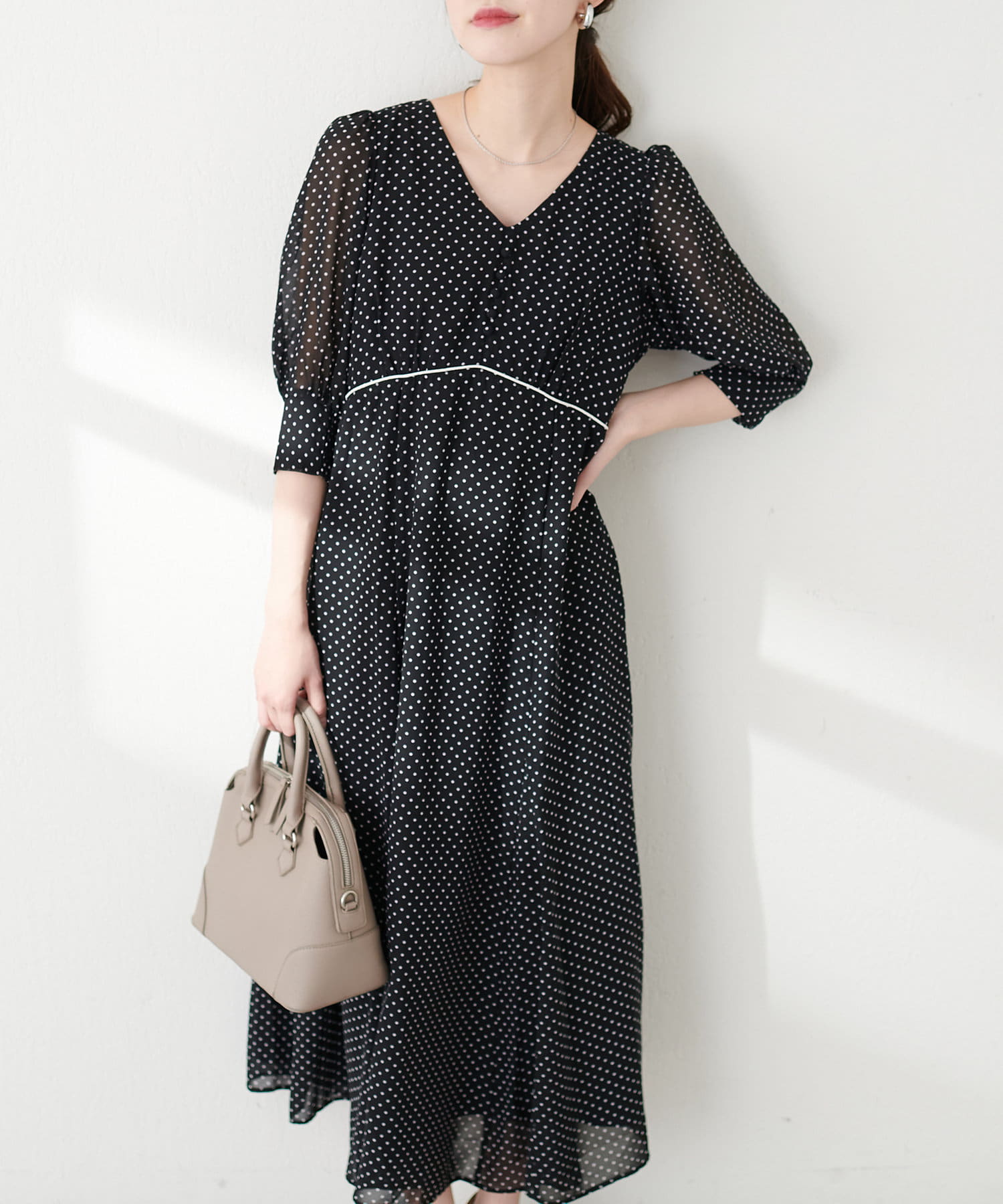 気温に応じて、ニットカーデやジャケット合わせで調整して頂くとロングシーズンお召し頂けます。