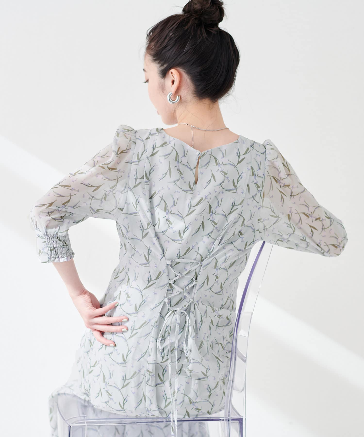 後ろのレースアップを調節して、お好みのシルエットでお召いただけます。