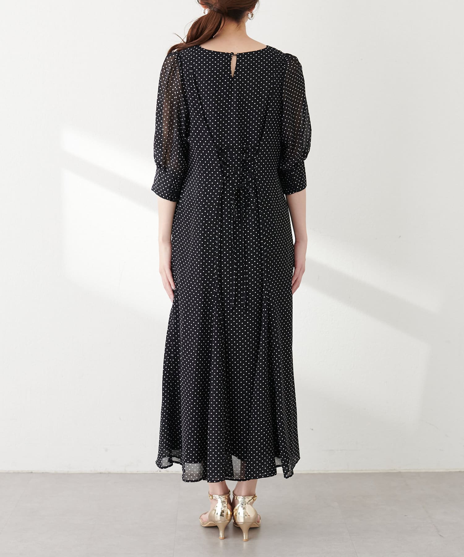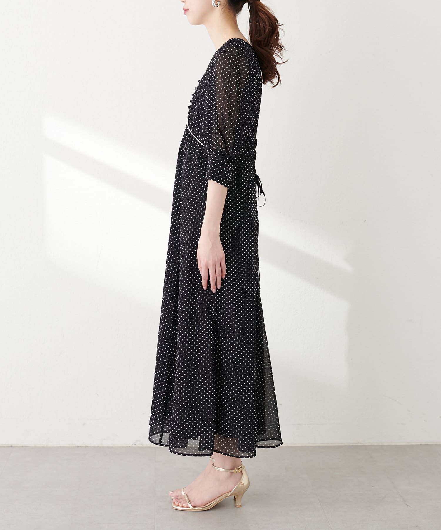 ウエスト調節レースアップレディワンピース