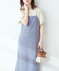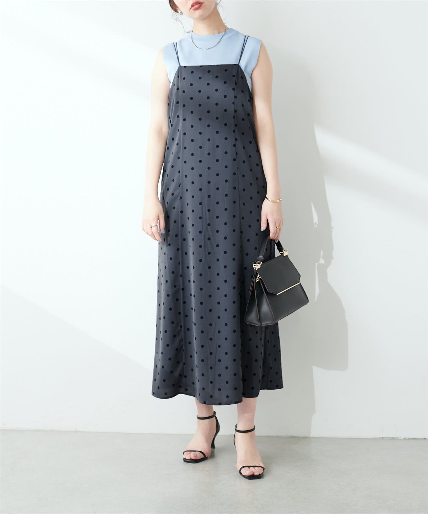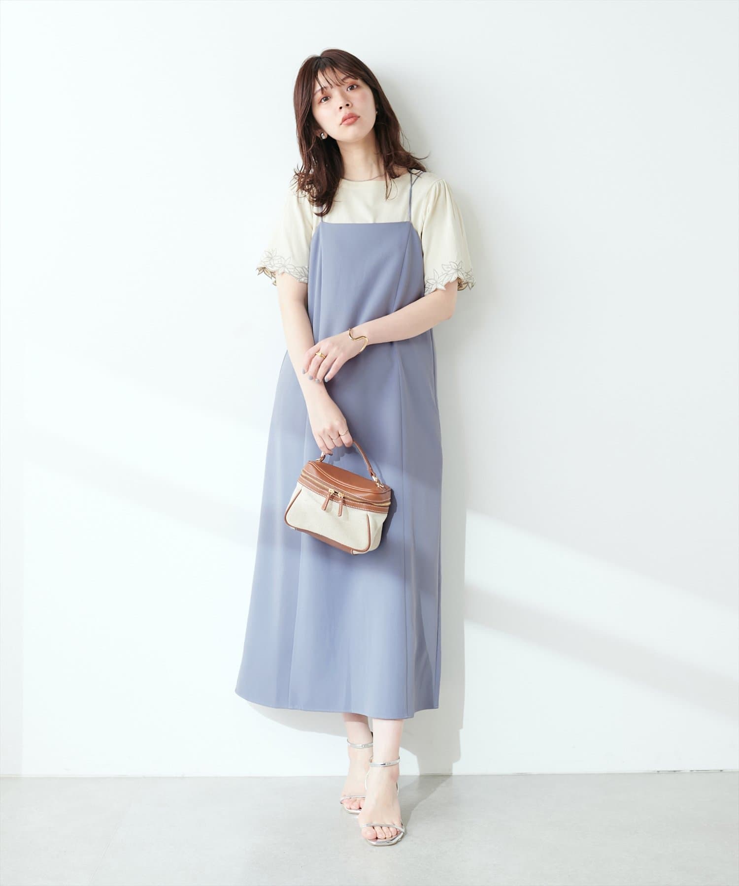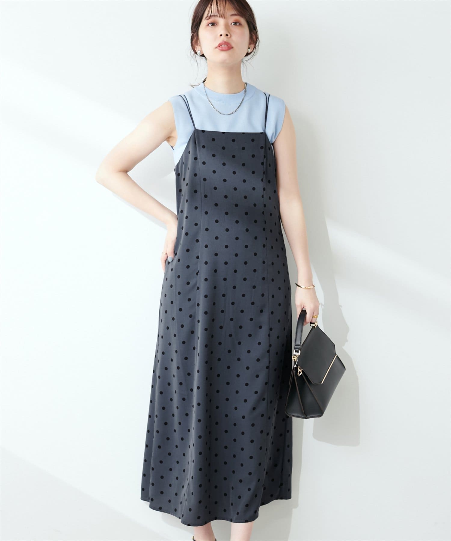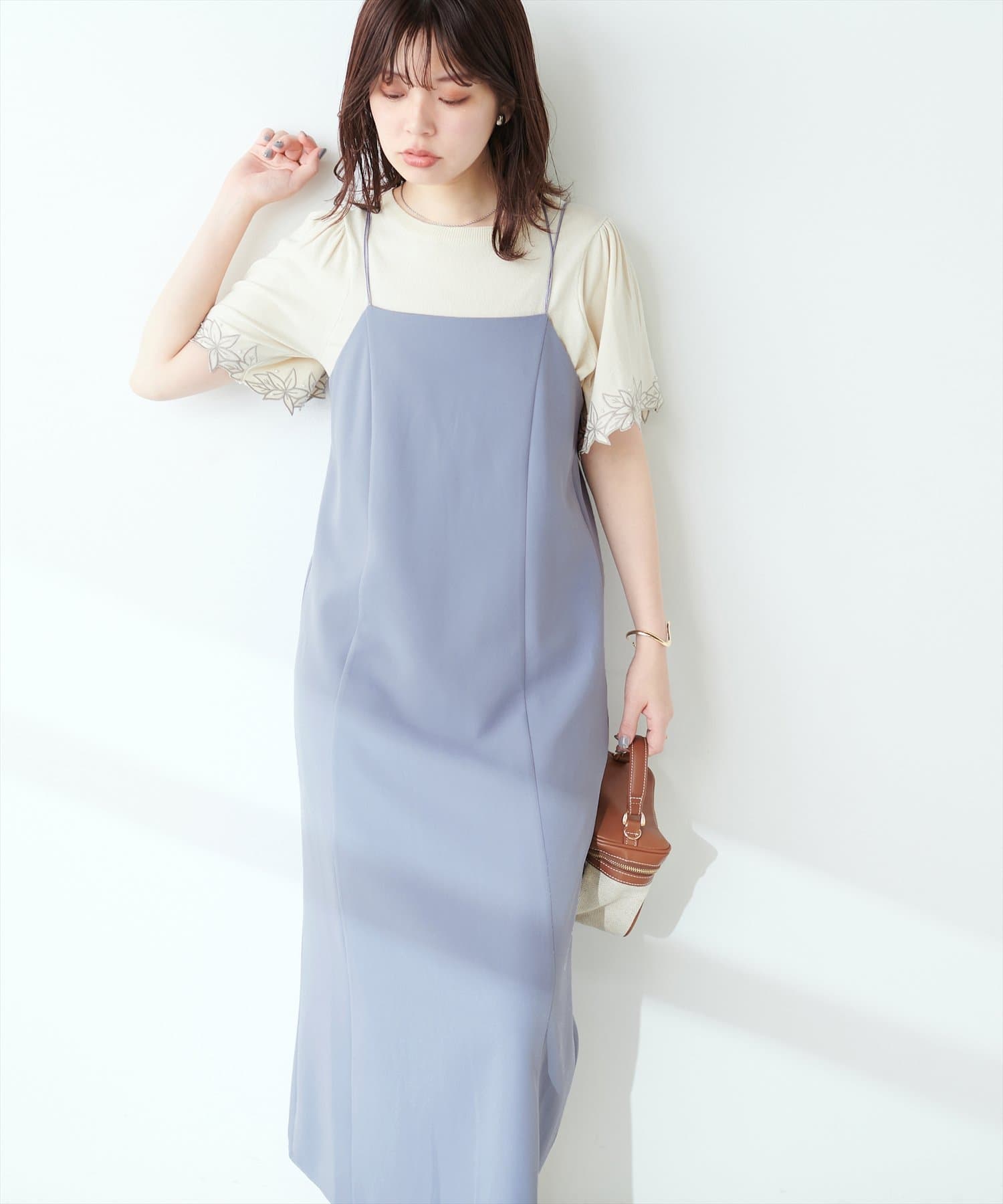 華奢なストラップがフェミニンな印象のシンプルなキャミワンピース。