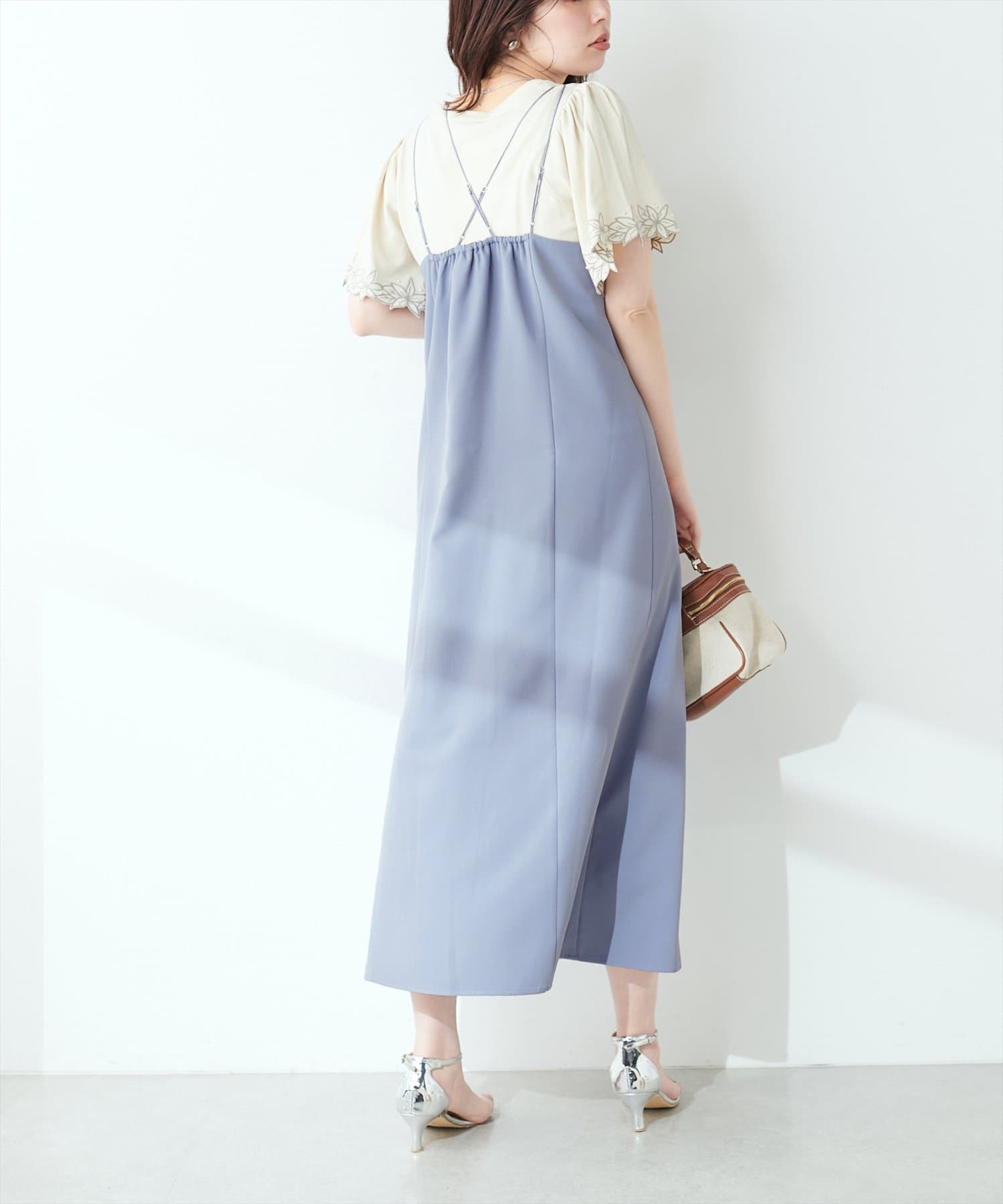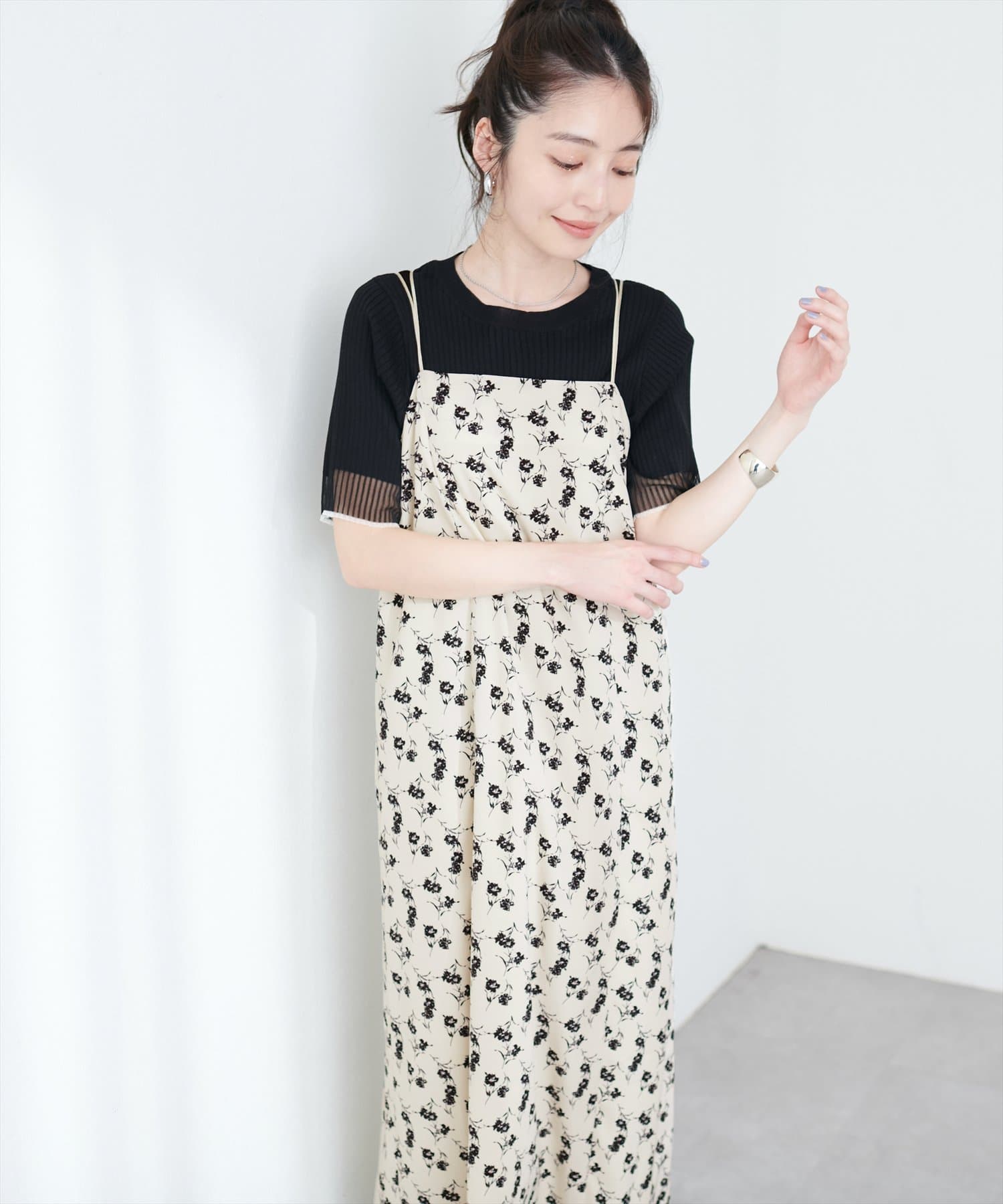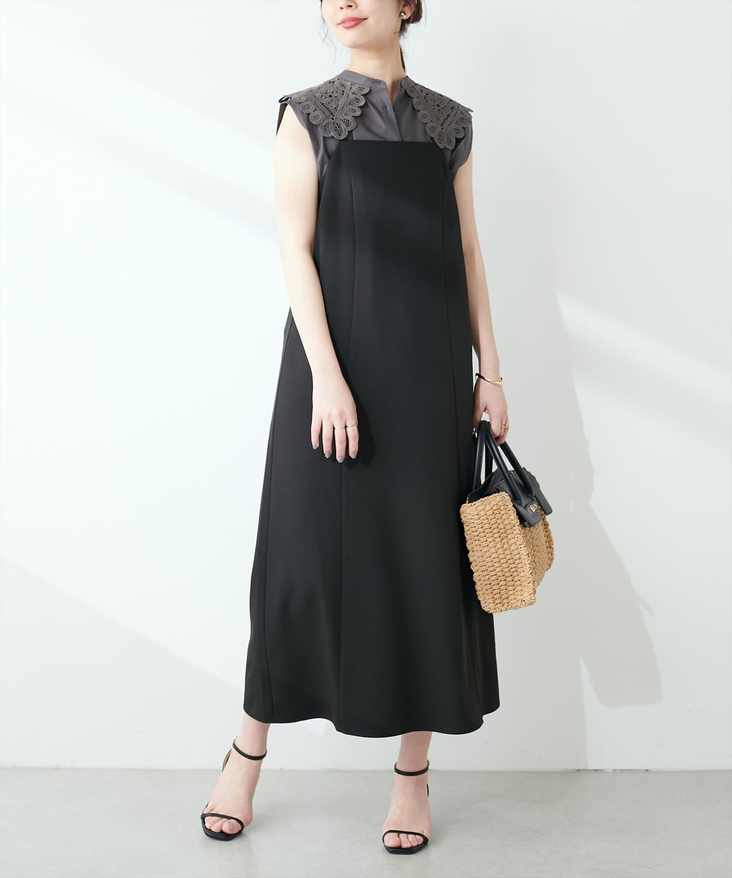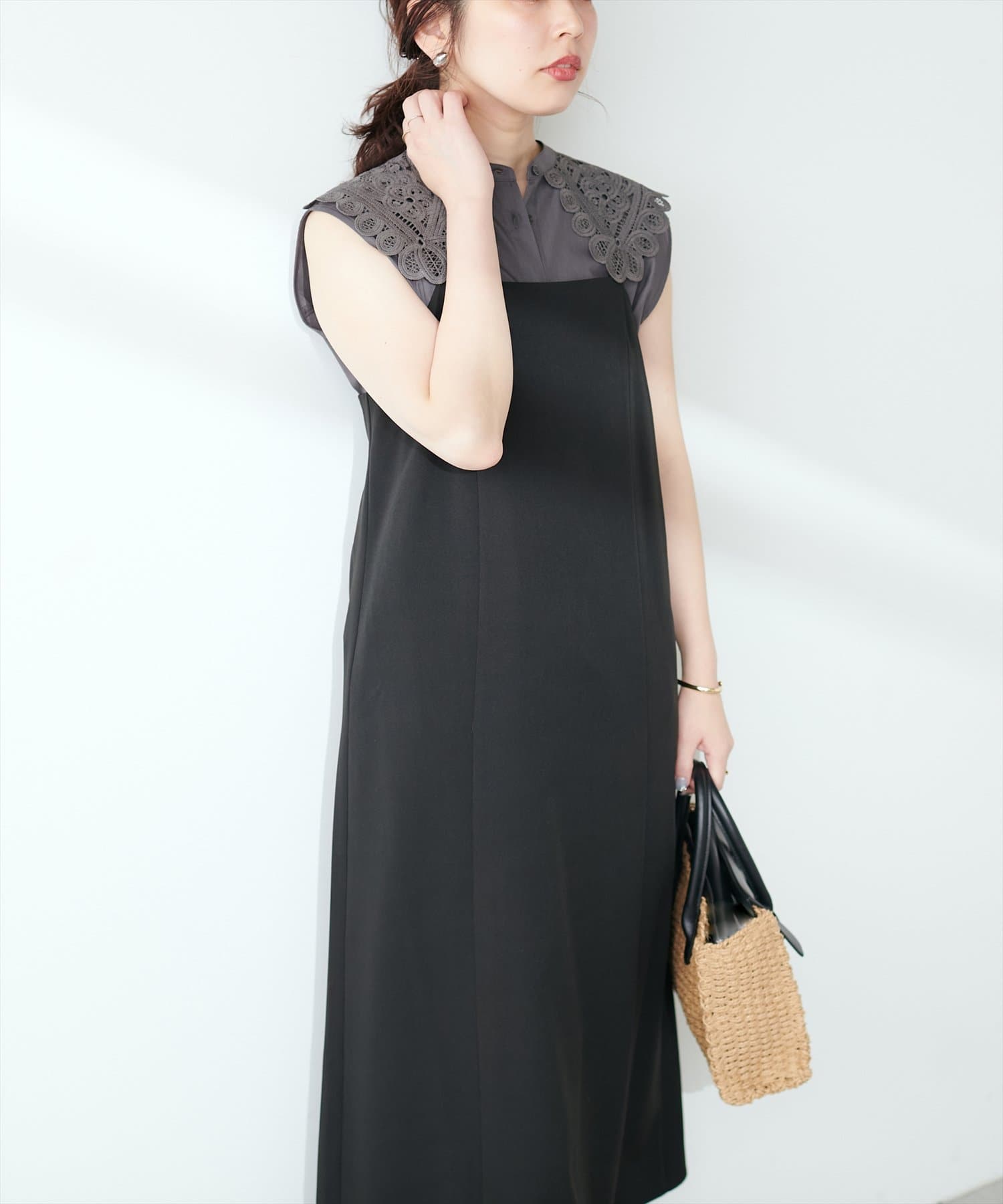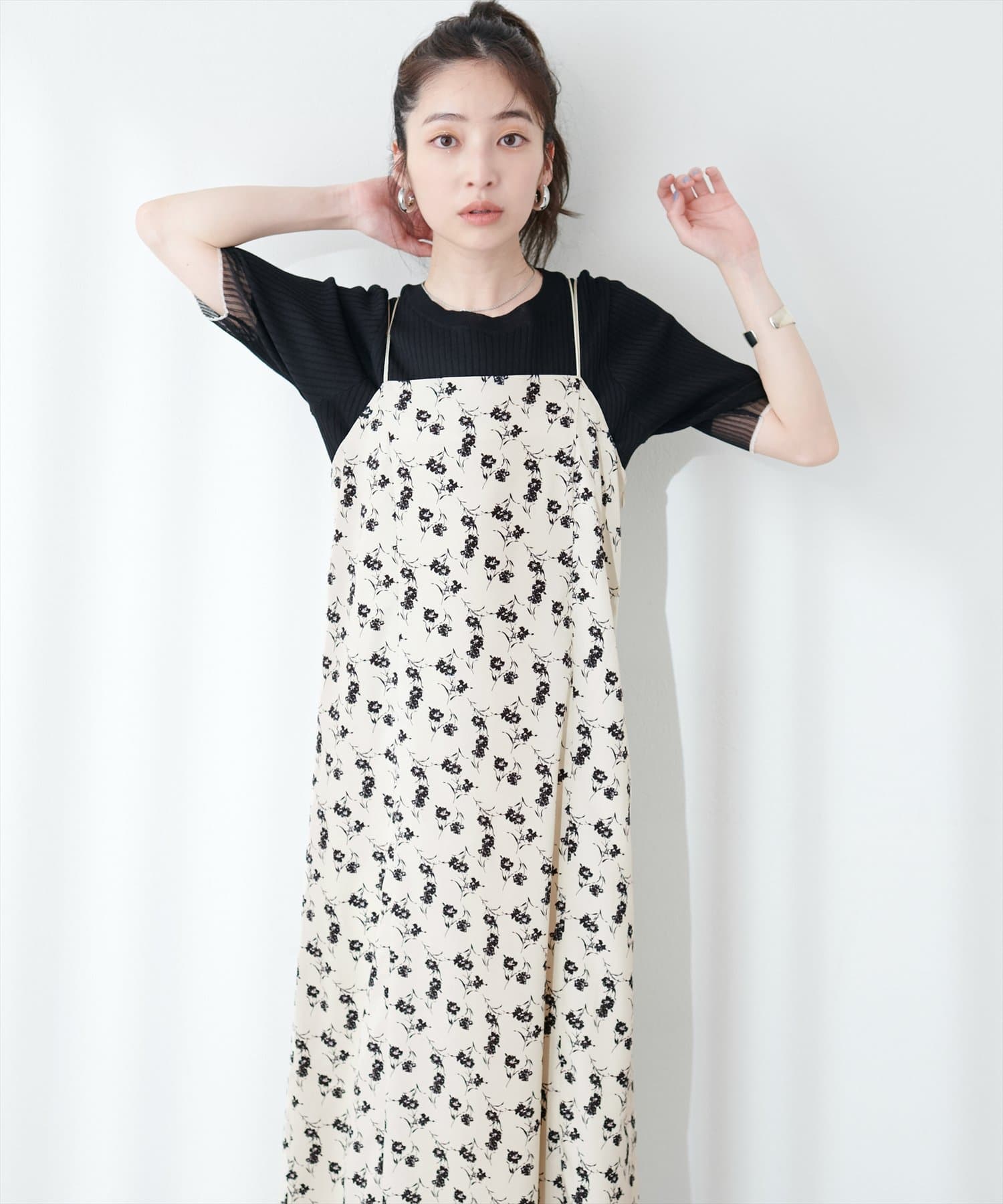 華奢なストラップがフェミニンな印象のシンプルなキャミワンピース。
