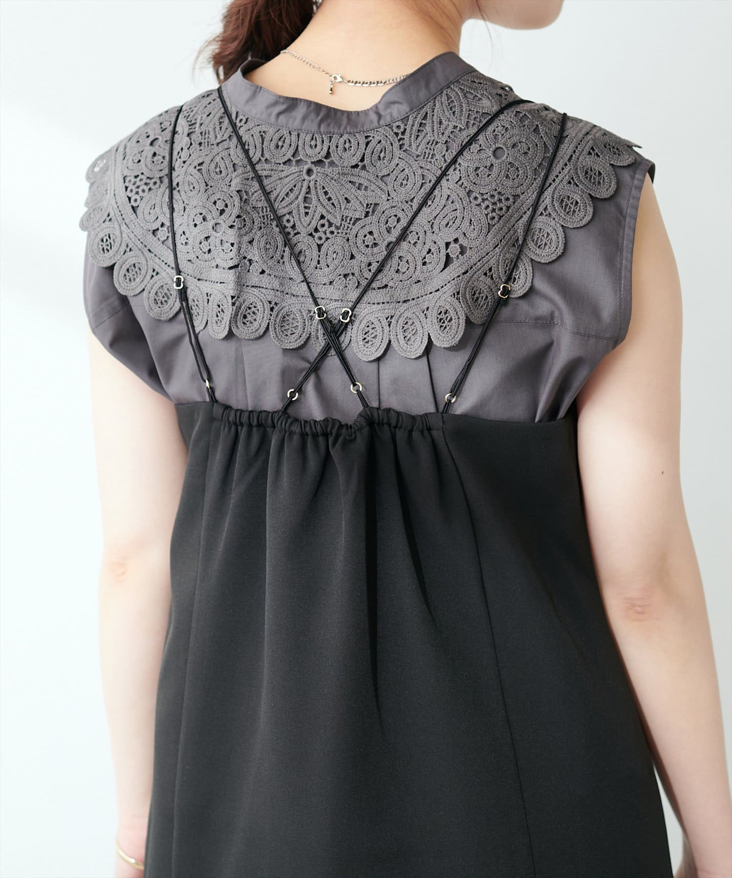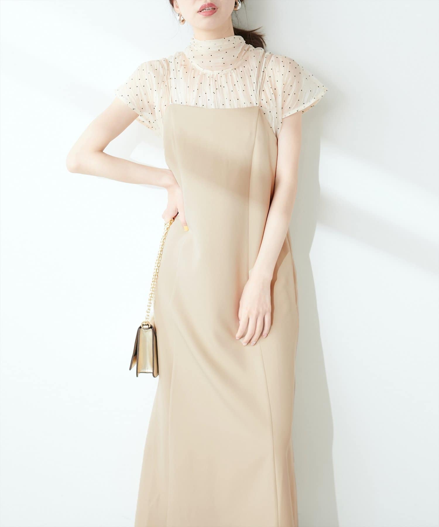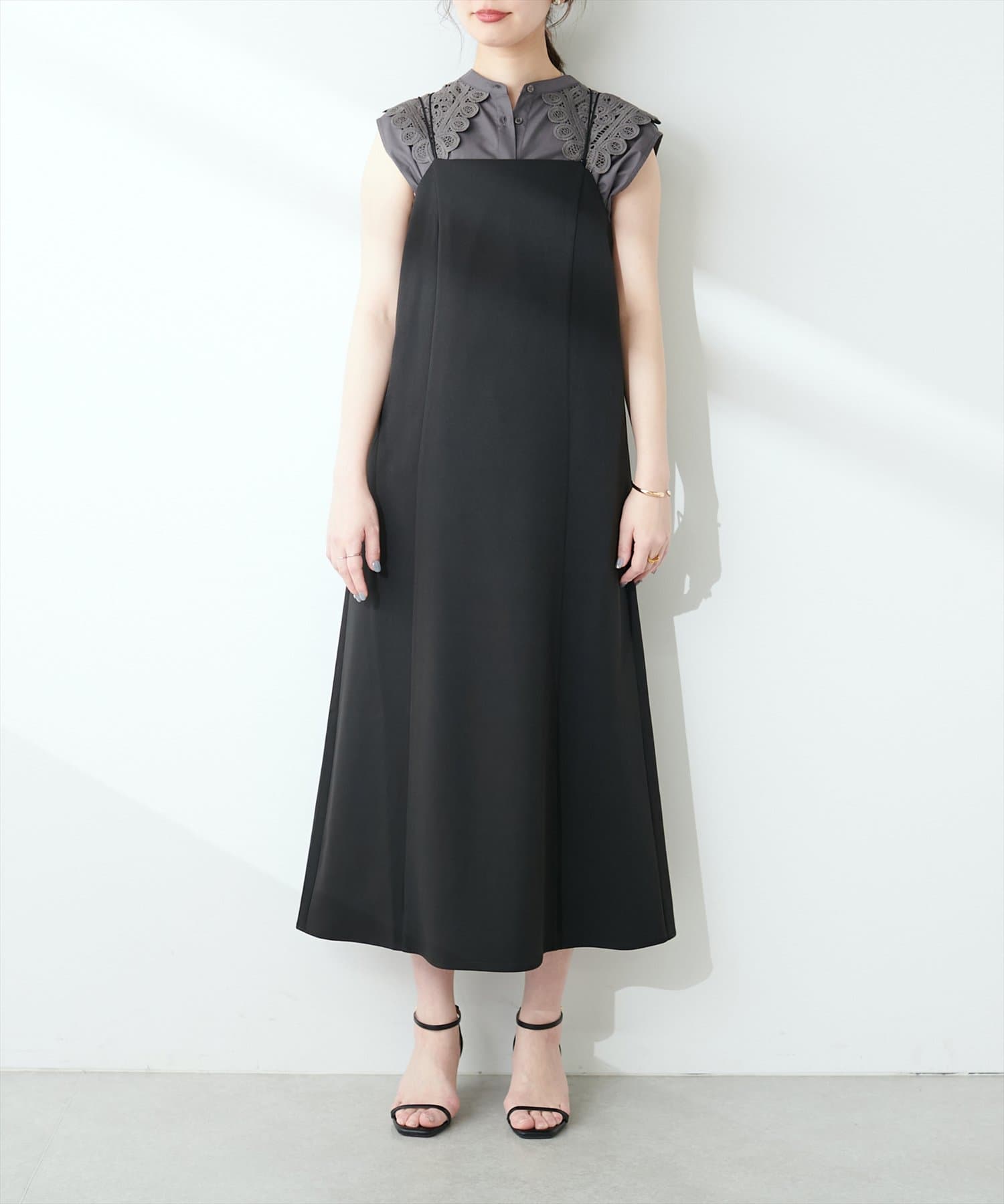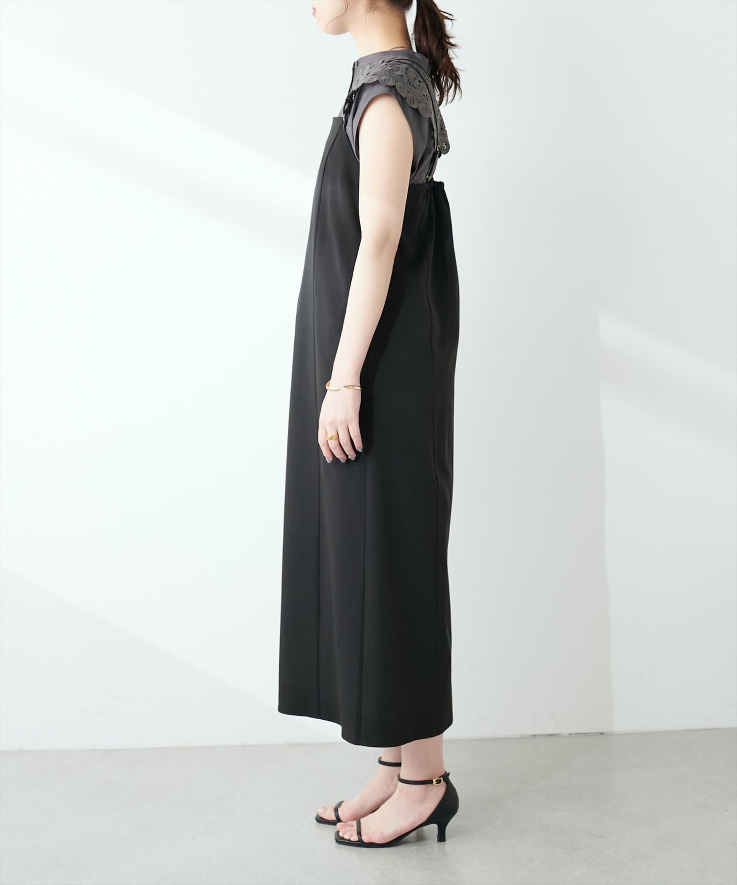 華奢なストラップがフェミニンな印象のシンプルなキャミワンピース。