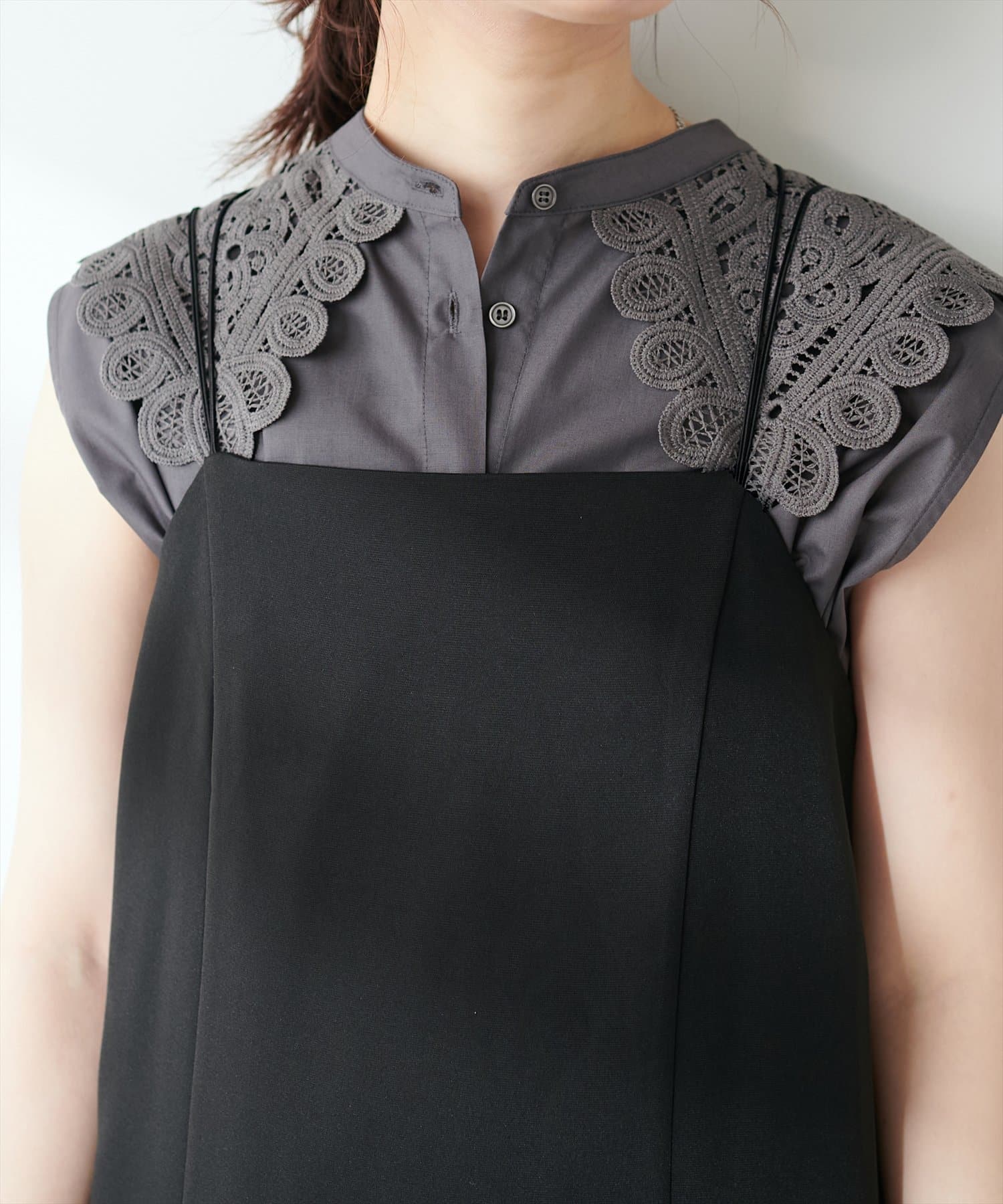 インナーにはシアーカットソーやブラウス、Tシャツなどどんなトップスを合わせても好相性です。