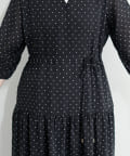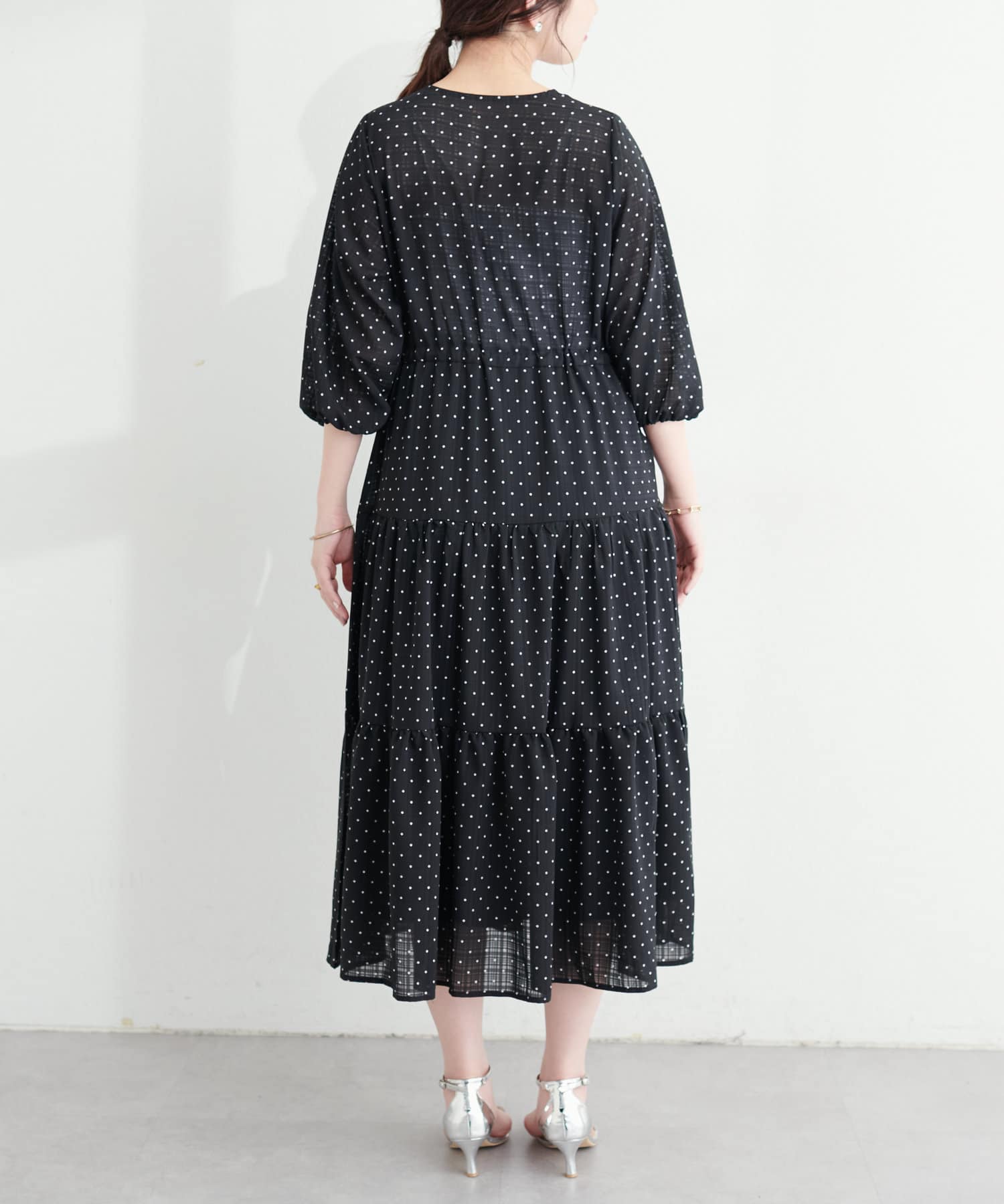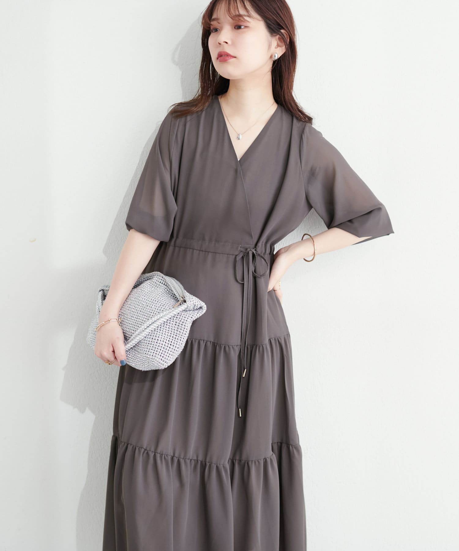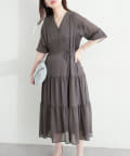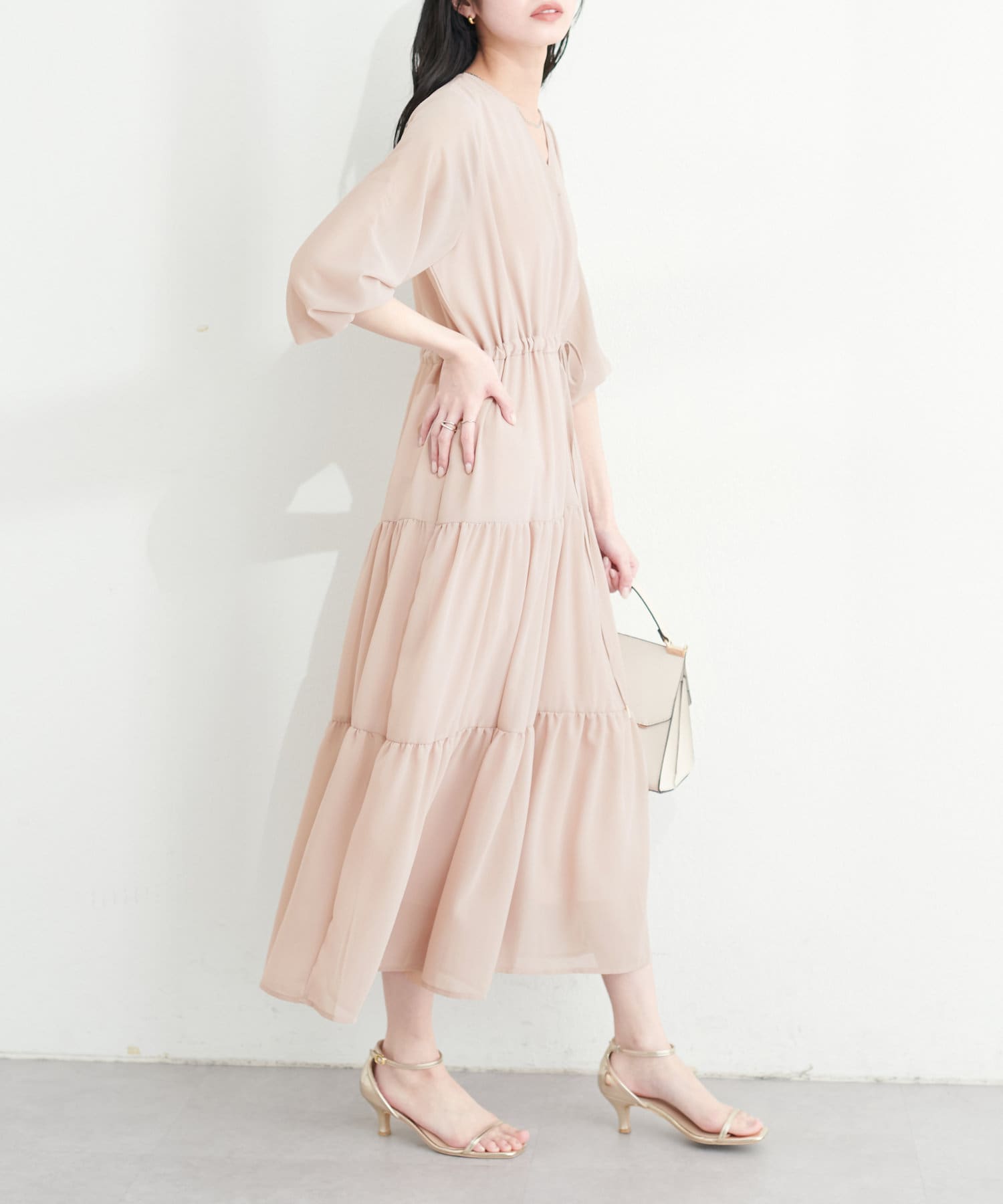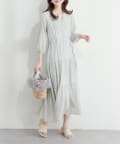 落ち感のある素材を使用し、シアーなスリーブとバックスタイルが大人の雰囲気を引き立てるワンピース。