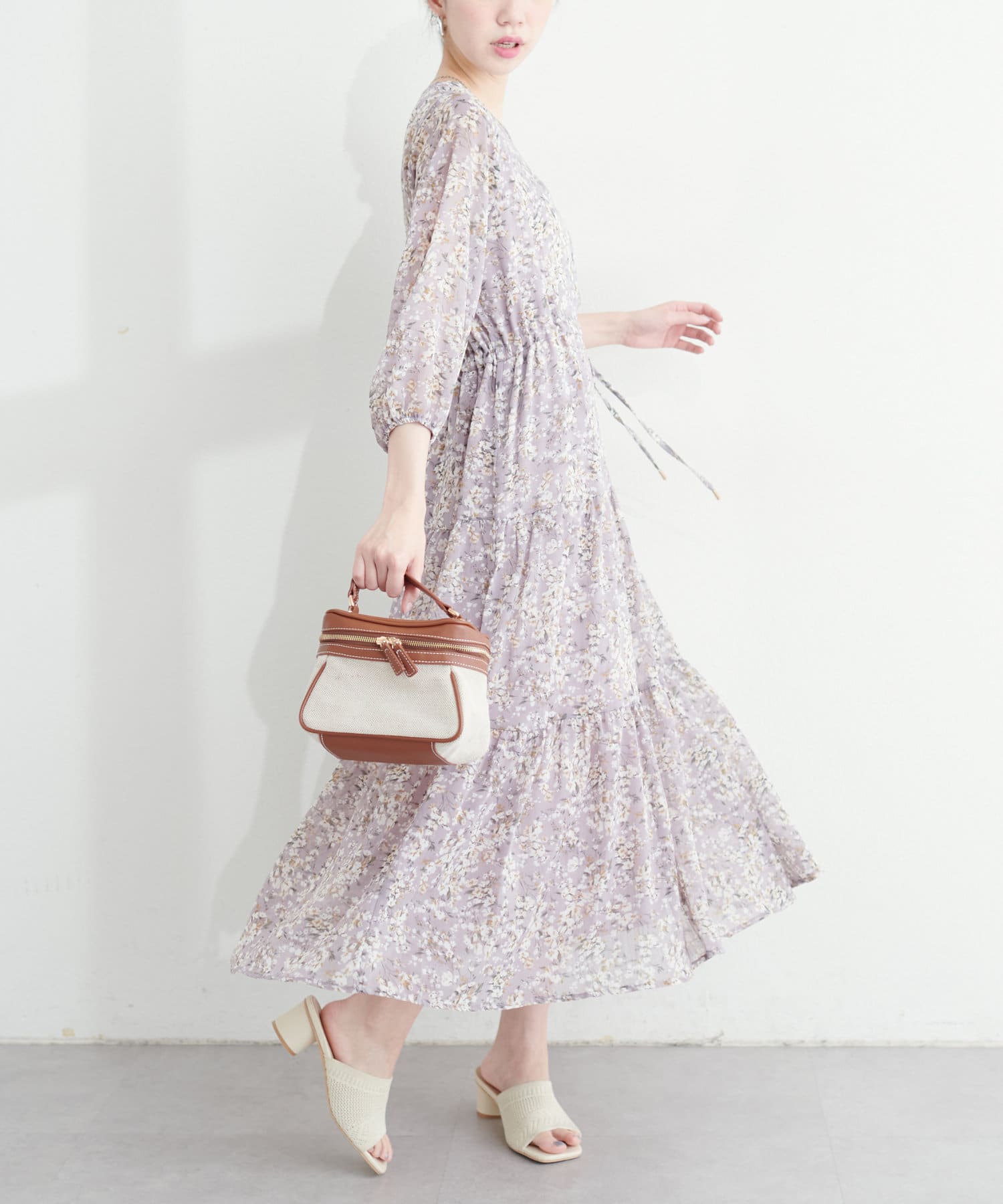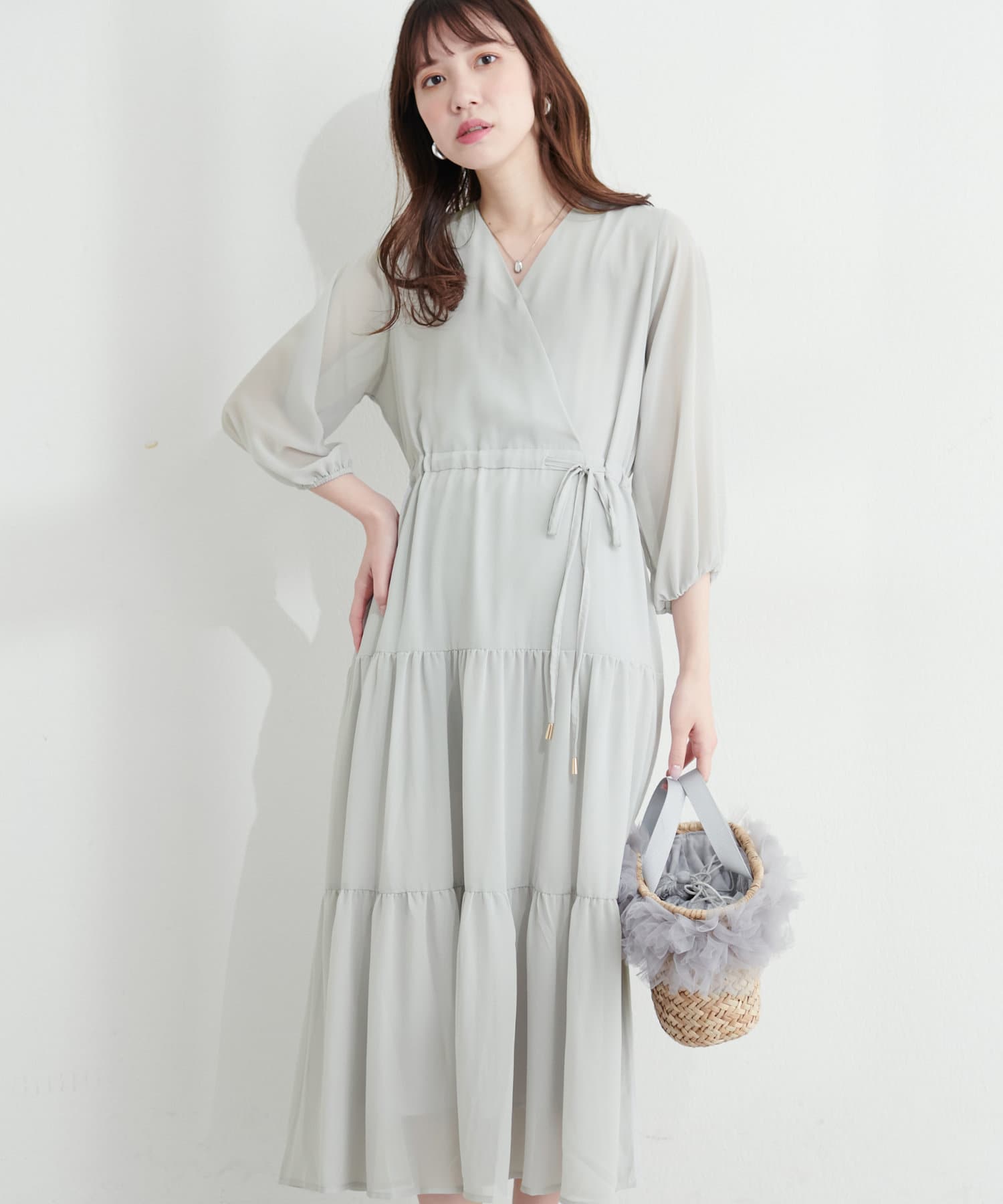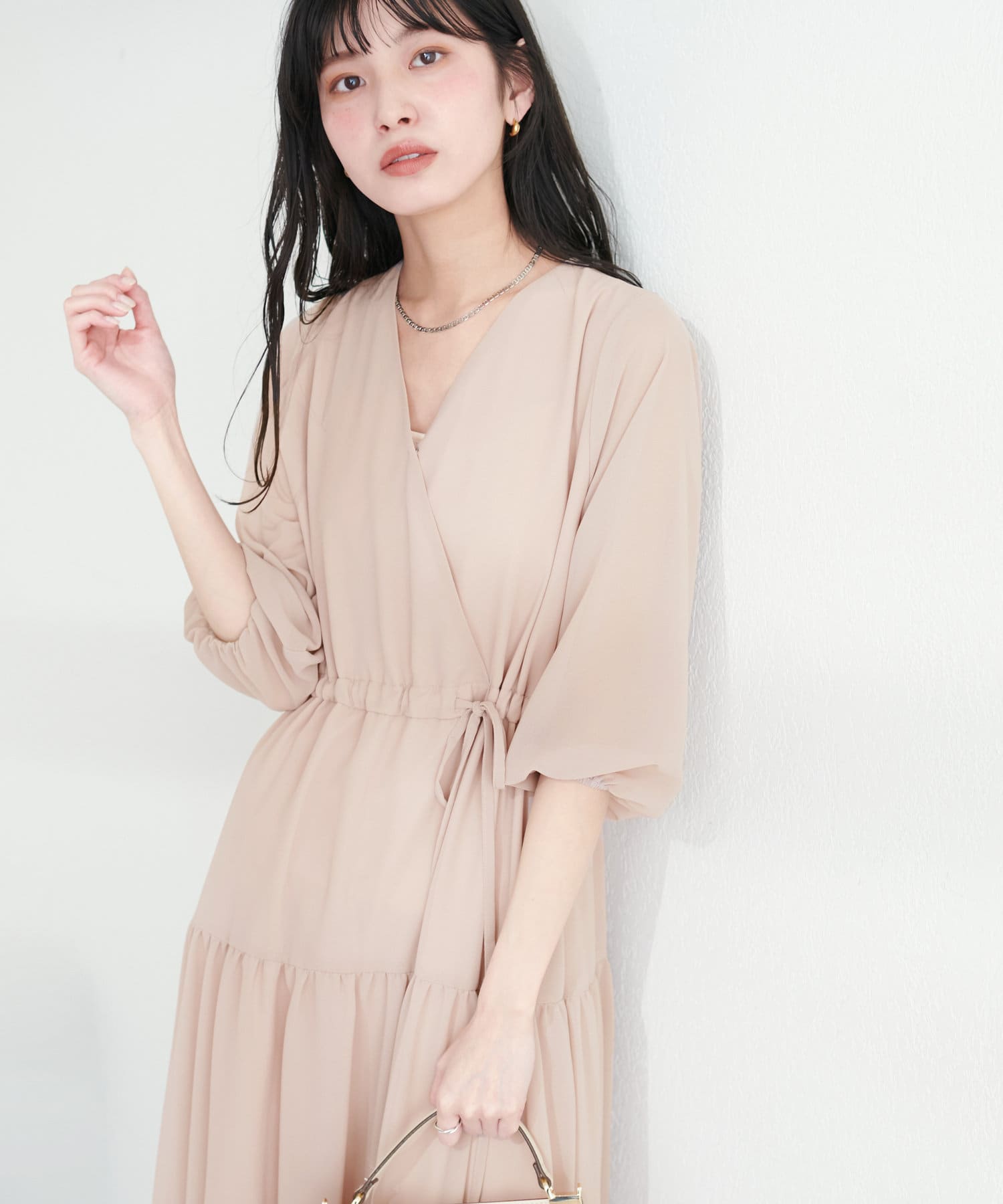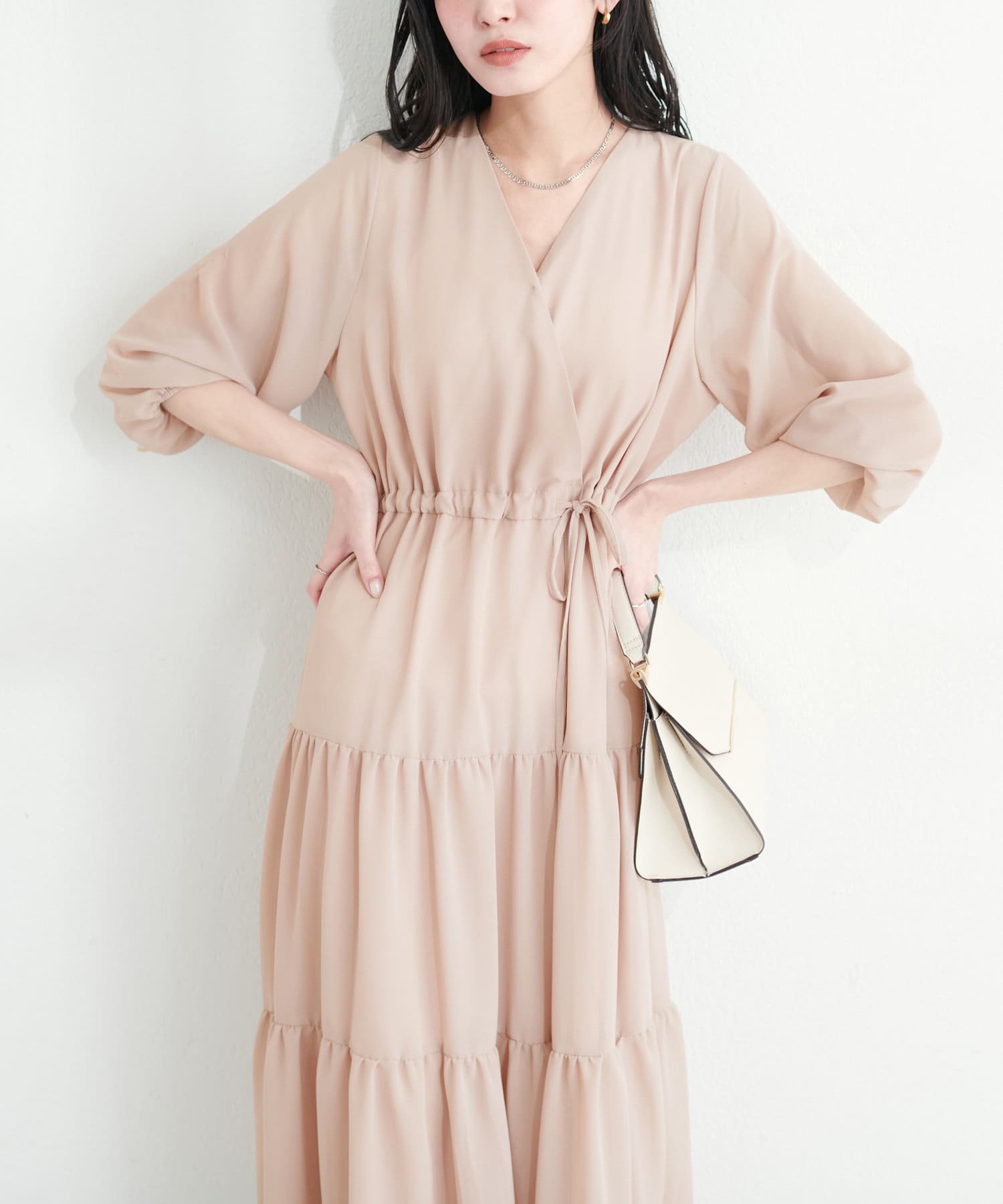 ウエストのドロストリボンを絞ればよりスタイルアップした印象に。