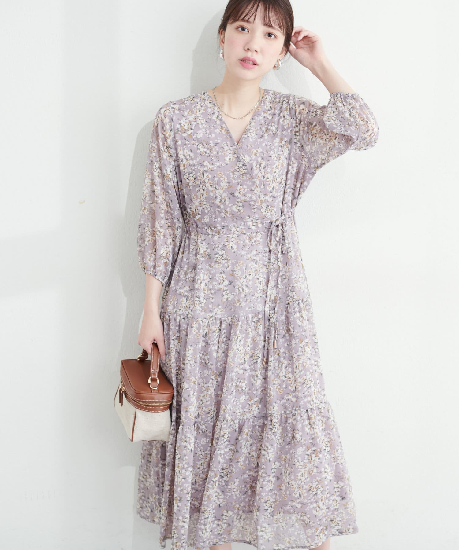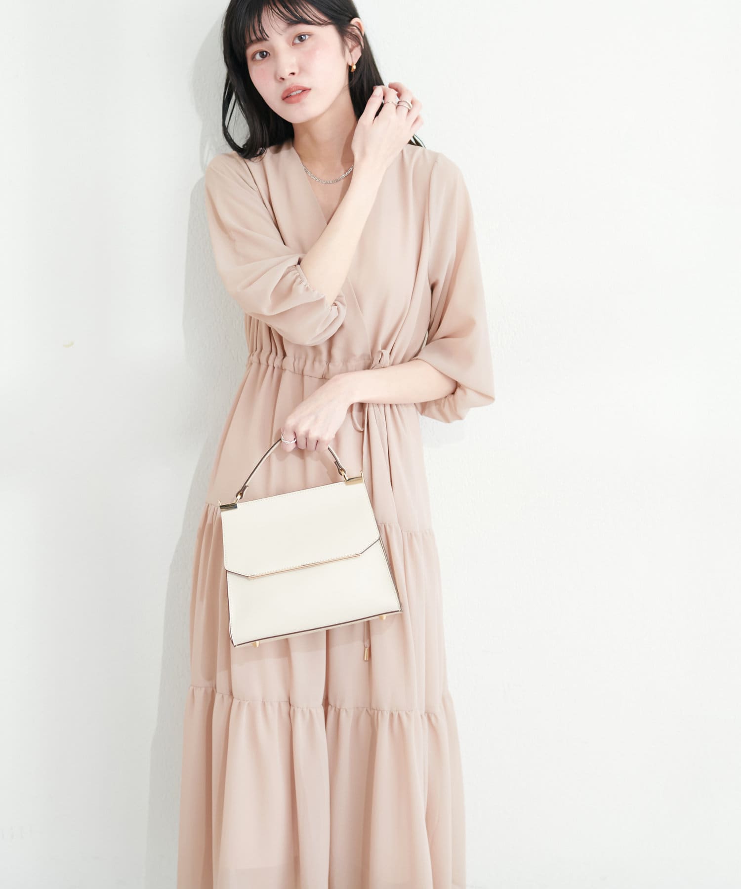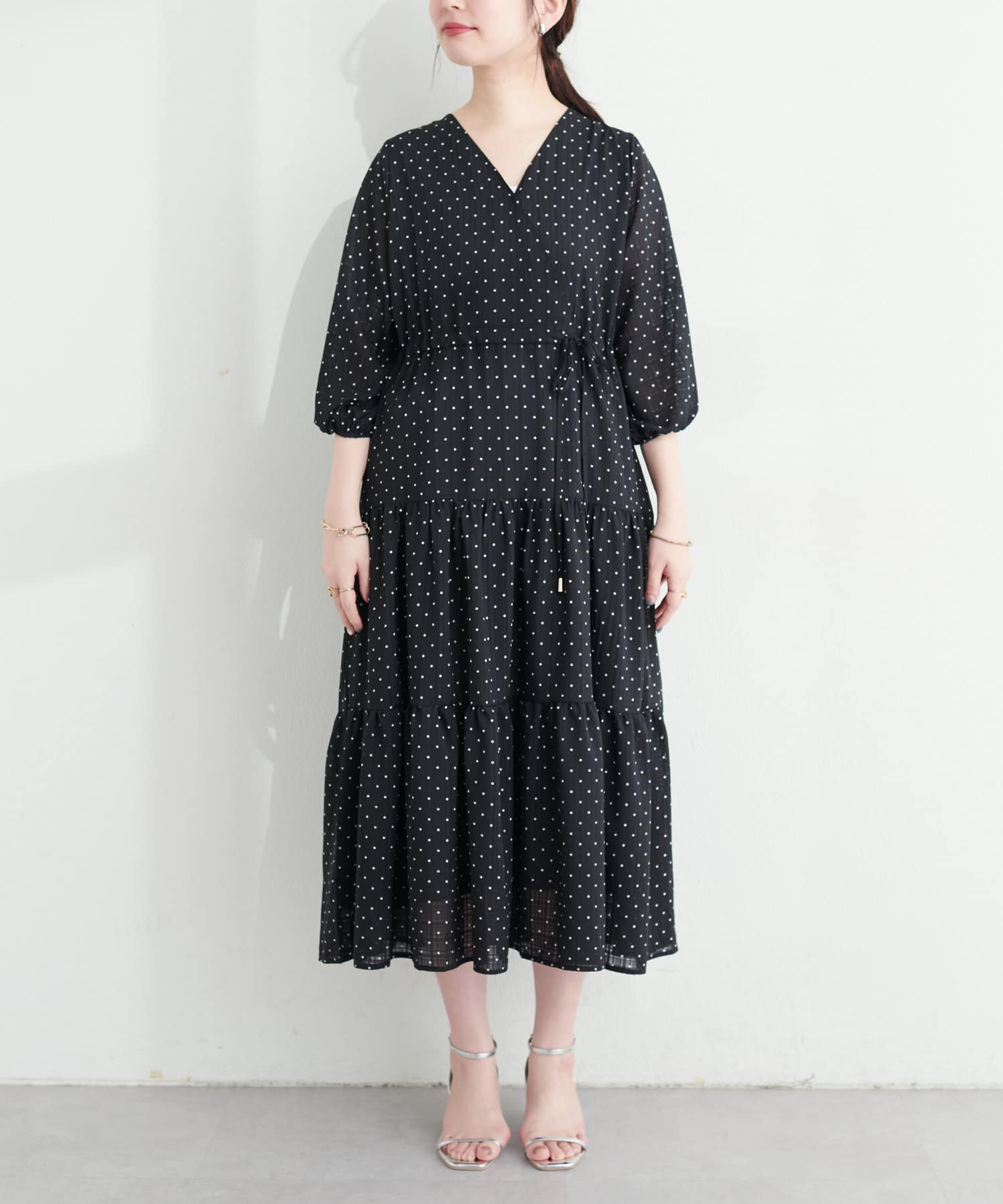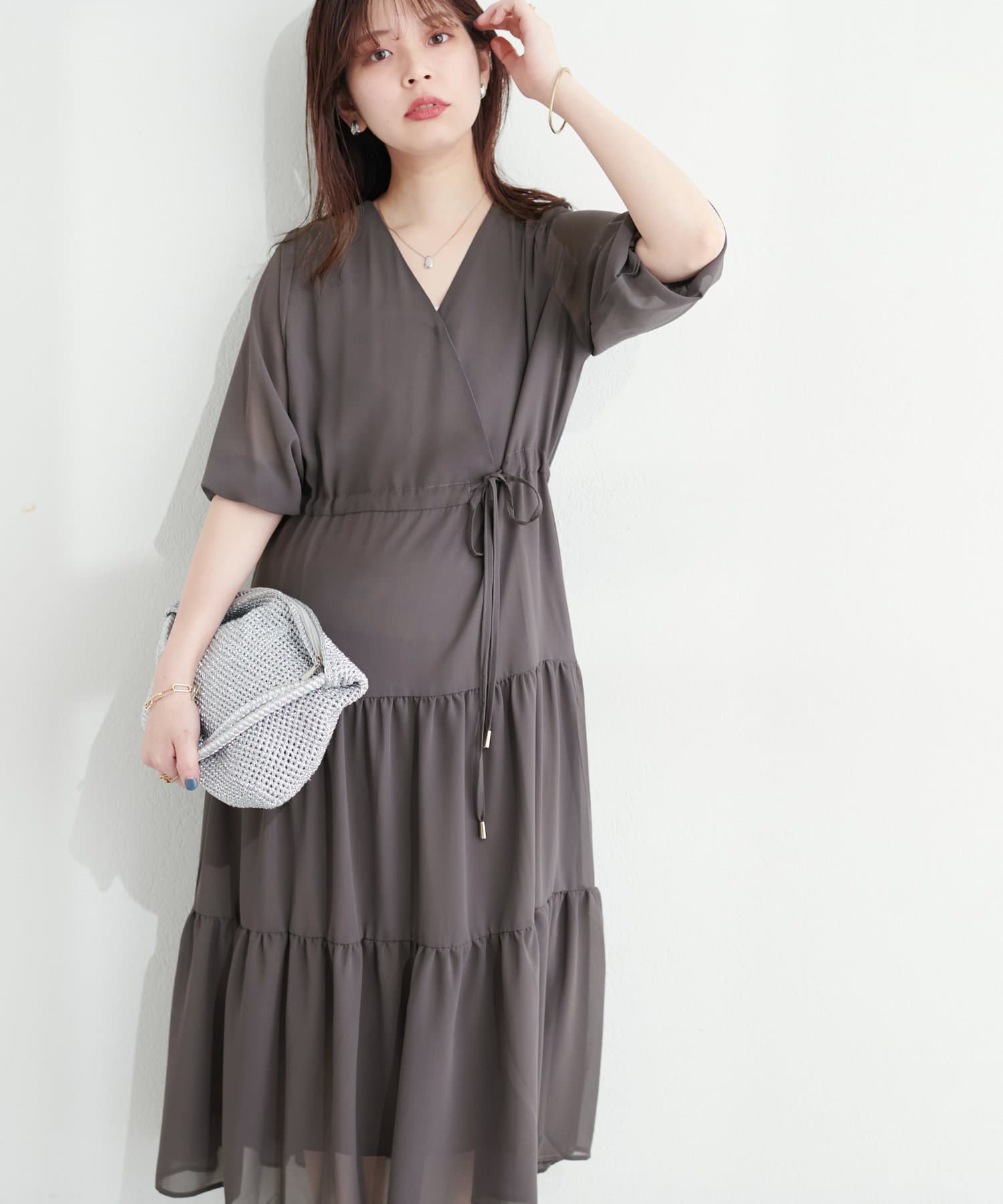 ウエストのドロストリボンを絞ればよりスタイルアップした印象に。