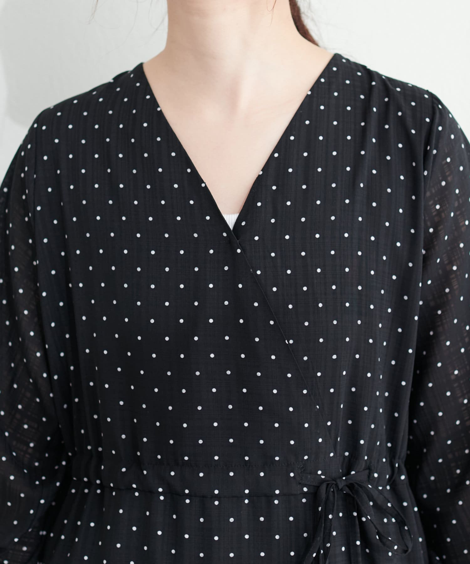 ウエストのドロストリボンを絞ればさりげないスタイルアップが叶います。