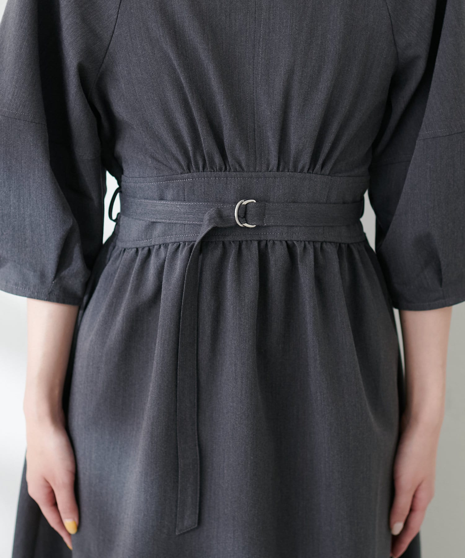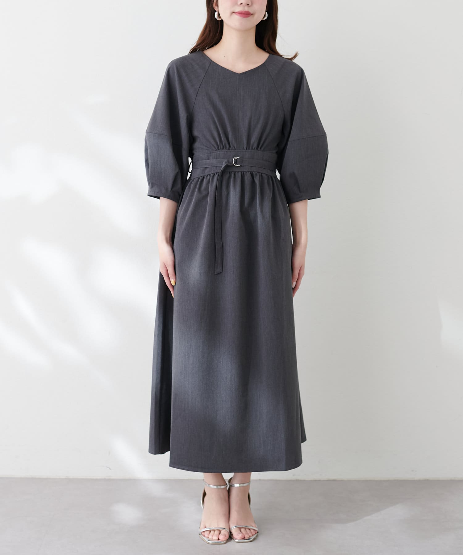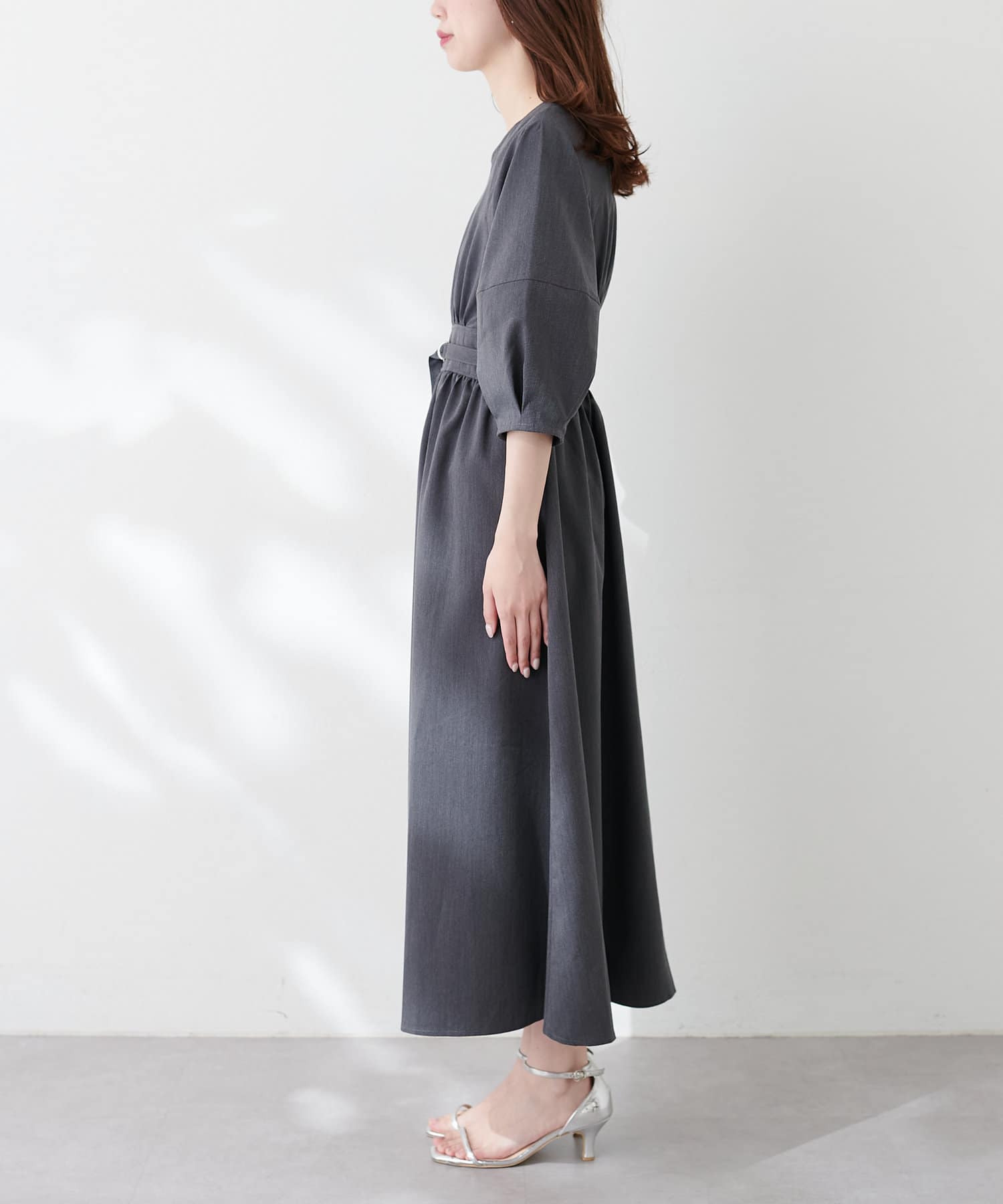 付属のベルトでウエストマークするとさらにスタイルアップ効果が期待でき、洗練されたスタイルが完成します。