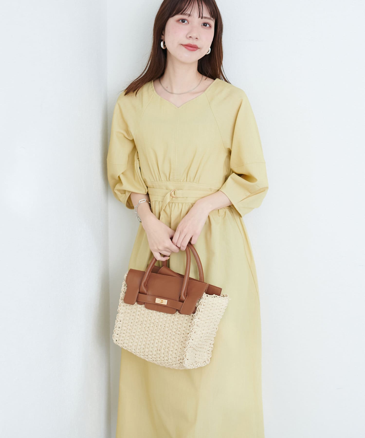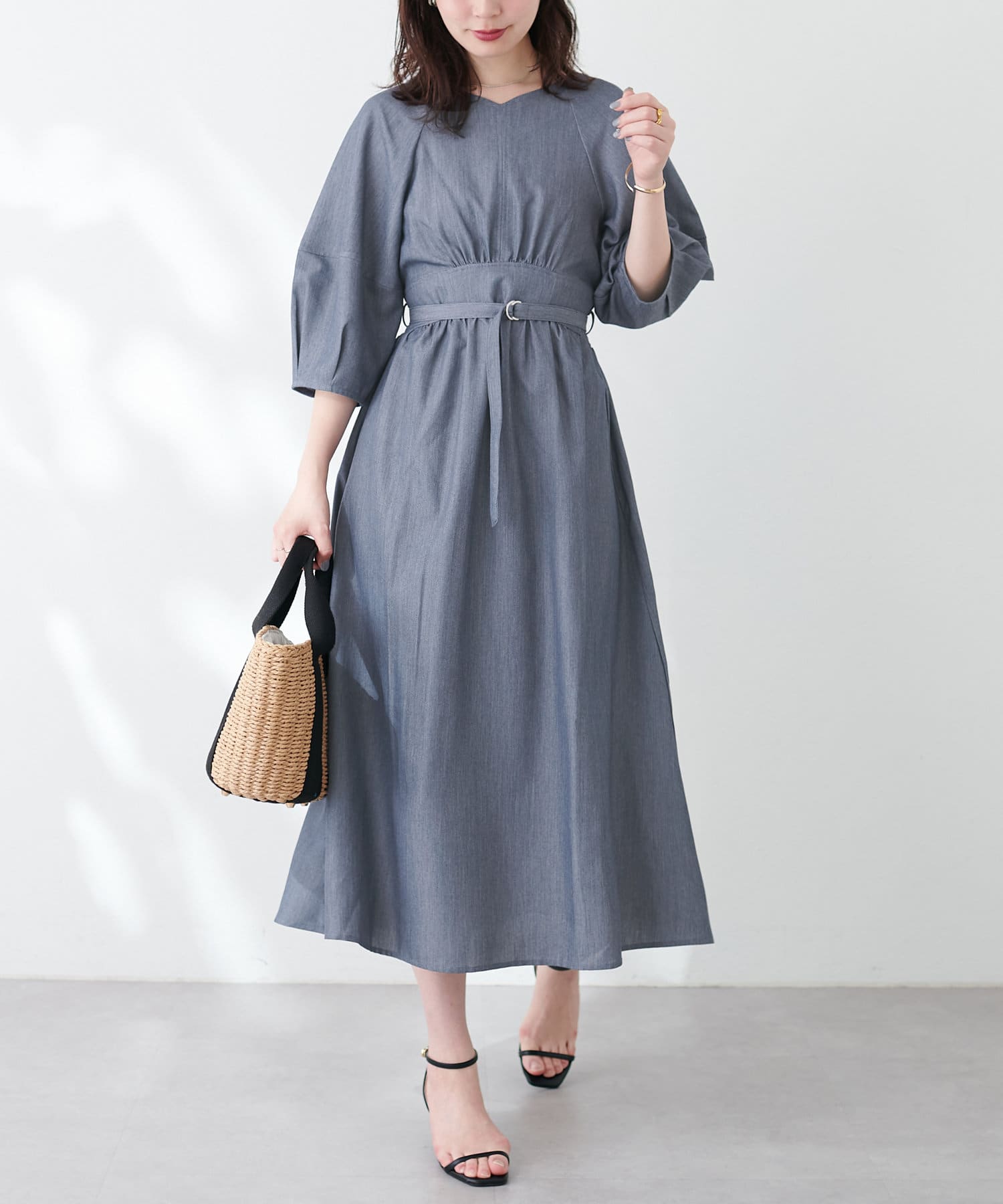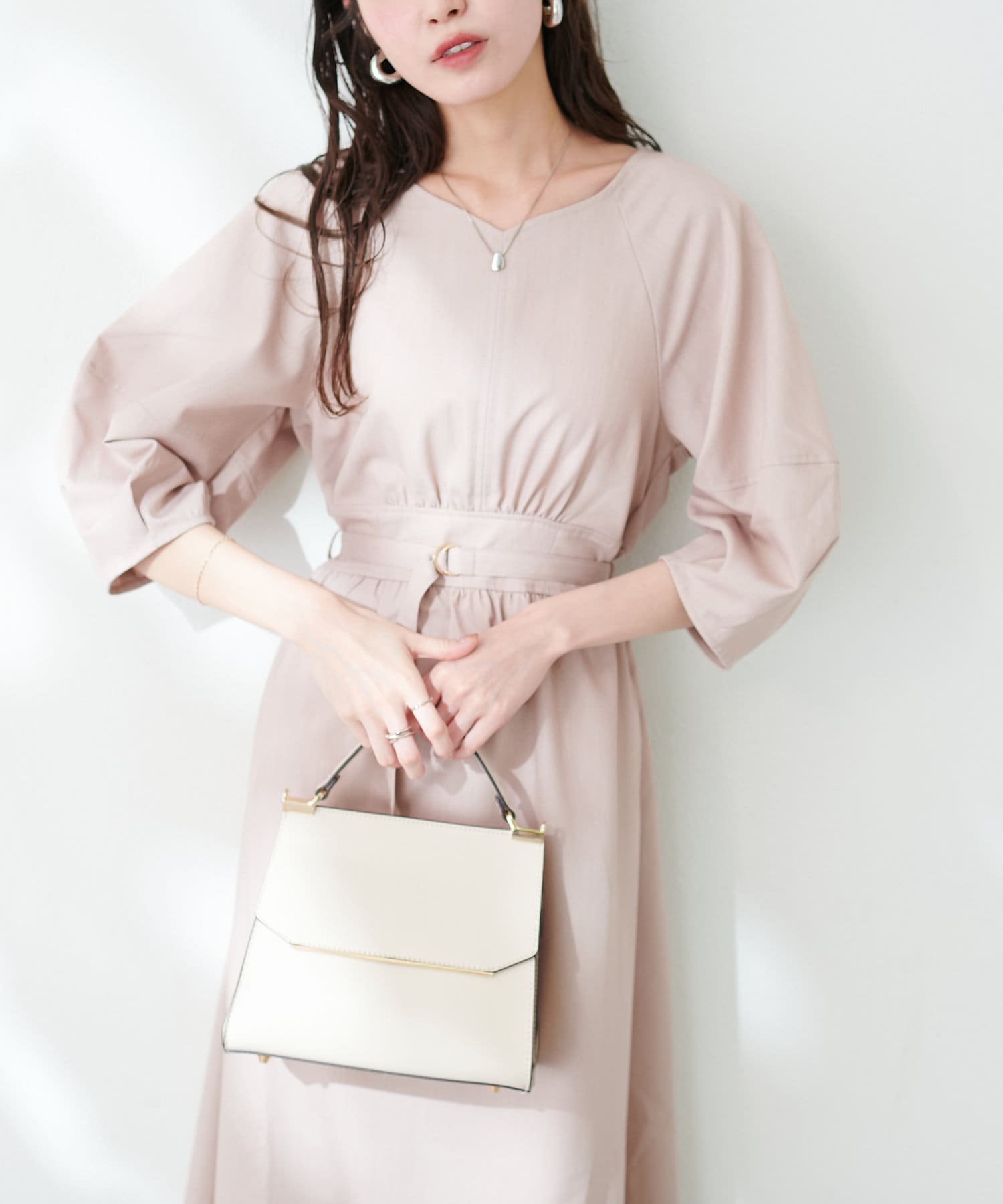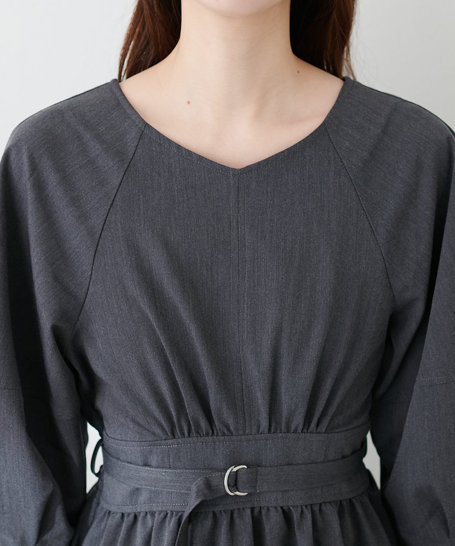 付属のベルトでウエストマークするとさらにスタイルアップ効果が期待でき、洗練されたスタイルが完成します。