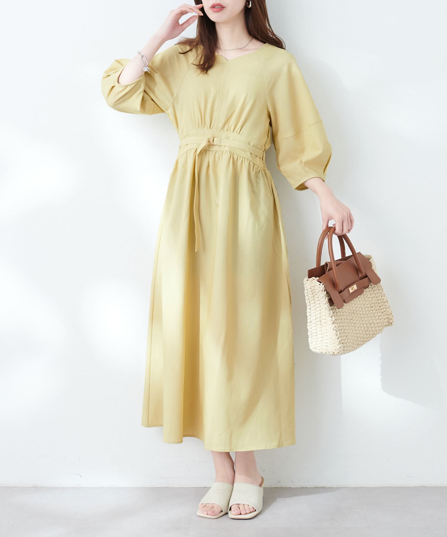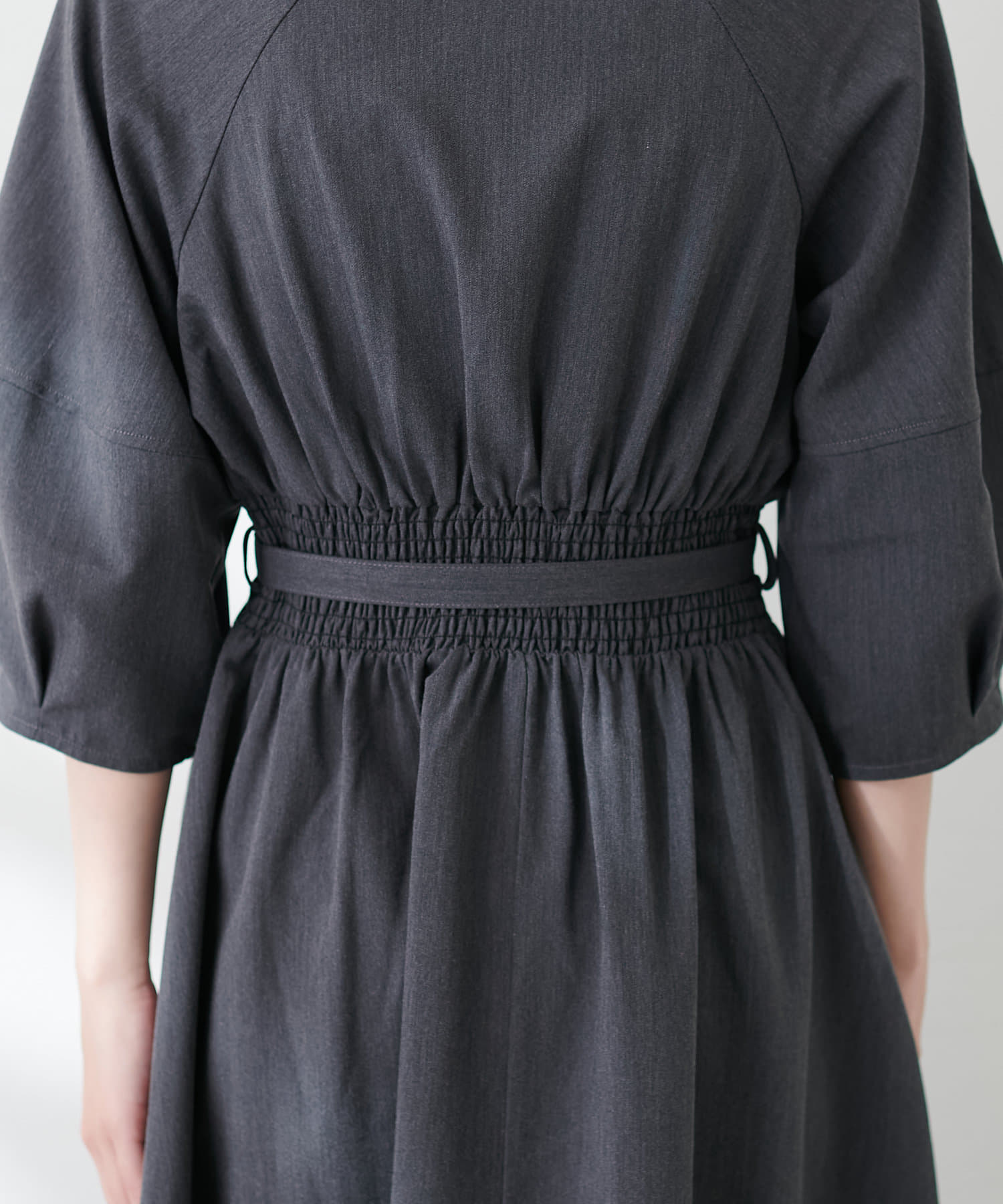 ハイウエスト切替ランタンスリーブワンピース