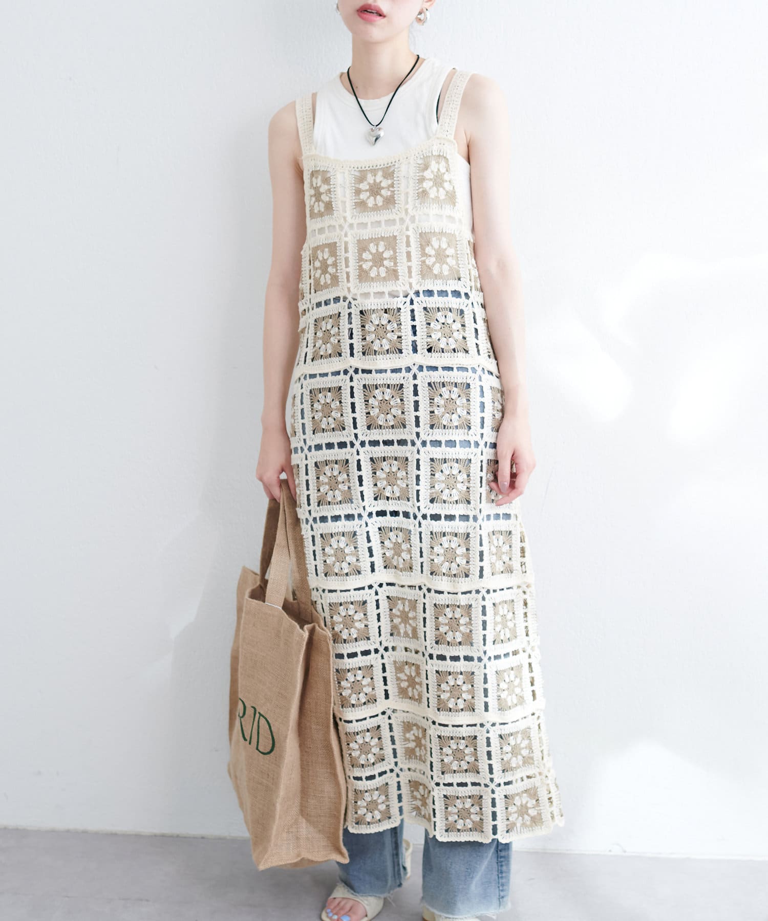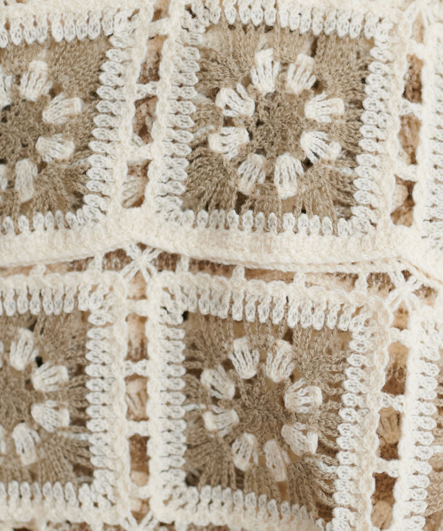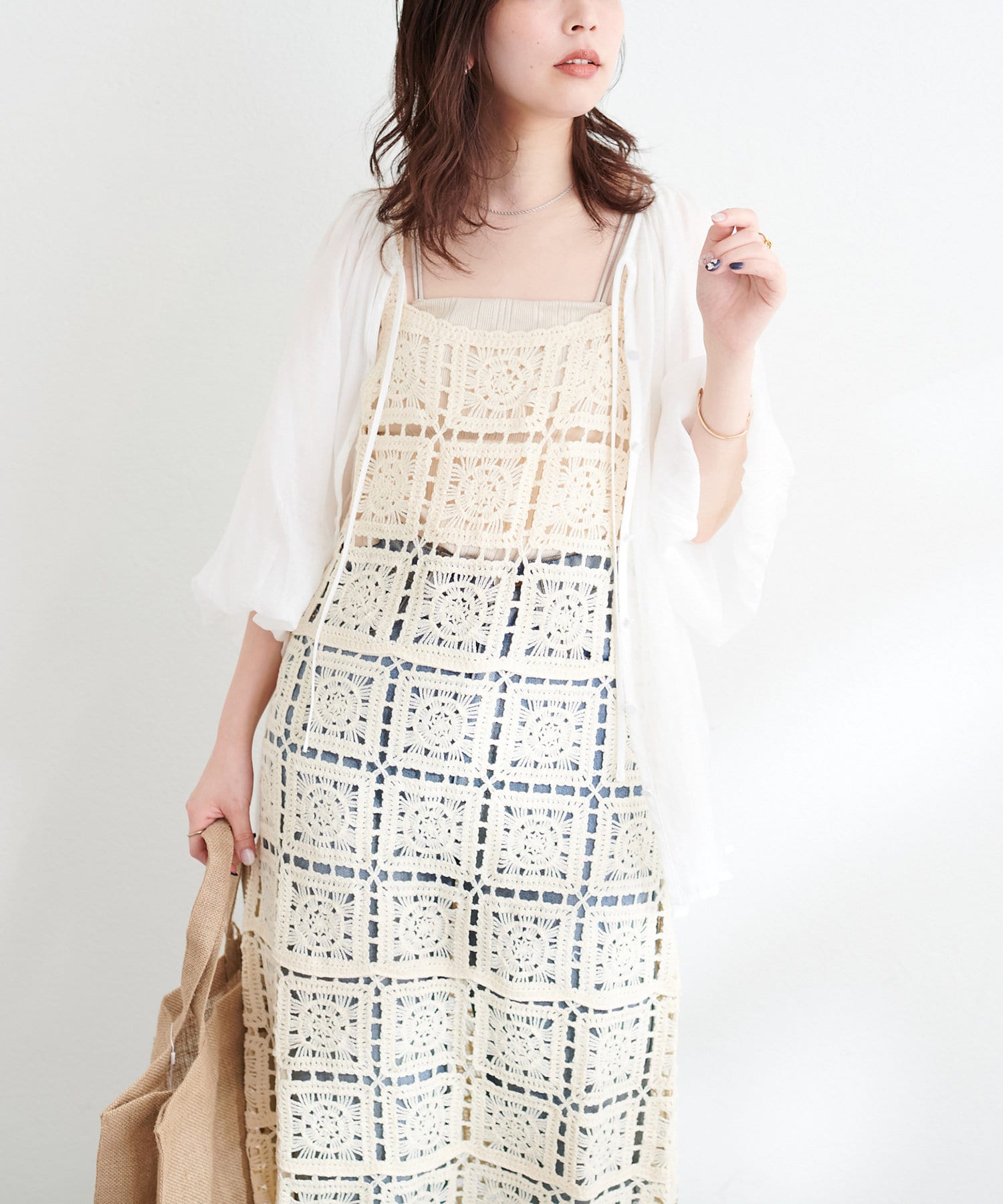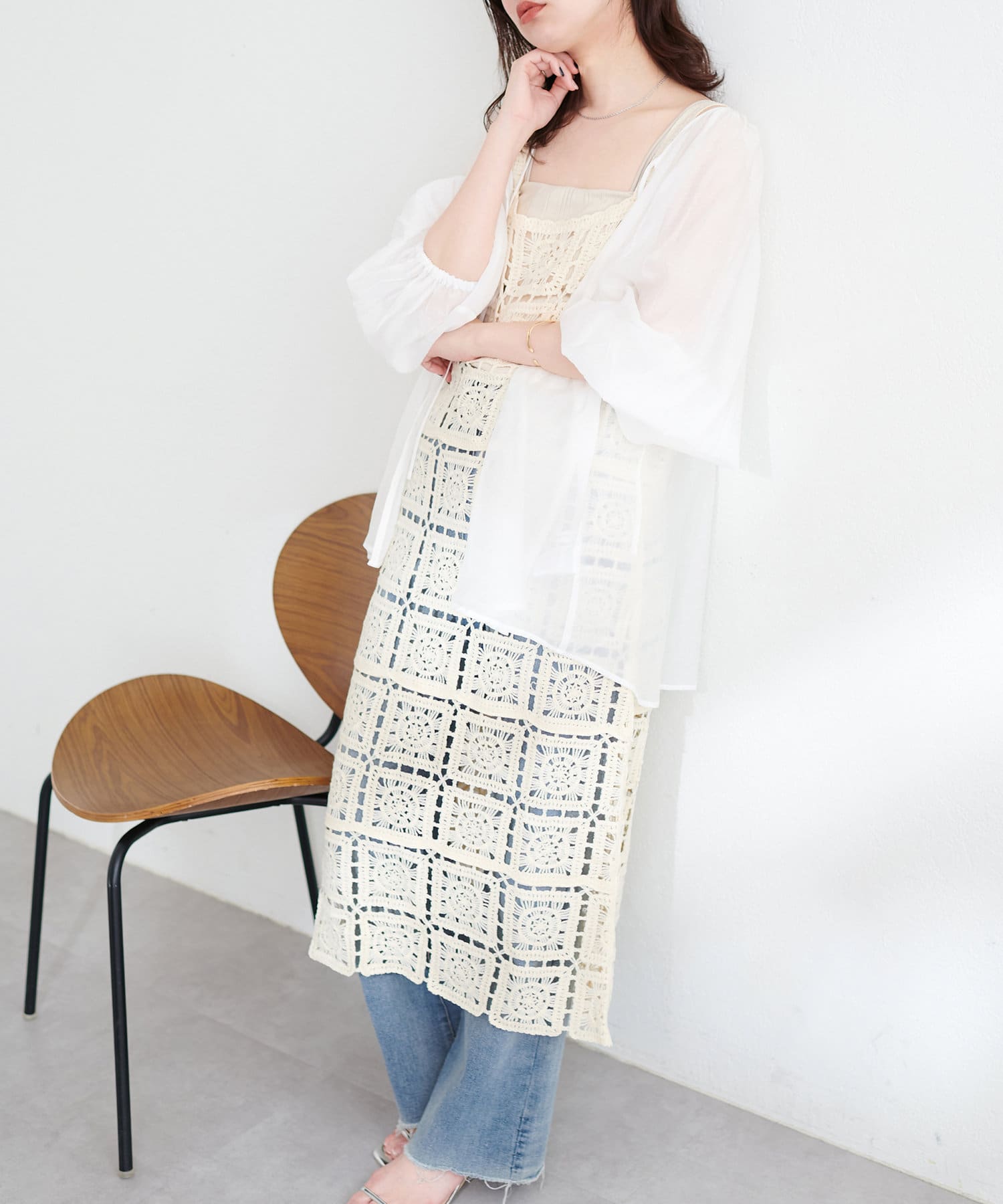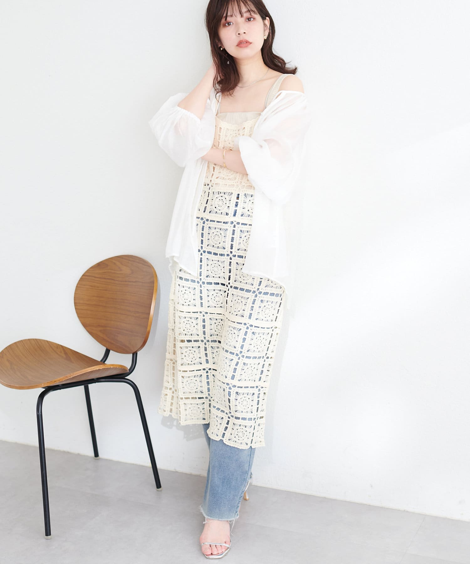 かぎ針編みが立体感を生み出し、ざっくりとした透け感がコーディネートの鮮度を上げてくれる1着。