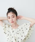 カシュクール部分にもスナップ釦が施され、前開き仕様なので服を着たまま授乳ができ、マタニティ期から産後まで大活躍の1着。