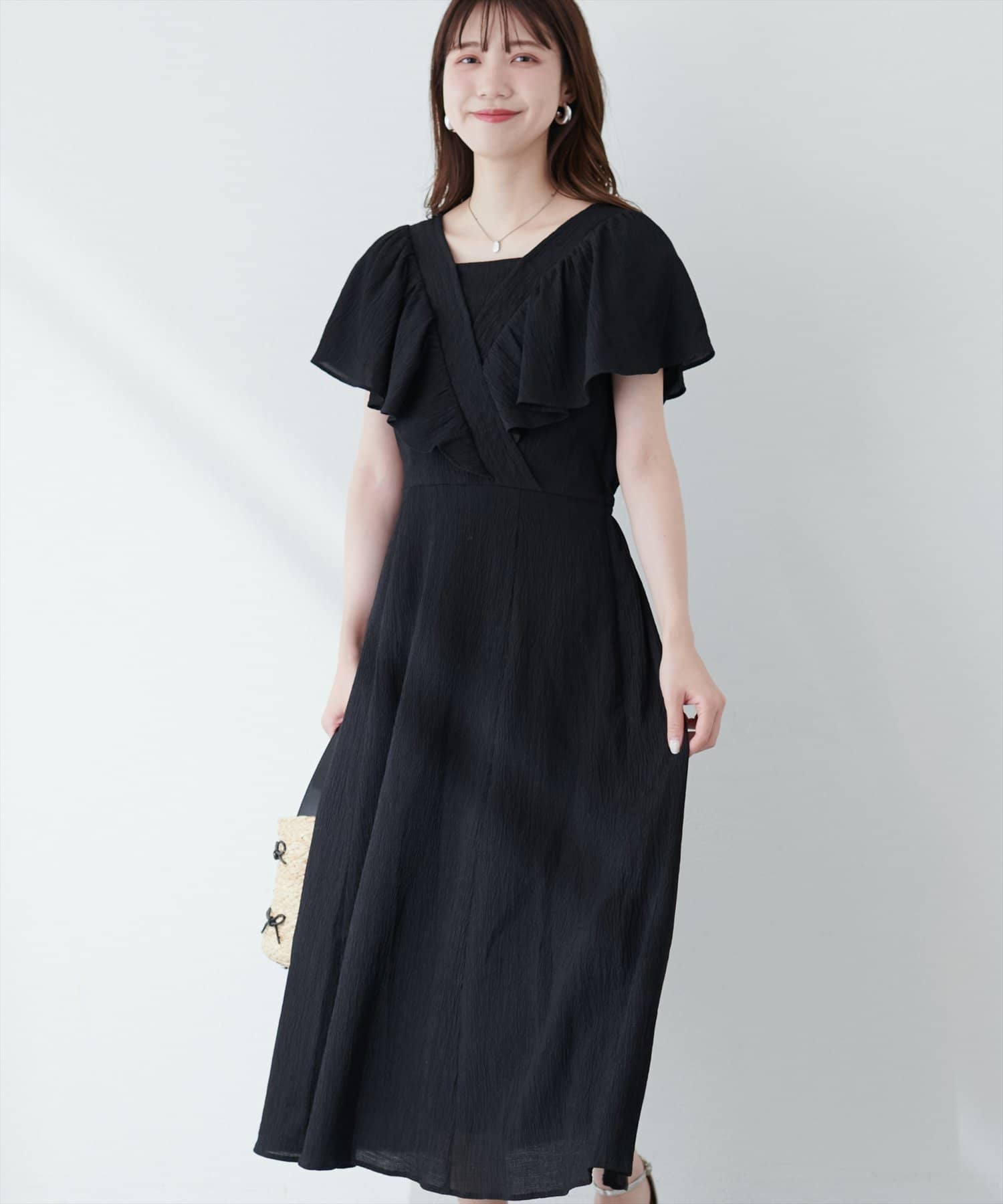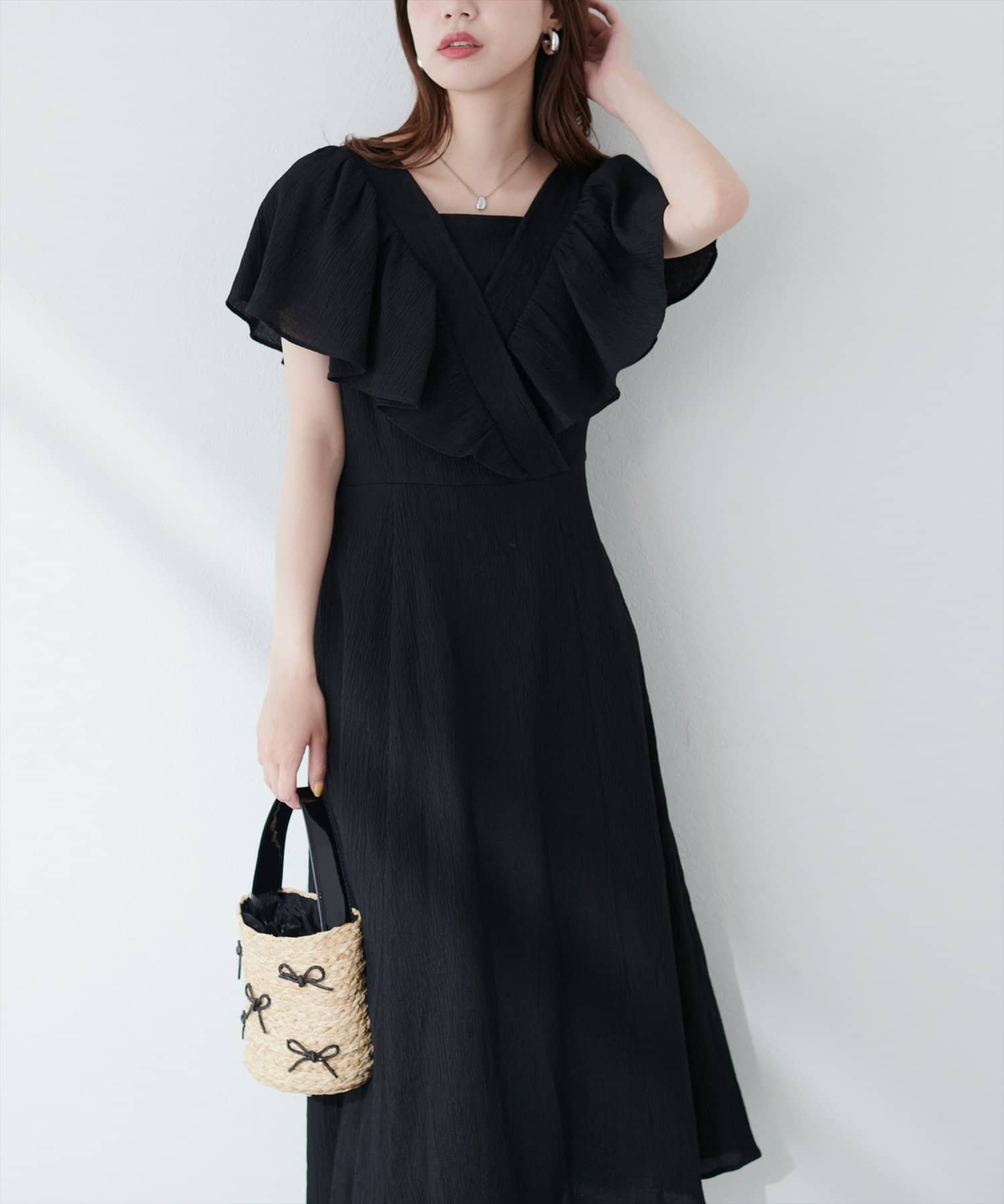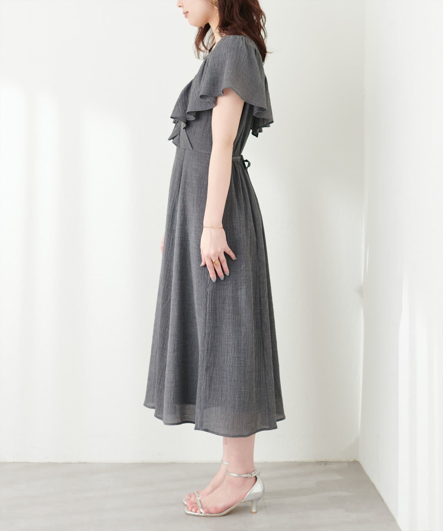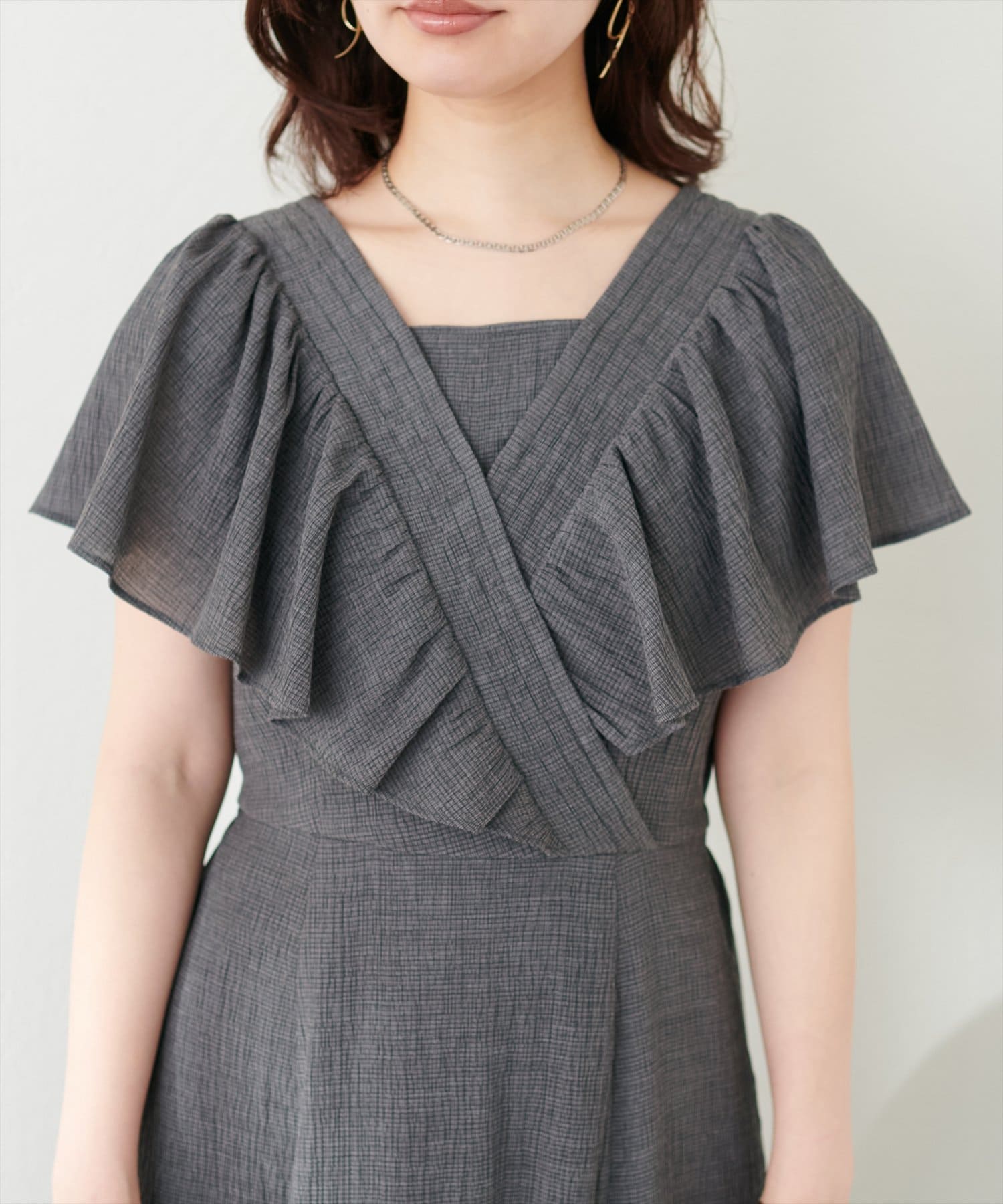 大胆なギャザーフリルが大人可愛いレディワンピース。