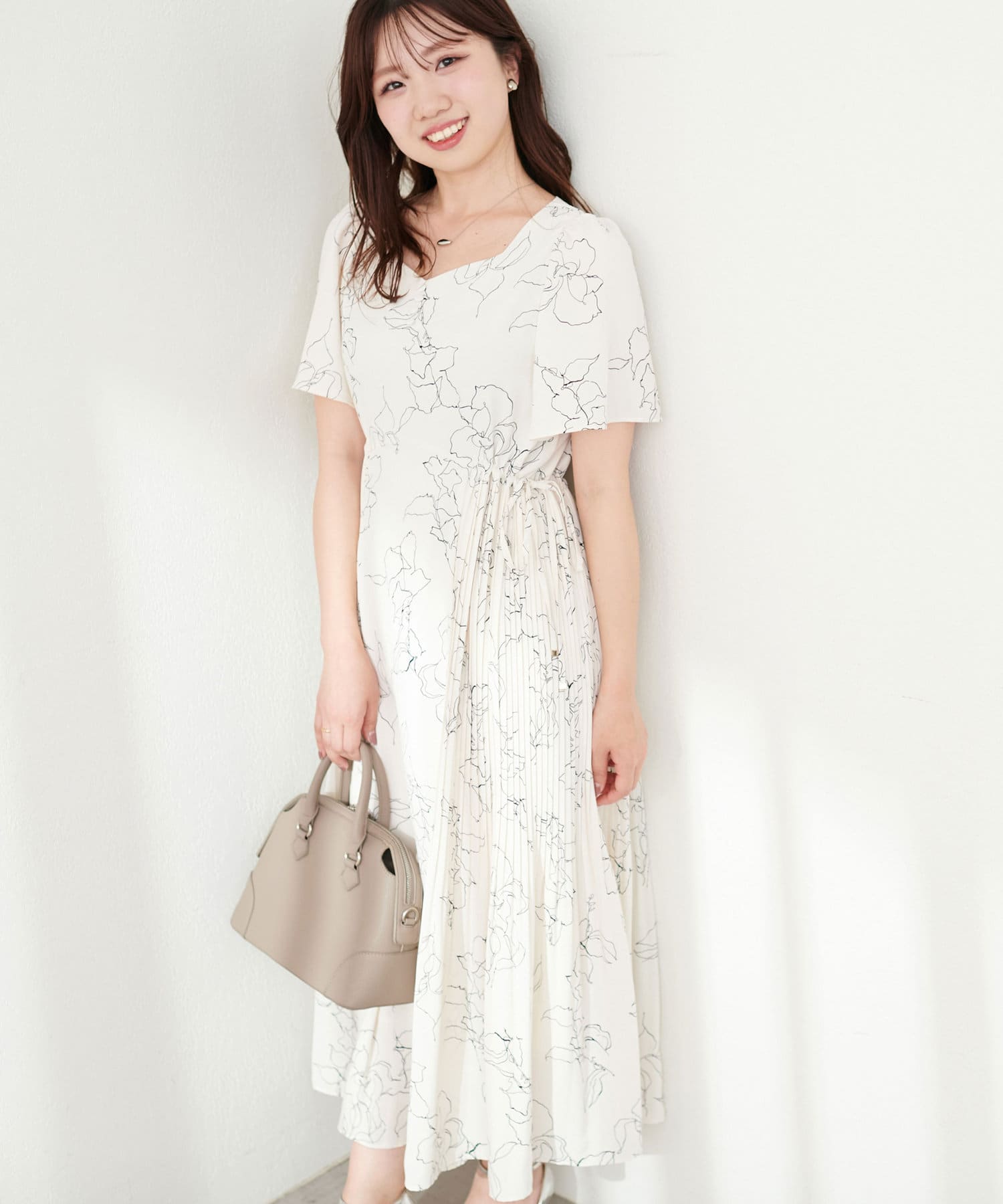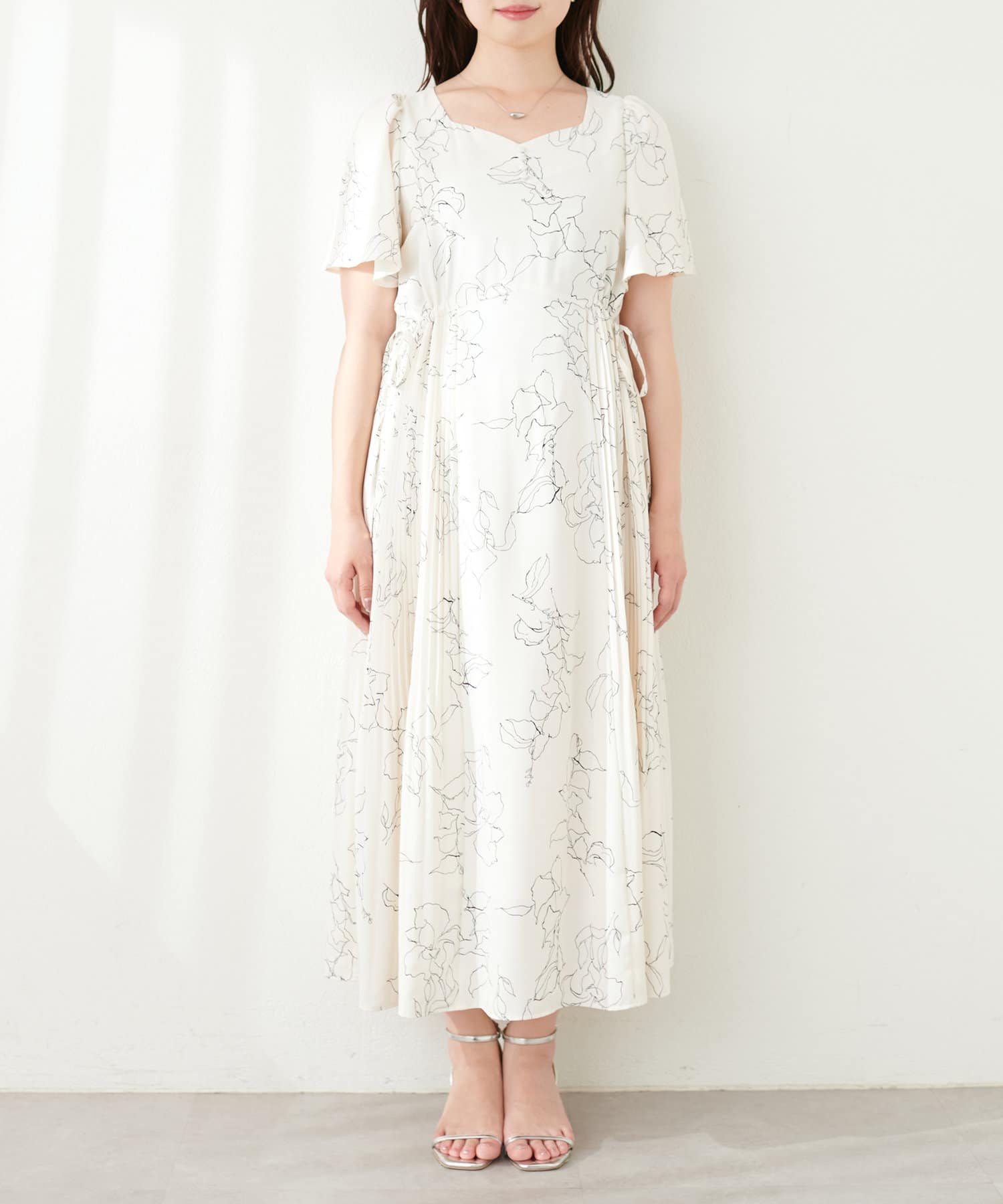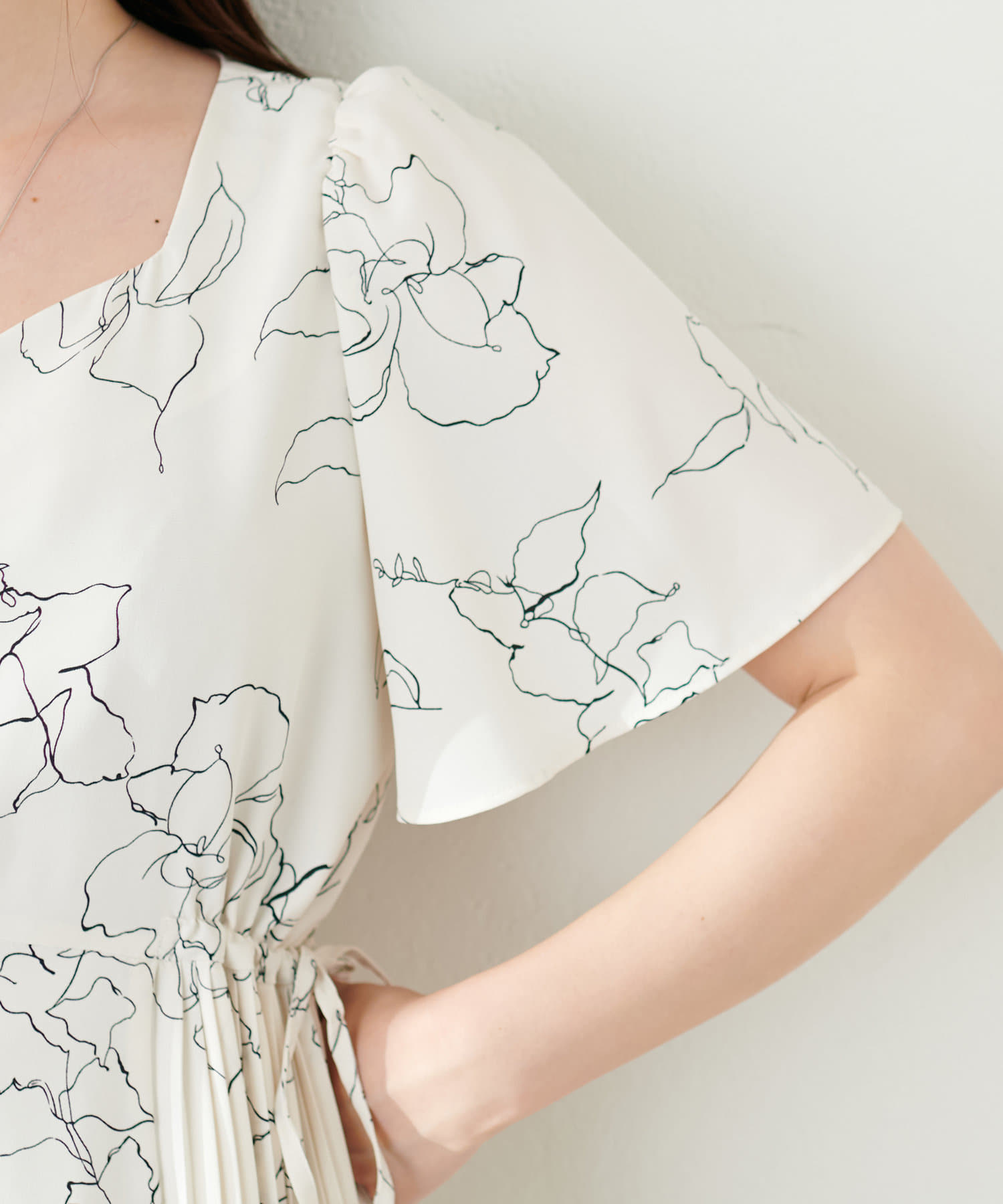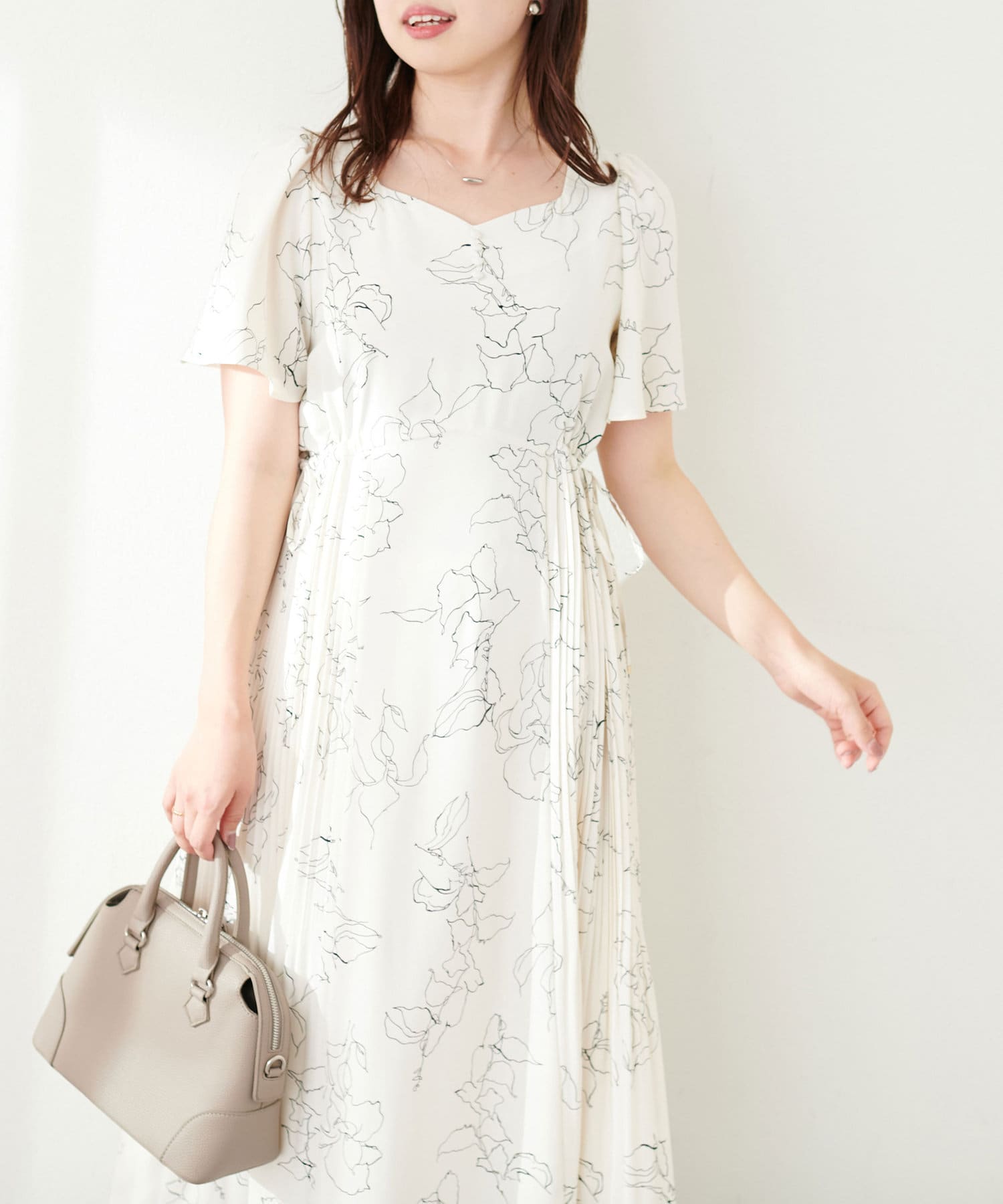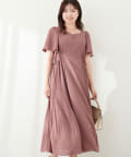 【canami】ハートネック両サイドプリーツフレアスリーブワンピース