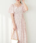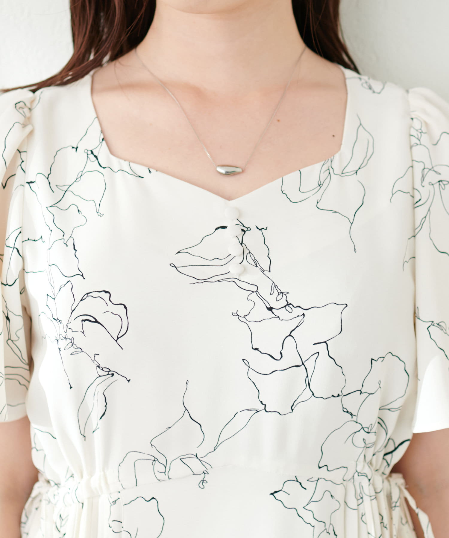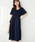 TOP > natural couture > レディース > ワンピース > ワンピース > 【canami】ハートネック両サイドプリーツフレアスリーブワンピース