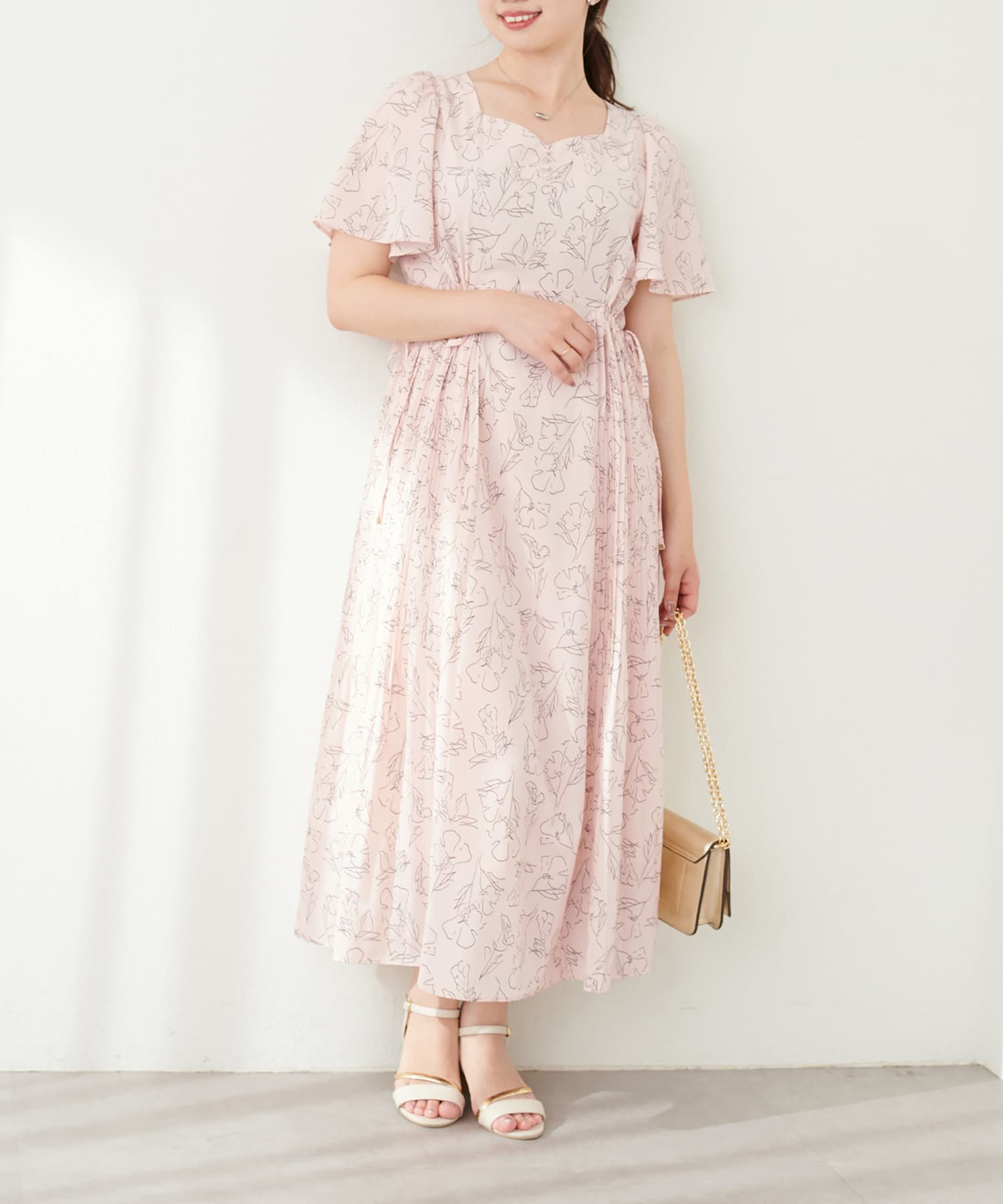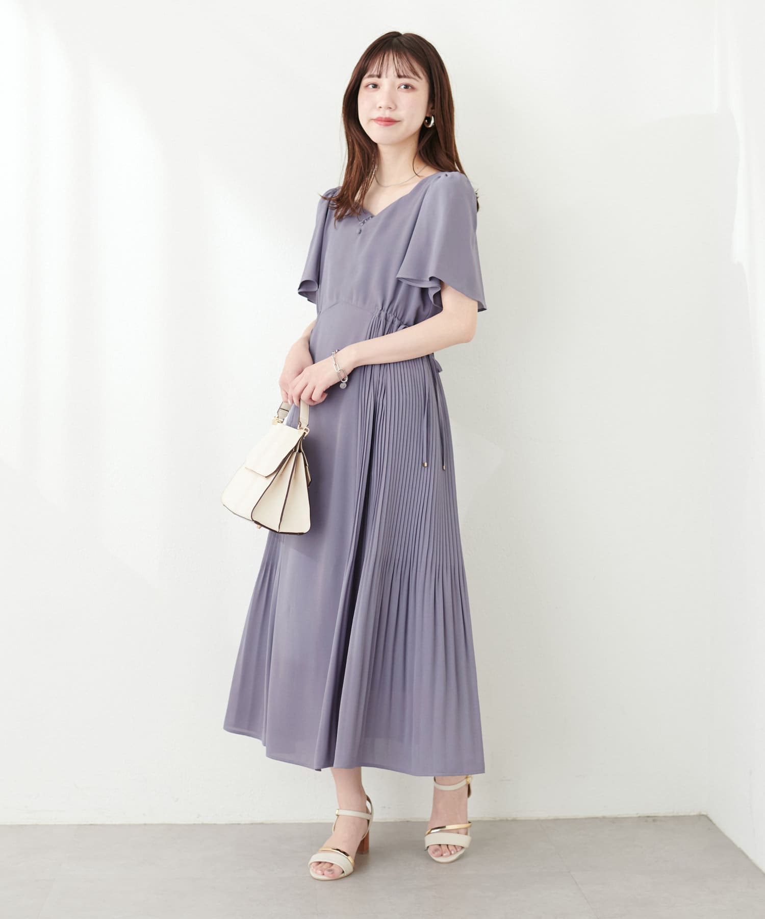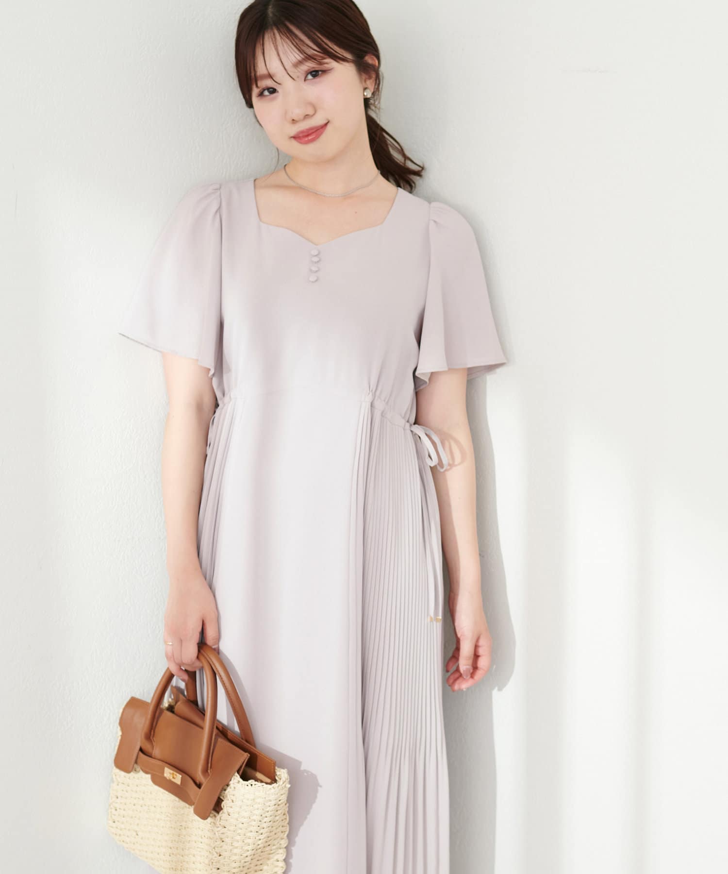 natural couture(ナチュラルクチュール) 【canami】ハートネック両サイドプリーツフレアスリーブワンピース