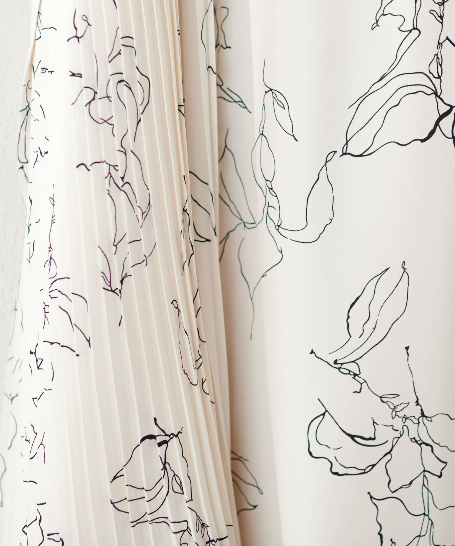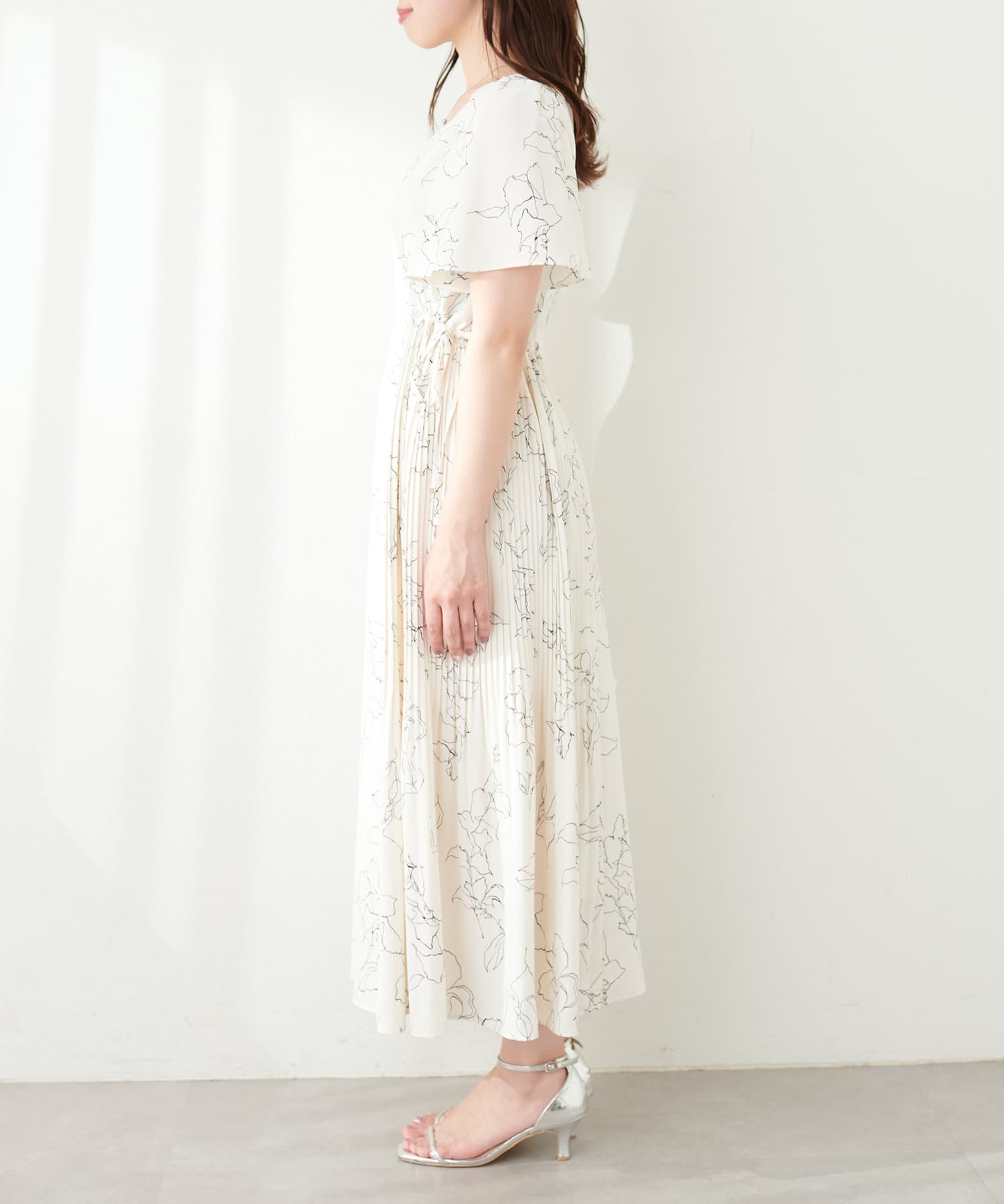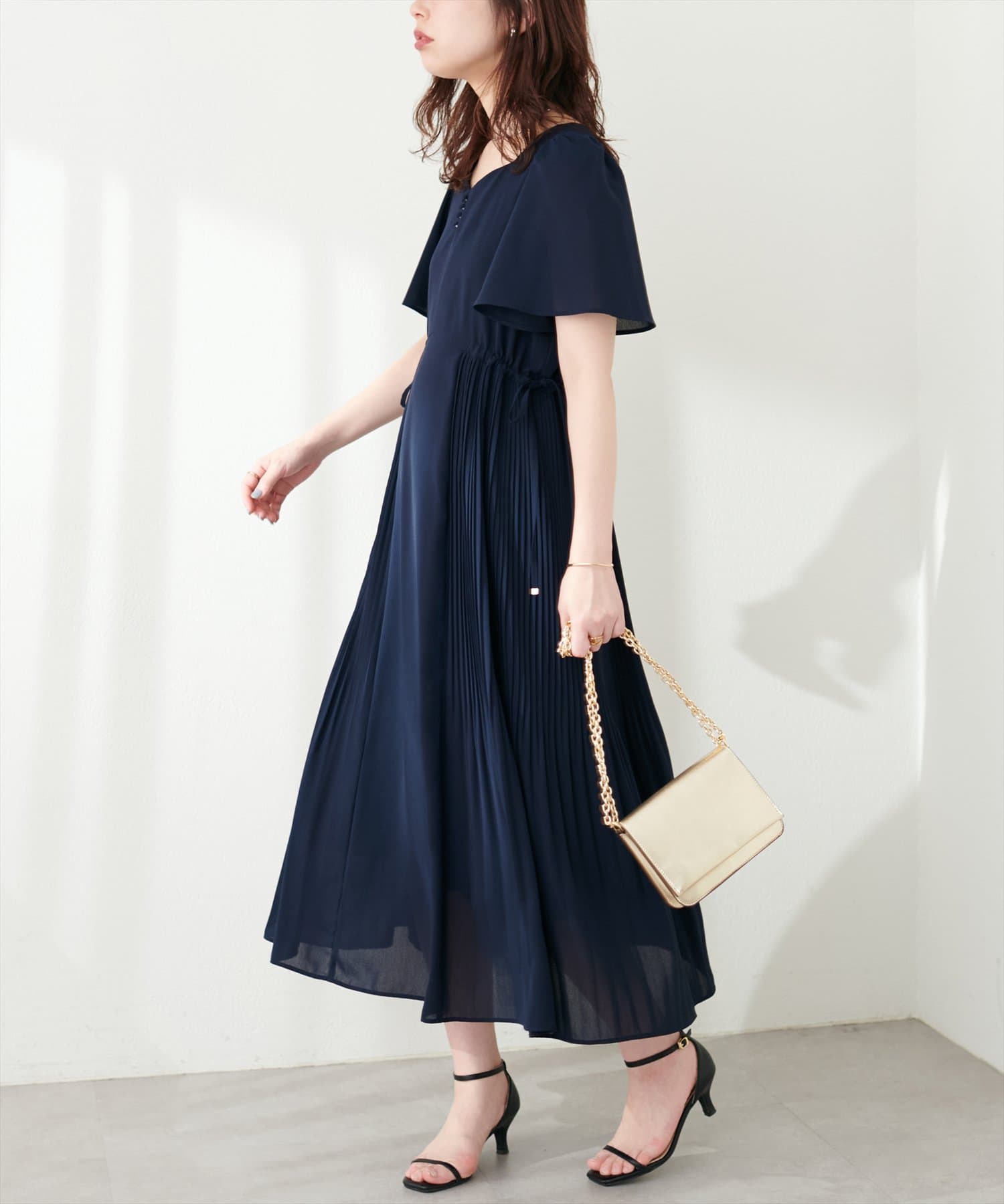サイドリボンから広がる消しプリーツは動くたび華やかなドレープが生まれ、