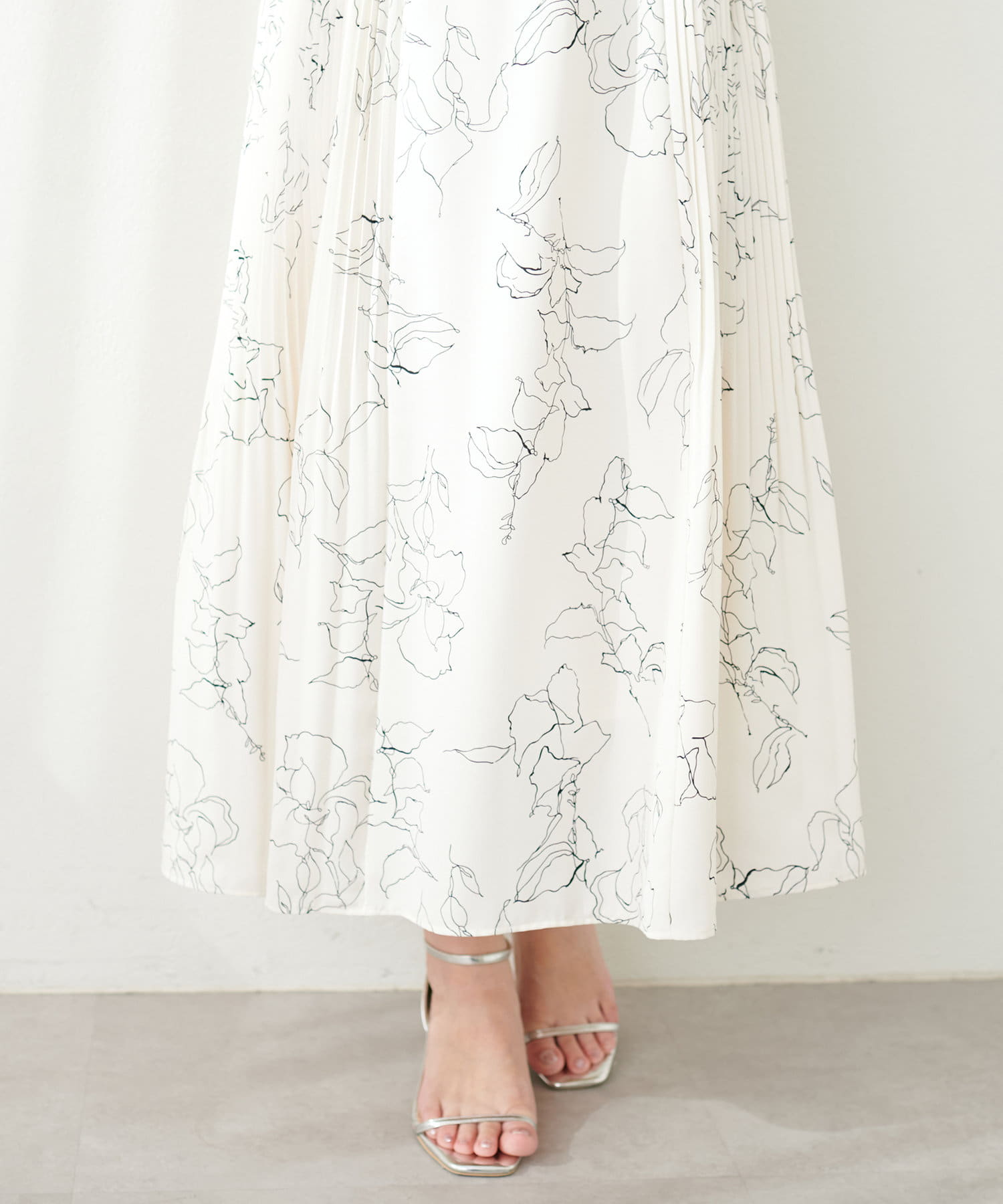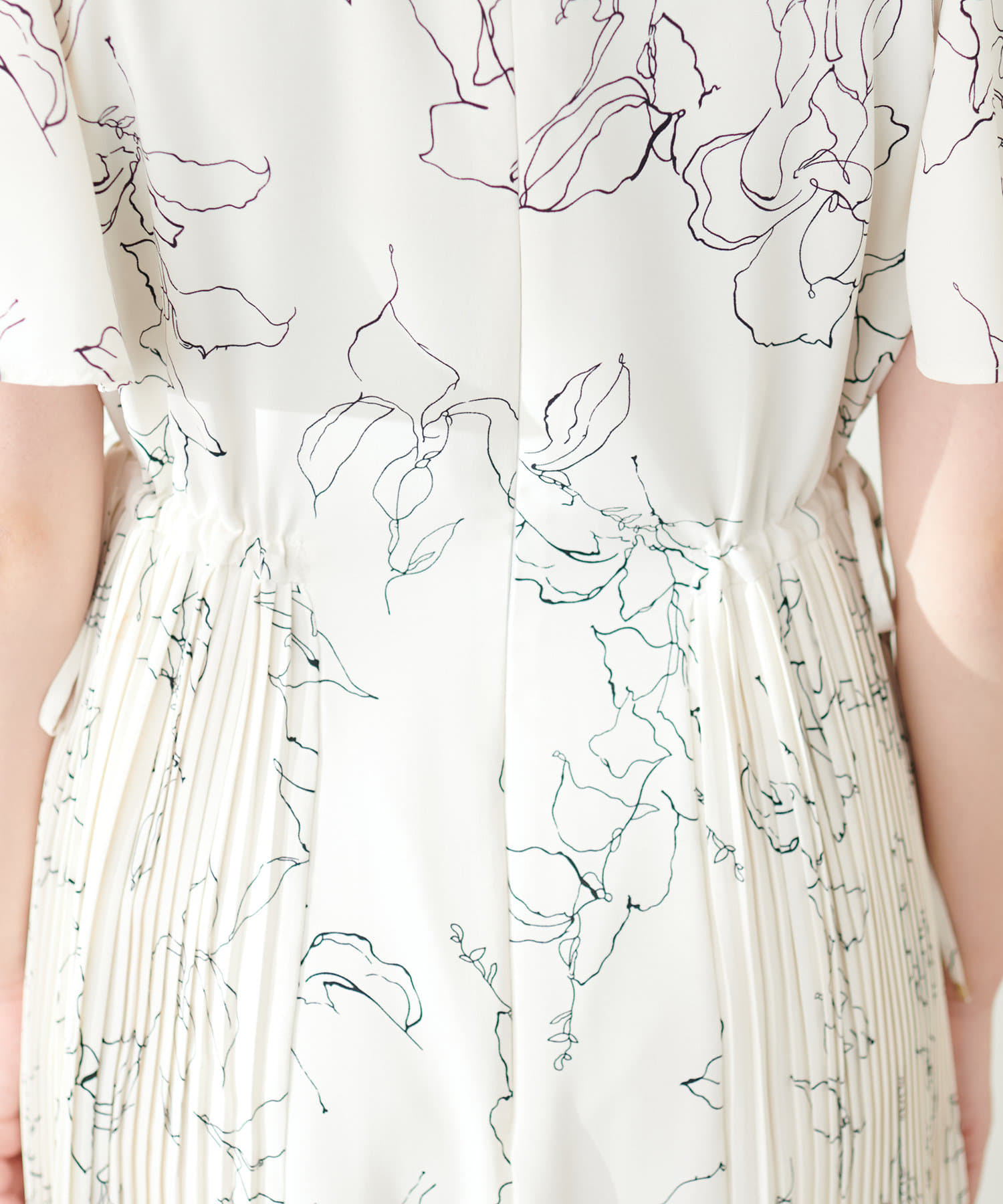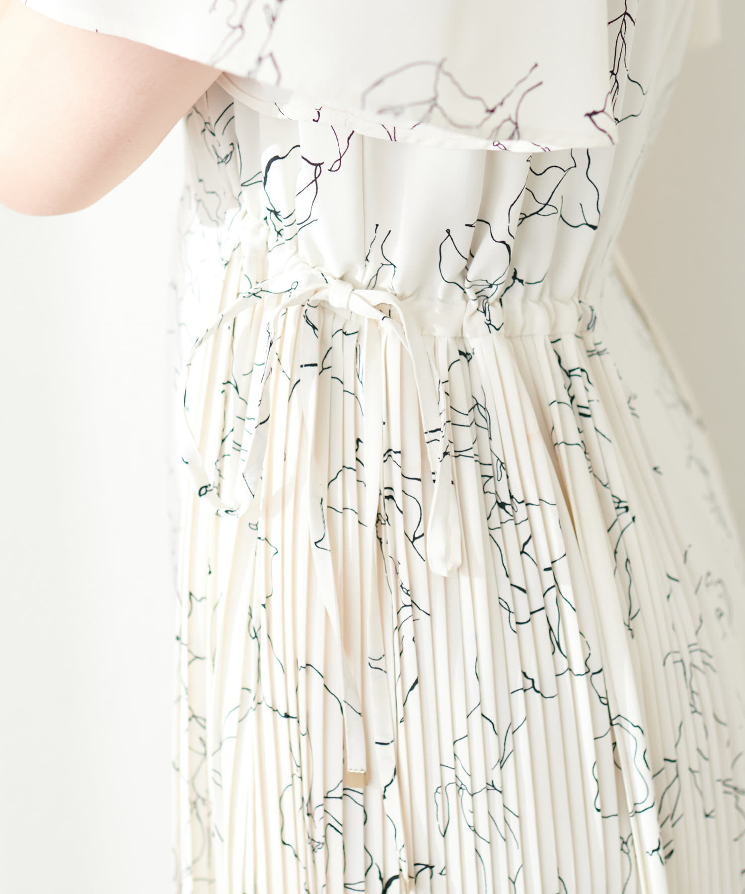 サイドリボンから広がる消しプリーツは動くたび華やかなドレープが生まれ、