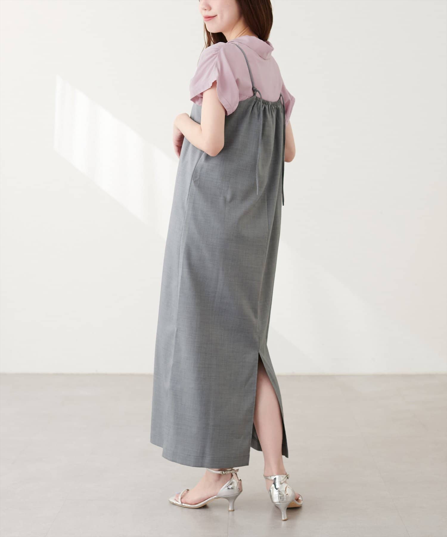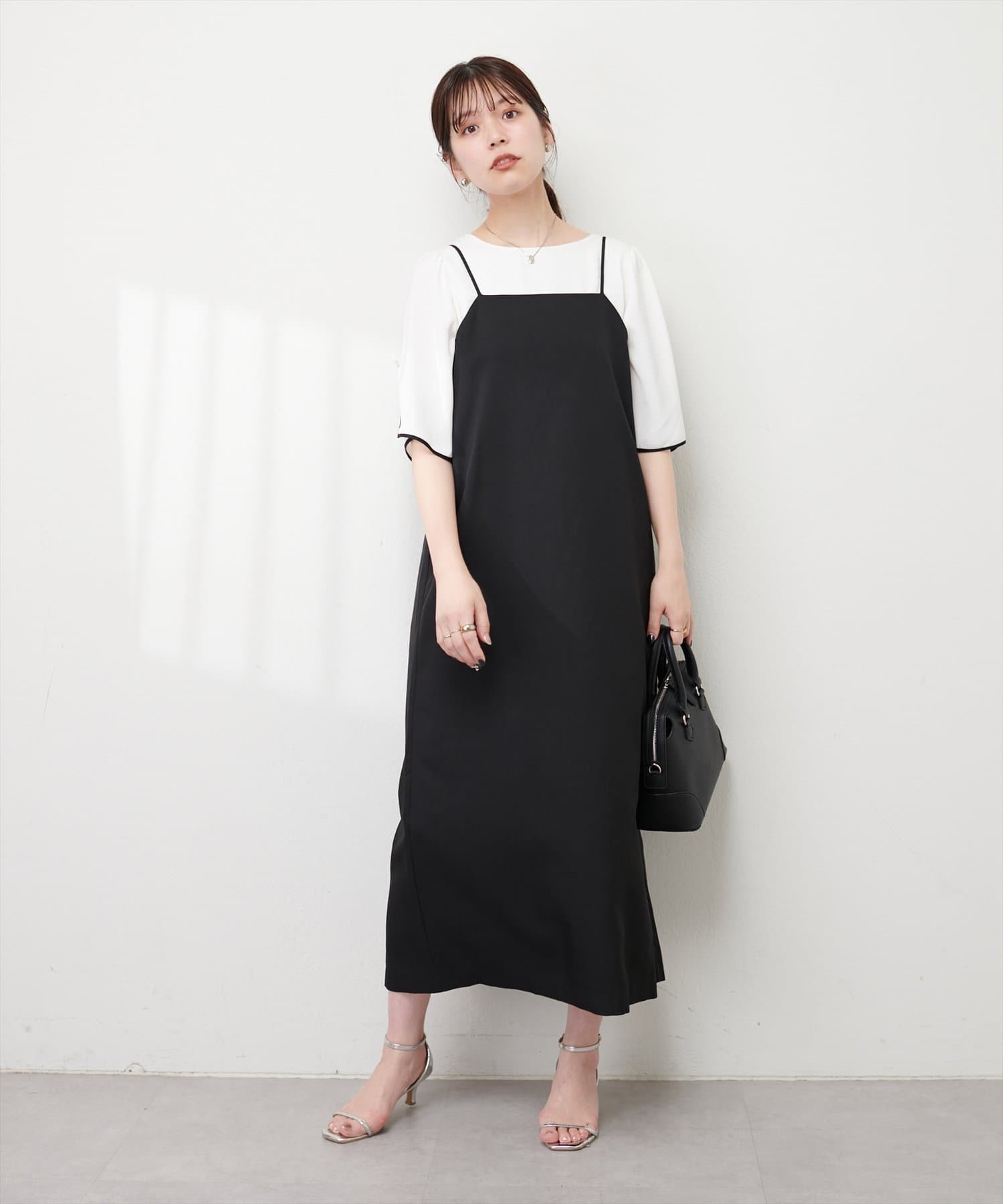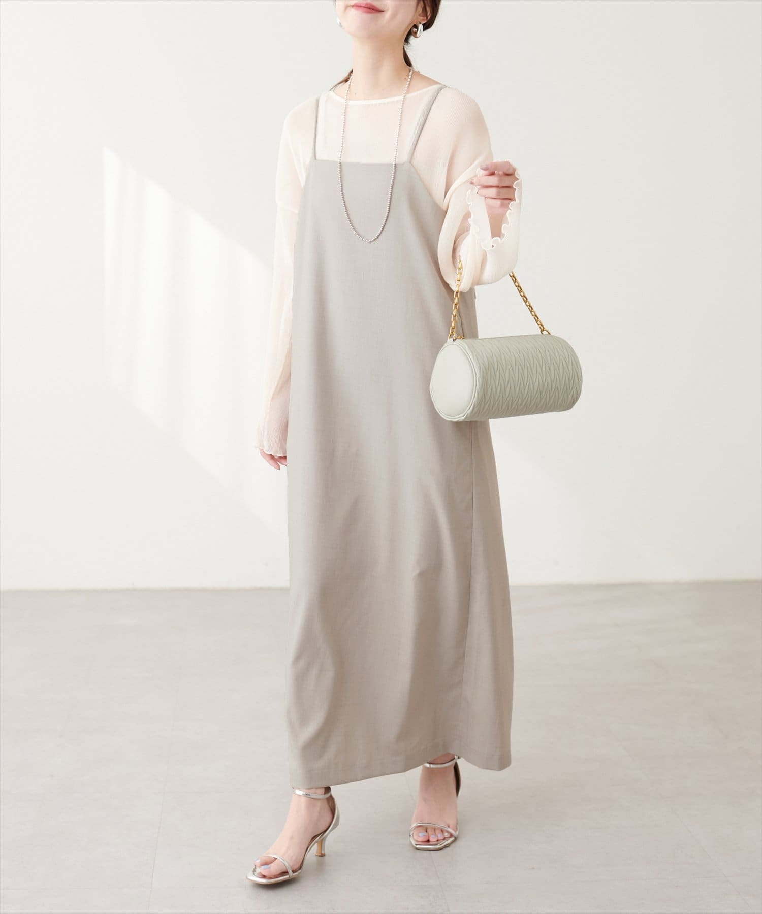 キャミワンピースは、Tシャツやシアーインナーと合わせたり、