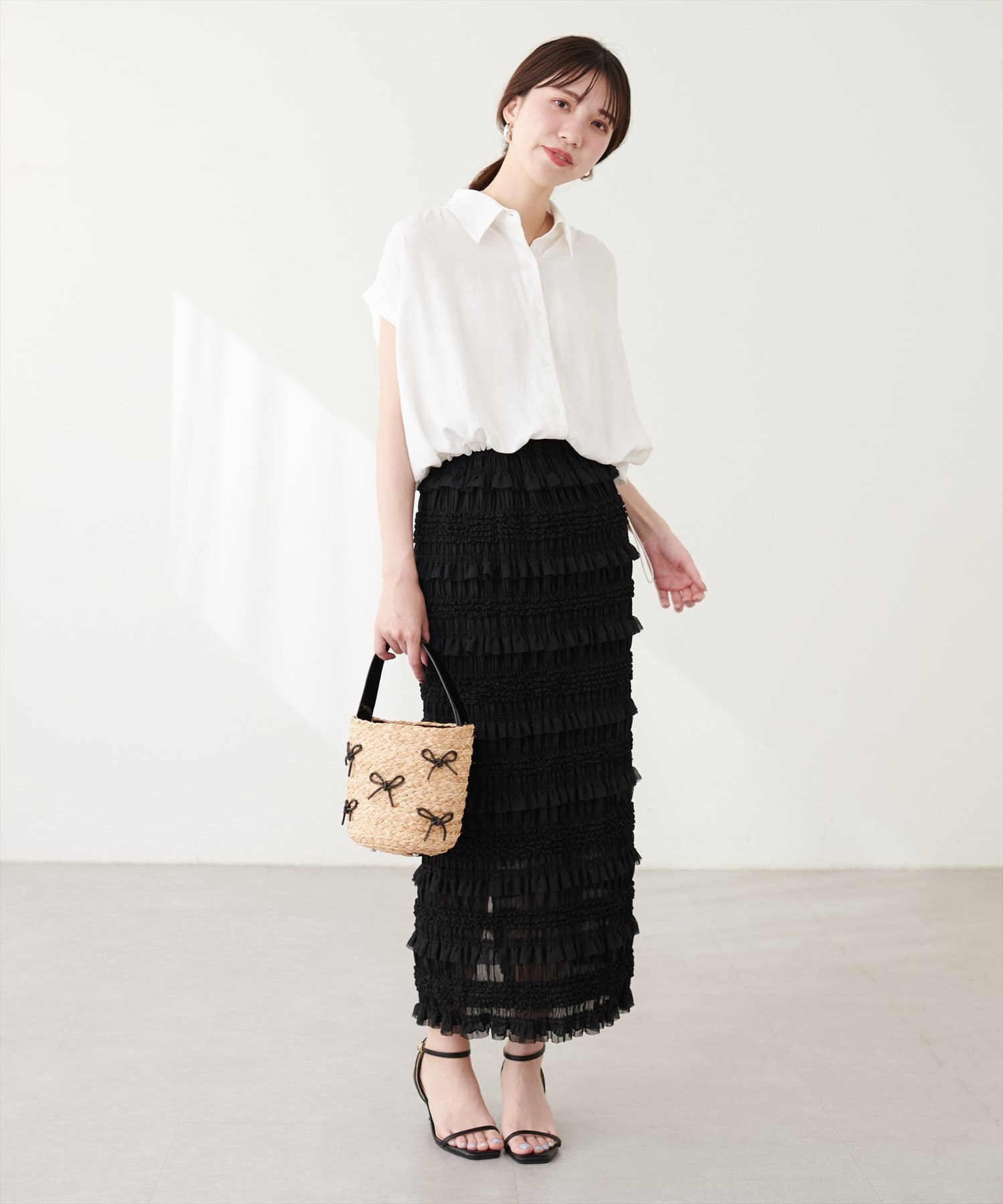 ブラウスはトレンドのドロストでお好みの形に調節できます。