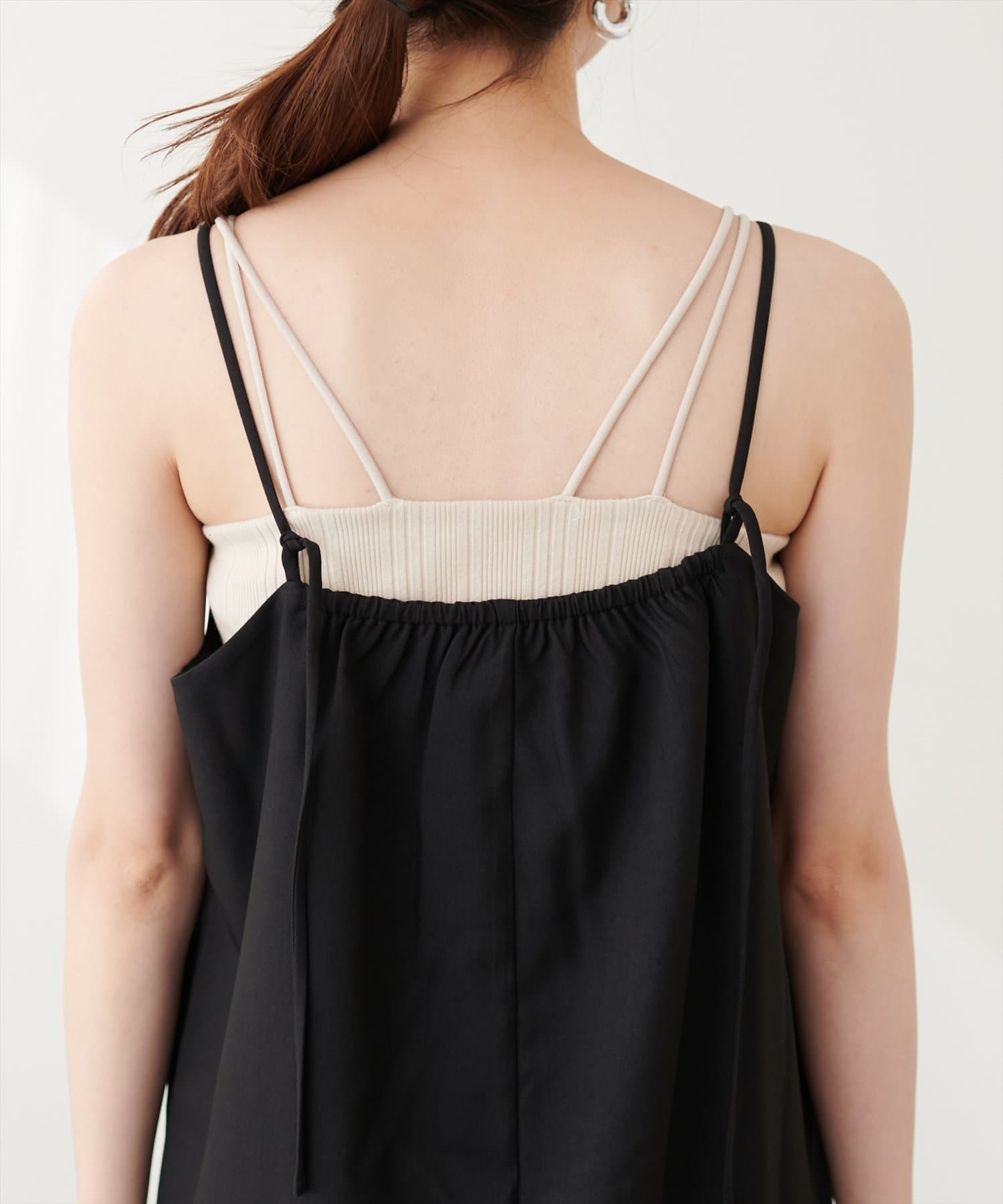 キャミワンピースの肩紐は結べるタイプでお好みの長さに調節して頂けます。