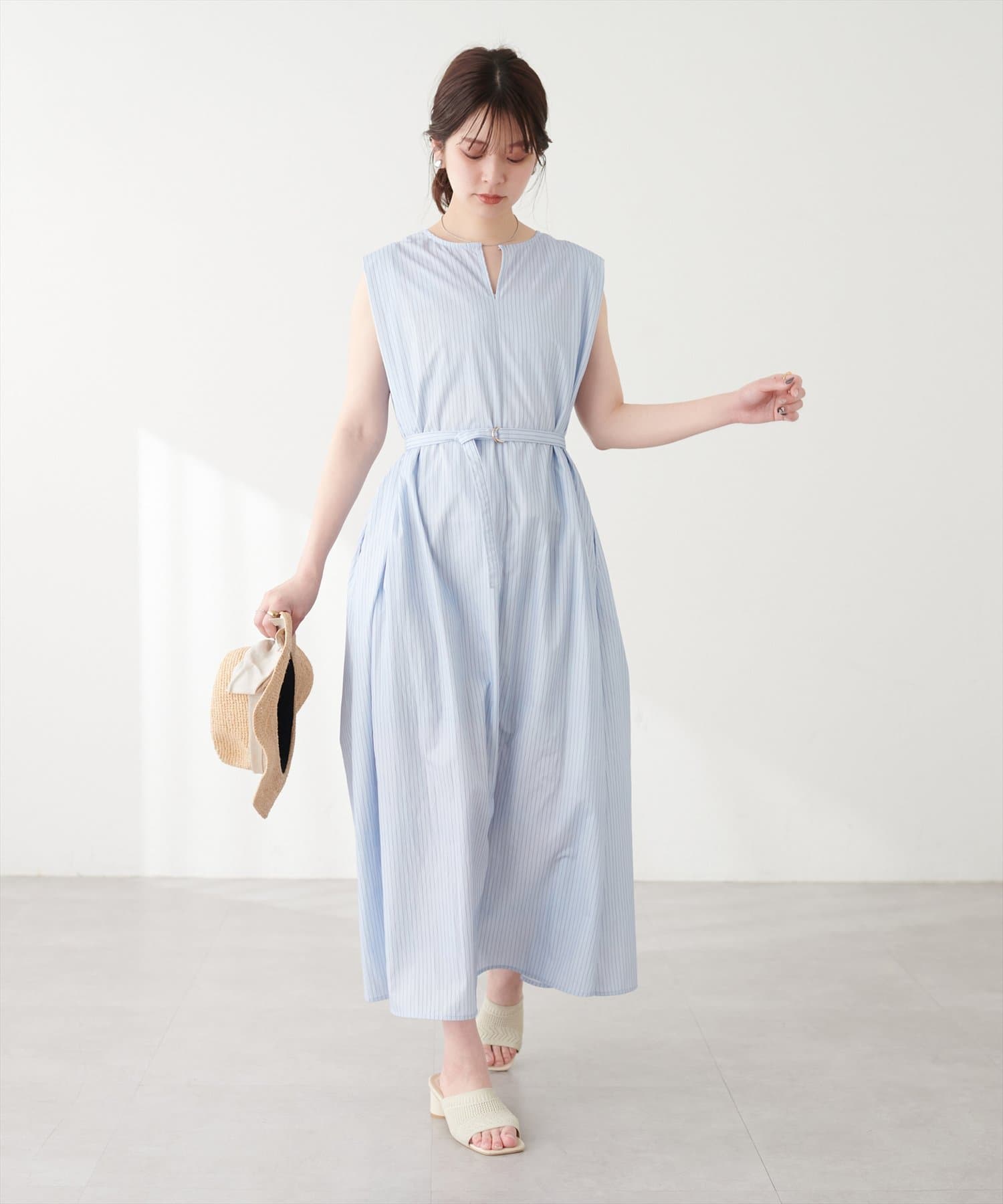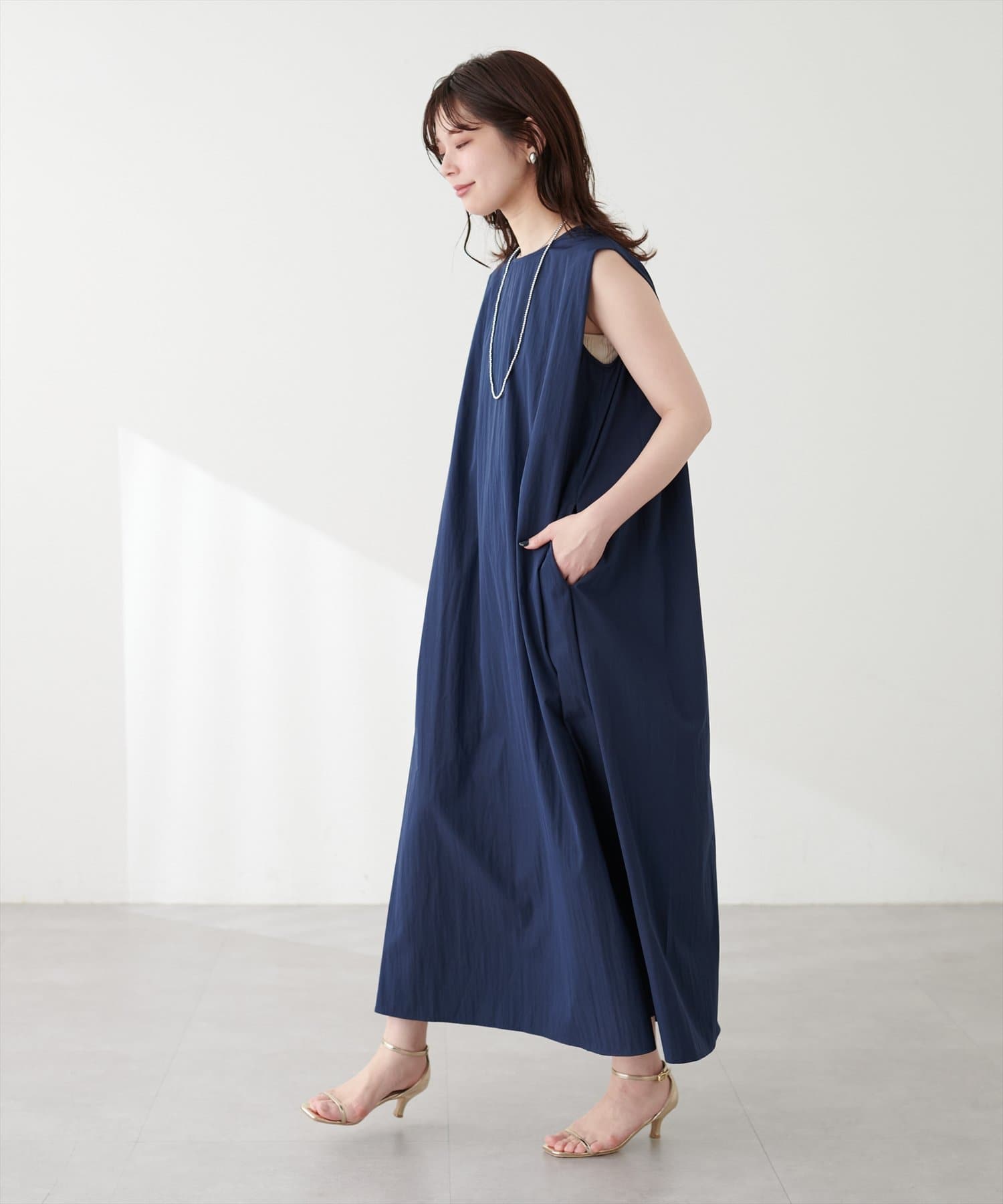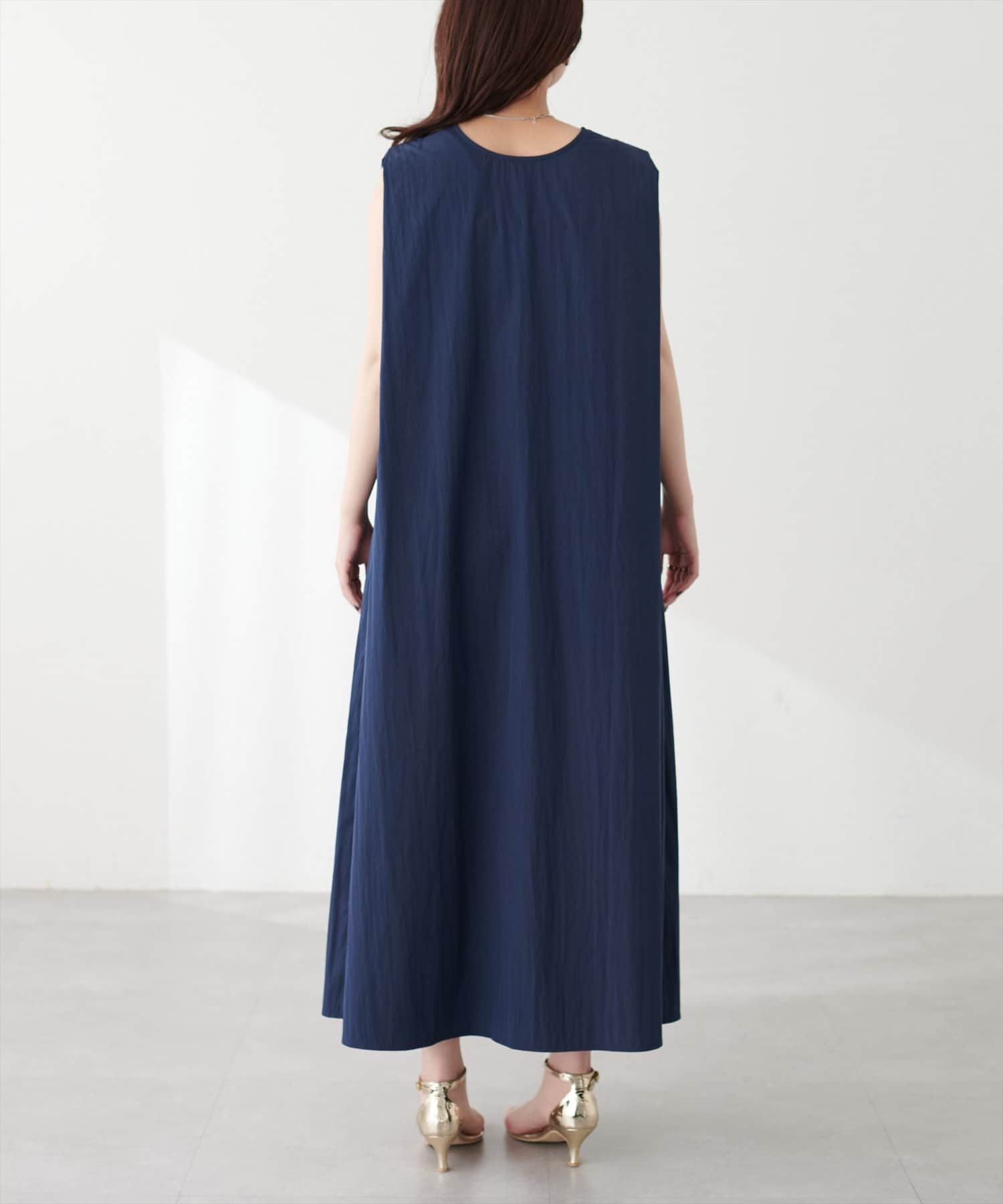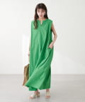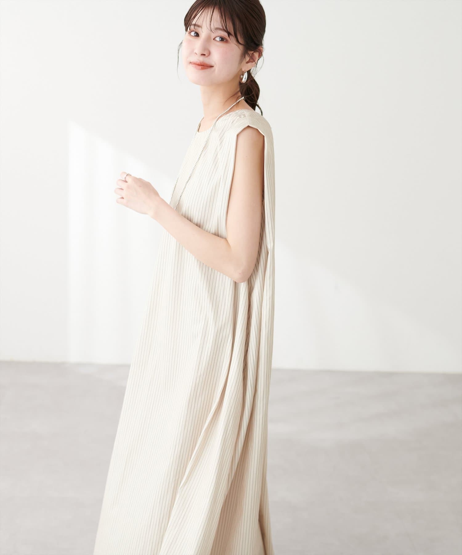 Aラインのたっぷりとしたシルエットの大人見えするシャツワンピースです。