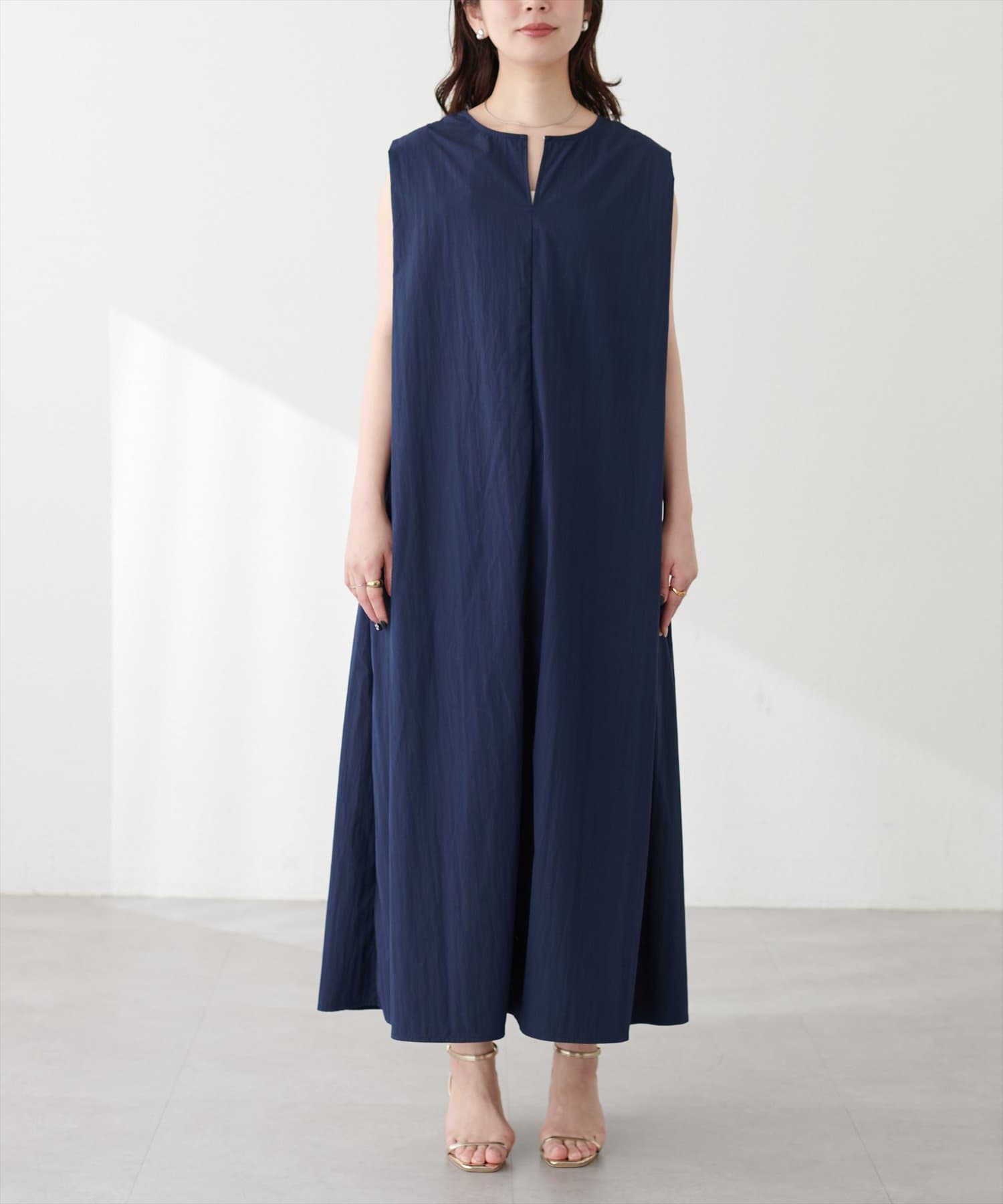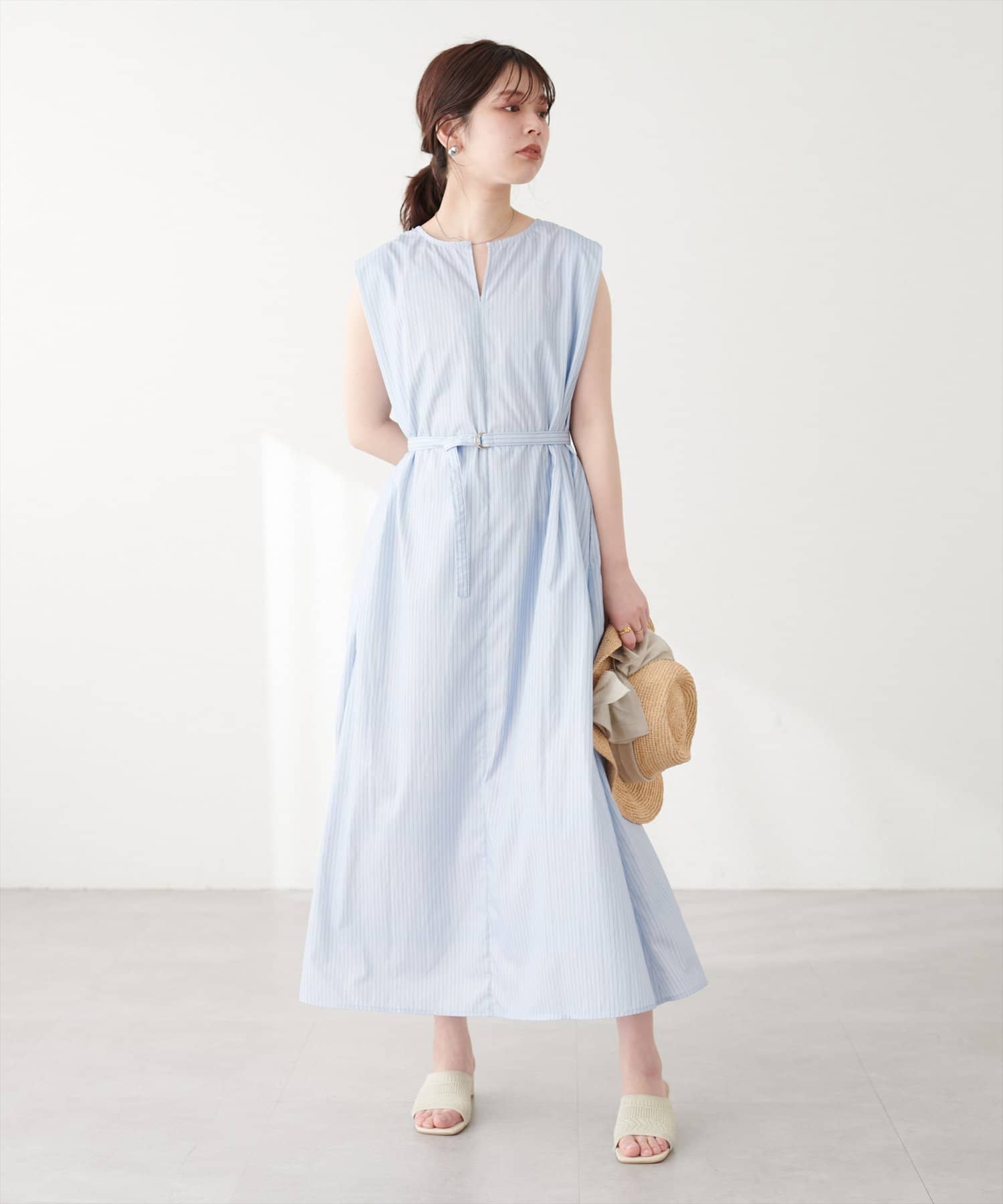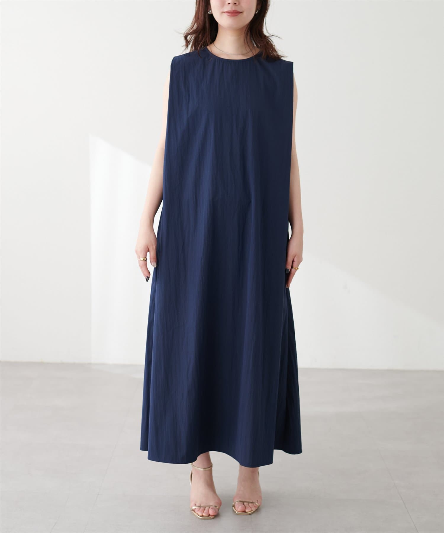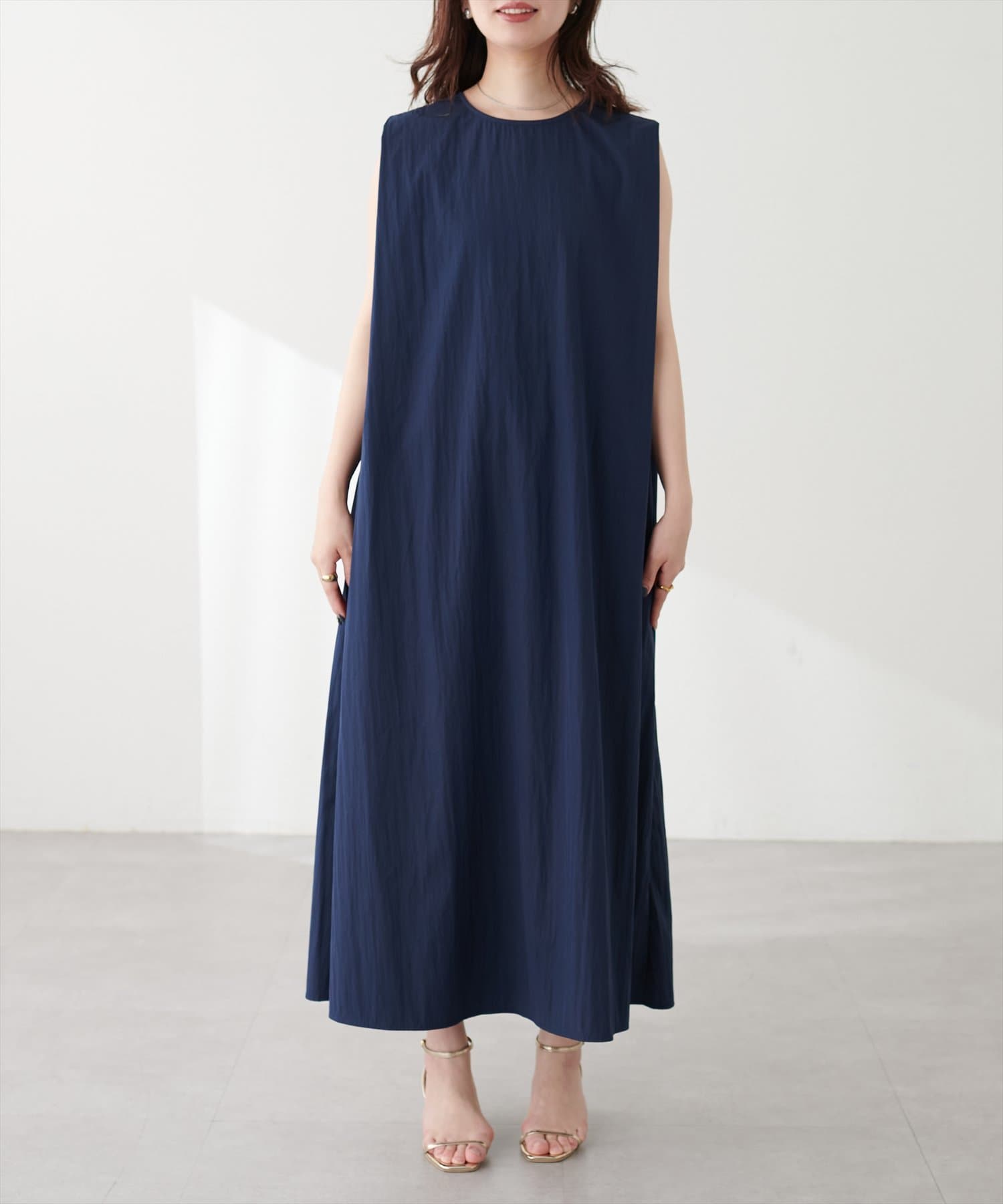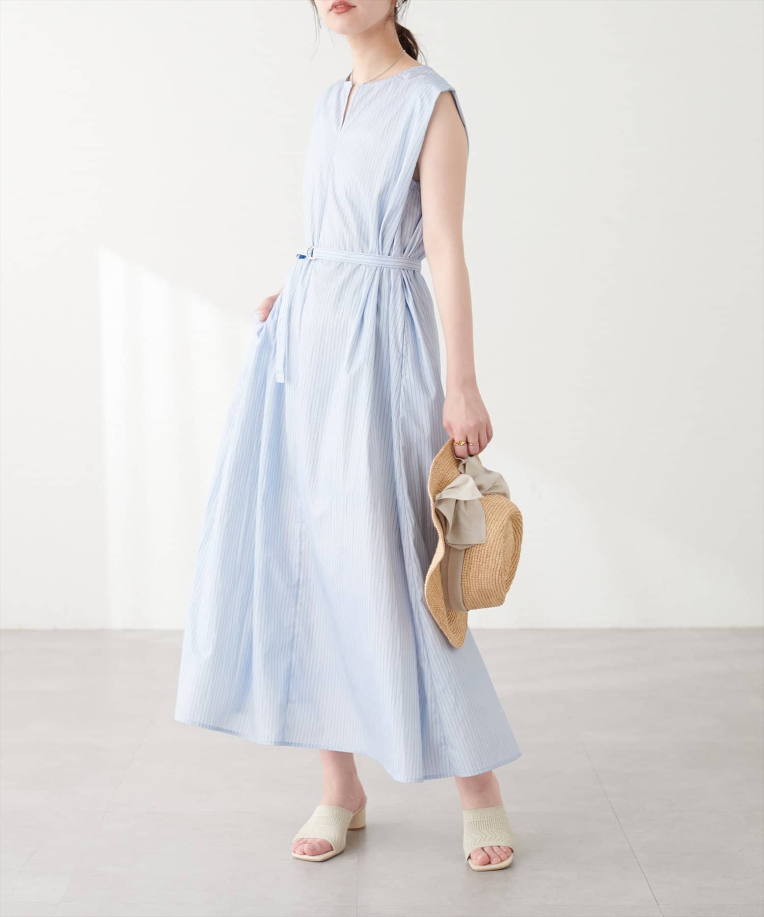 Aラインのたっぷりとしたシルエットの大人見えするシャツワンピースです。
