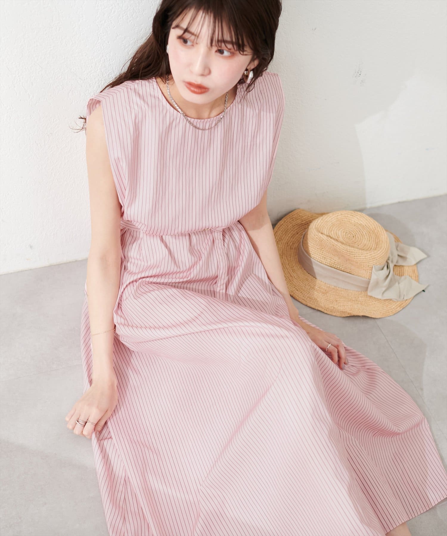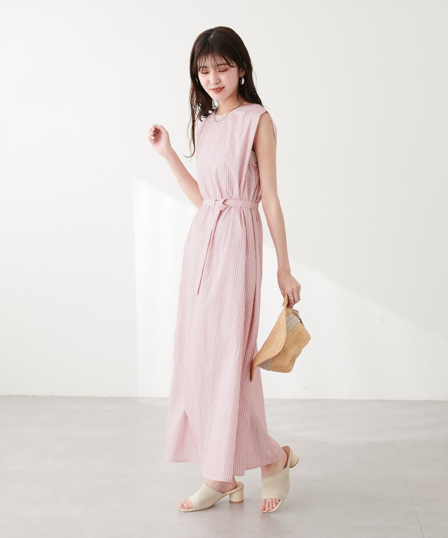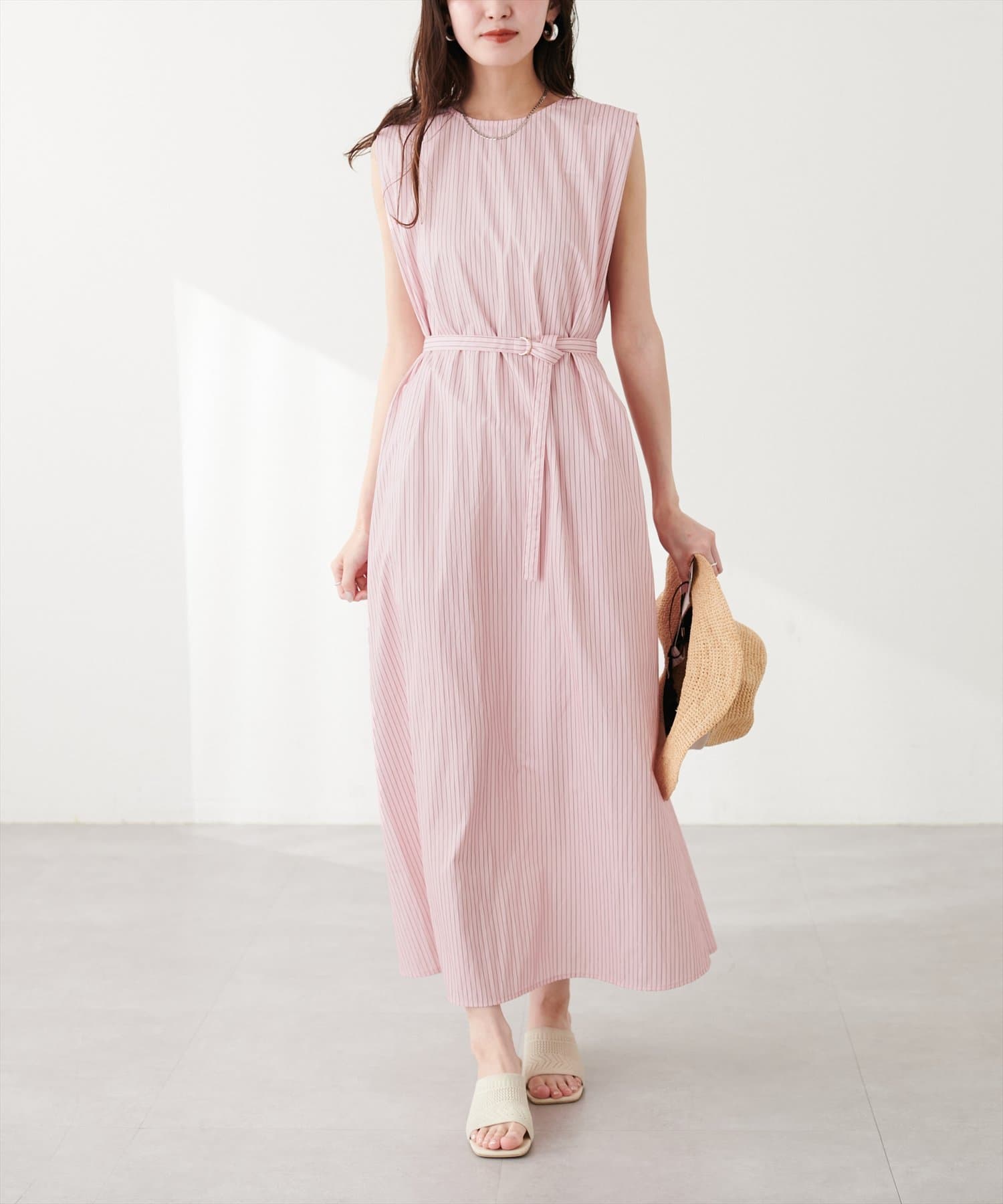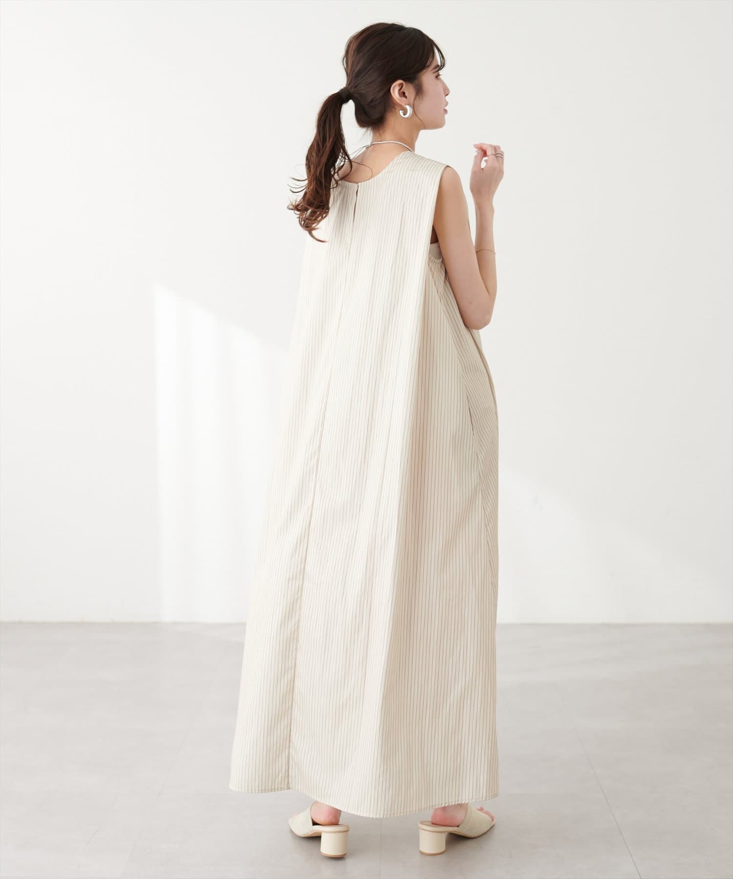 Aラインのたっぷりとしたシルエットの大人見えするシャツワンピースです。