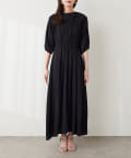 たっぷりのギャザーで大人の女性らしさを演出しつつ、ウエストはゴム仕様なので着脱も楽でリラックス感のある着心地。