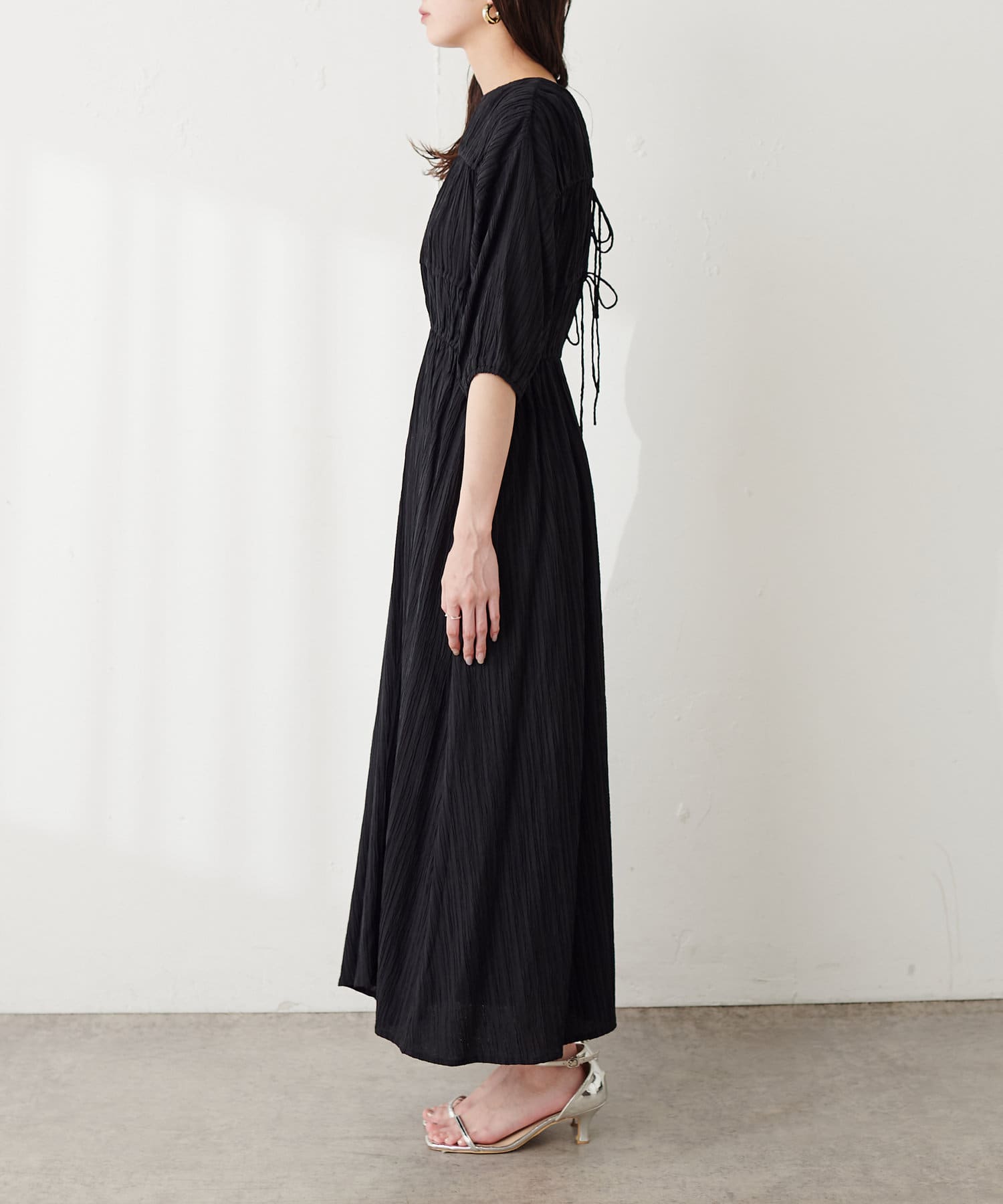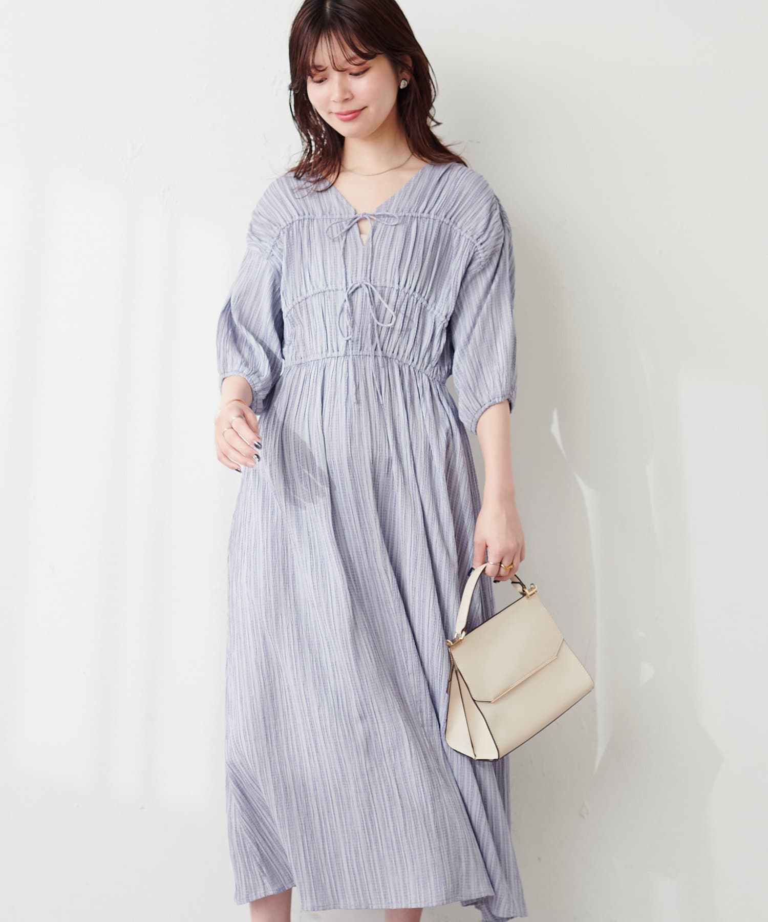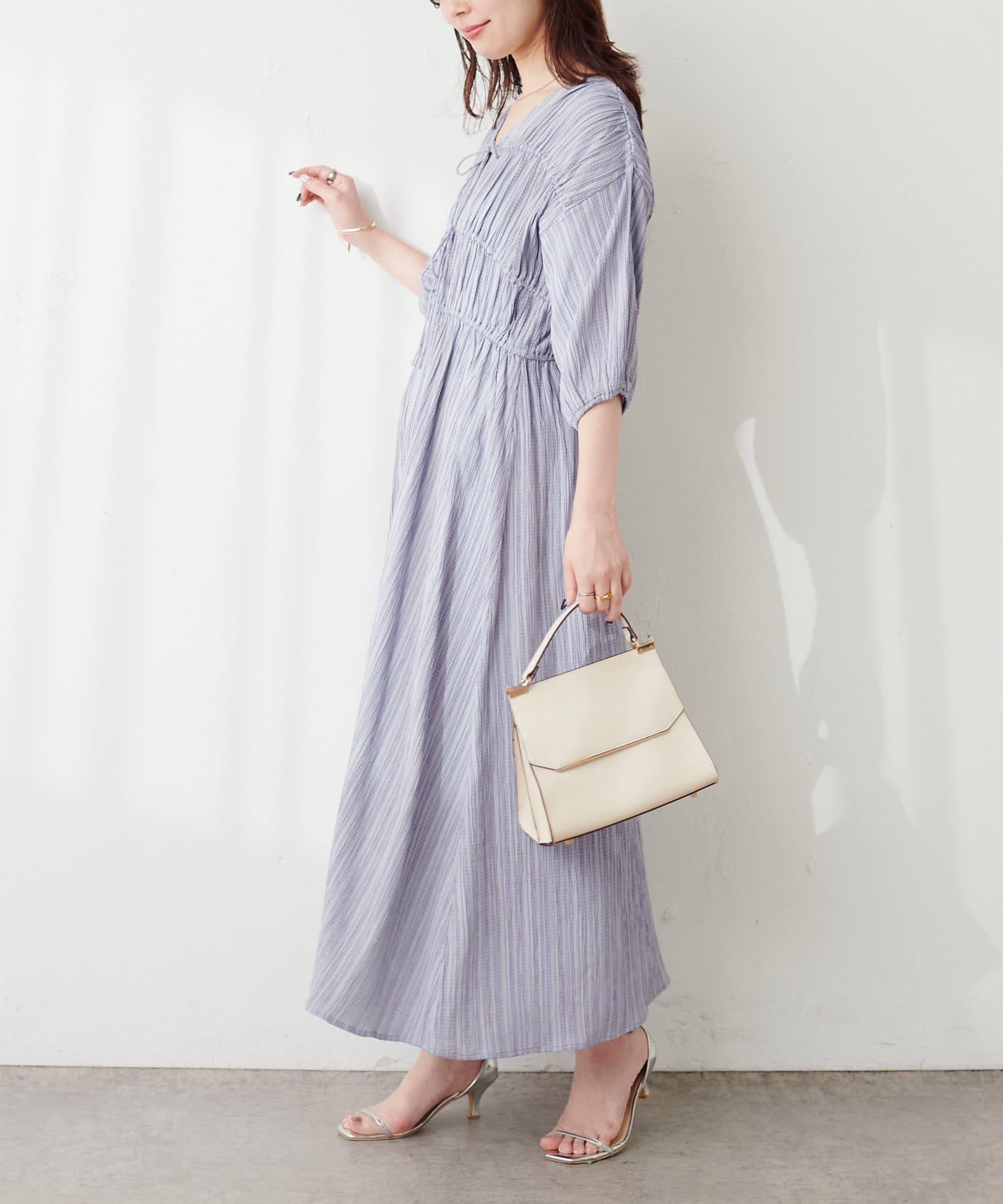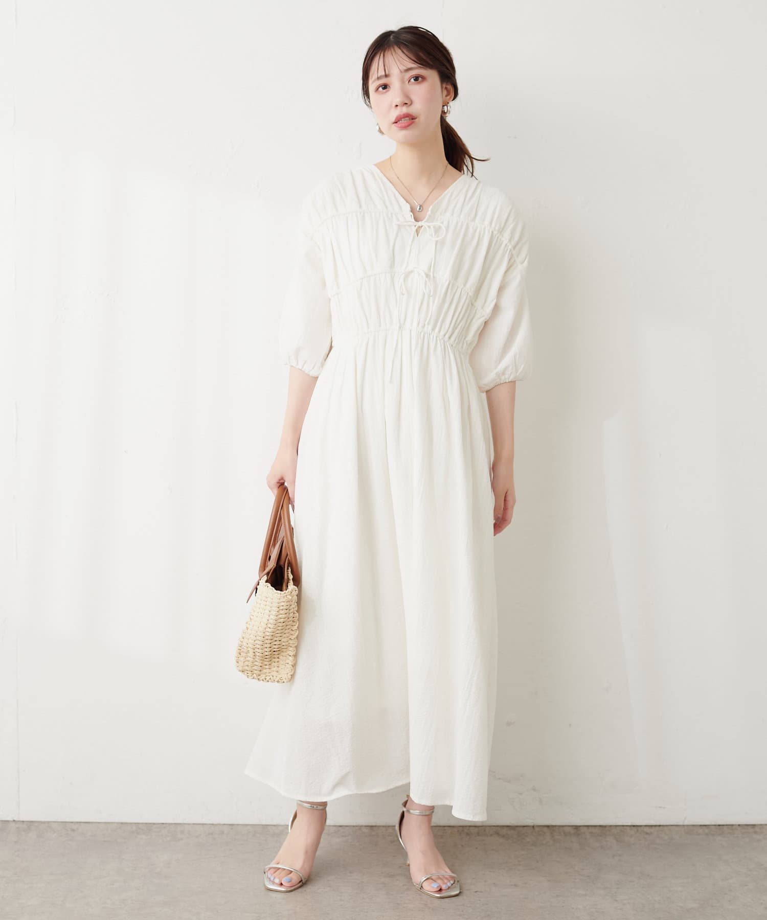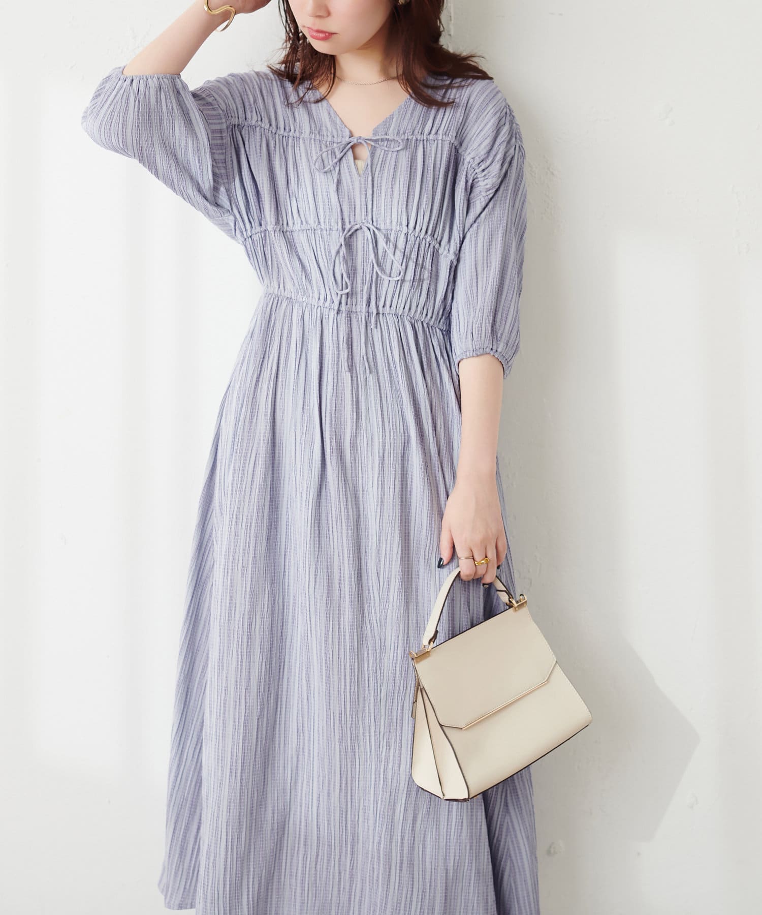 2段のドロストデザインがトレンドライクな大人可愛いワンピース。
