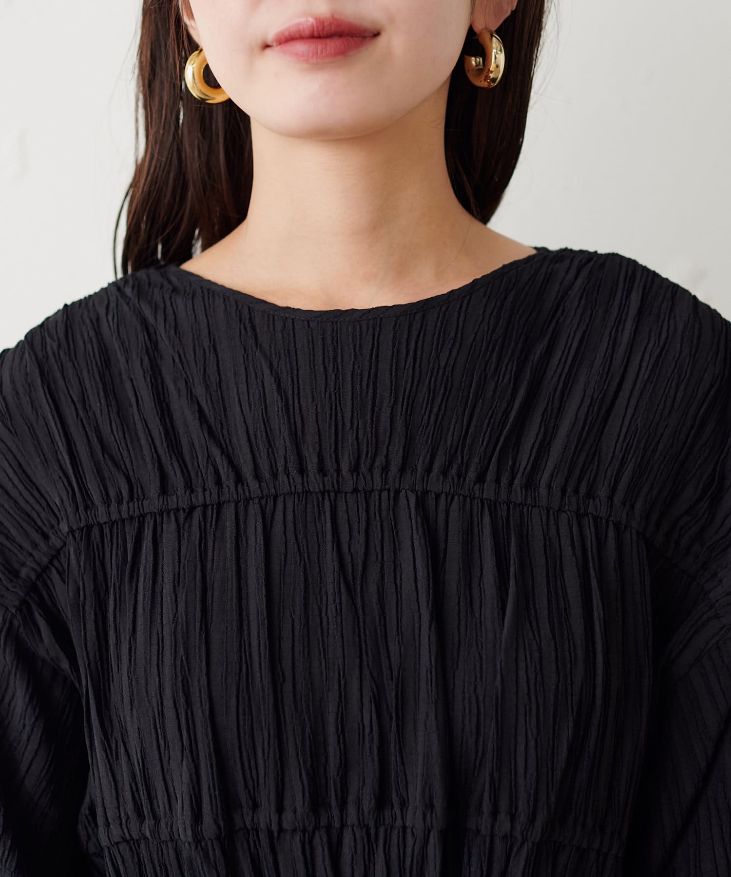リバイバルアイテム!ドロストリボンとたっぷりのギャザーで大人フェミニンな1枚。