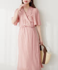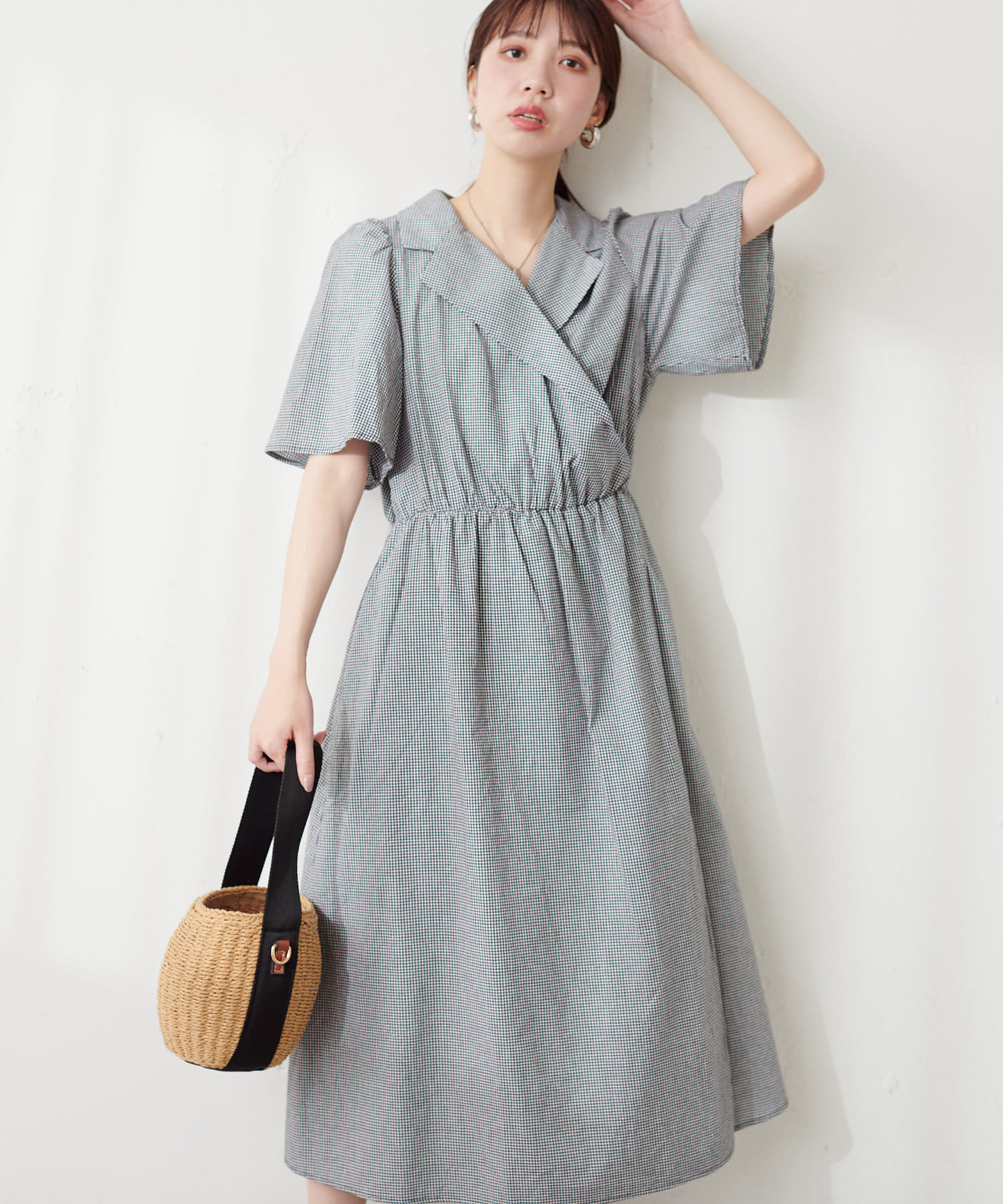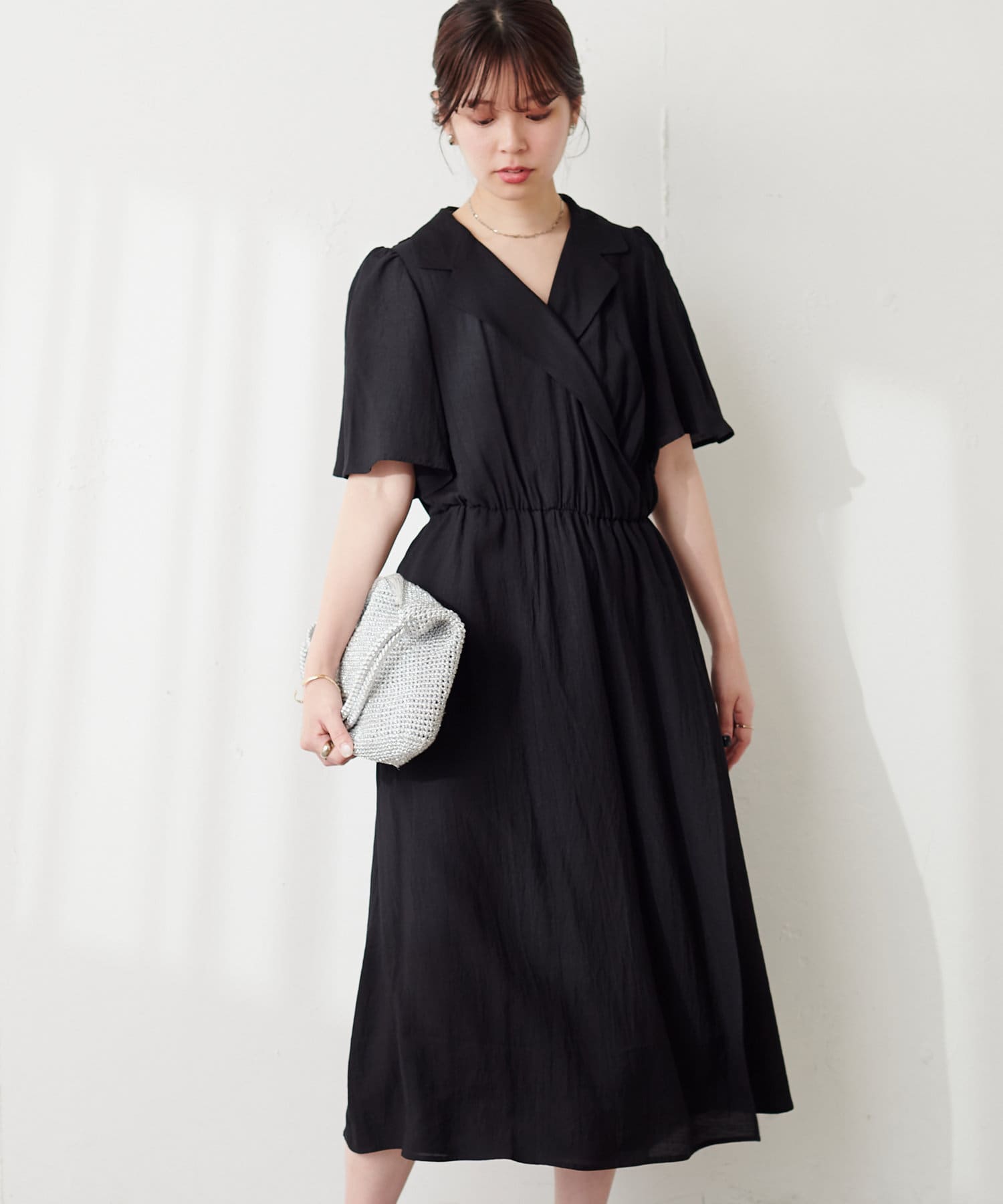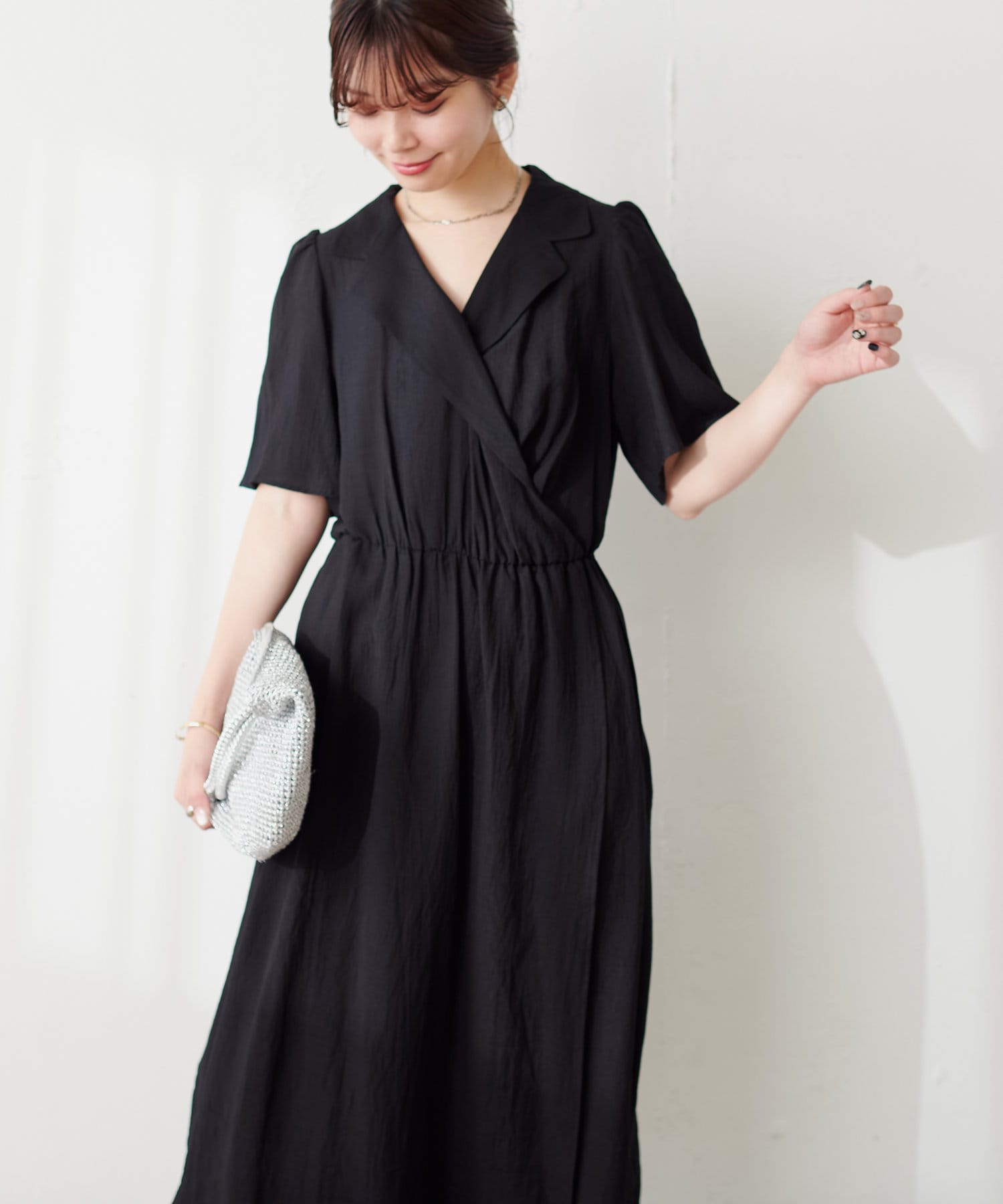 きちんと感のある襟付きカシュクールワンピース。
