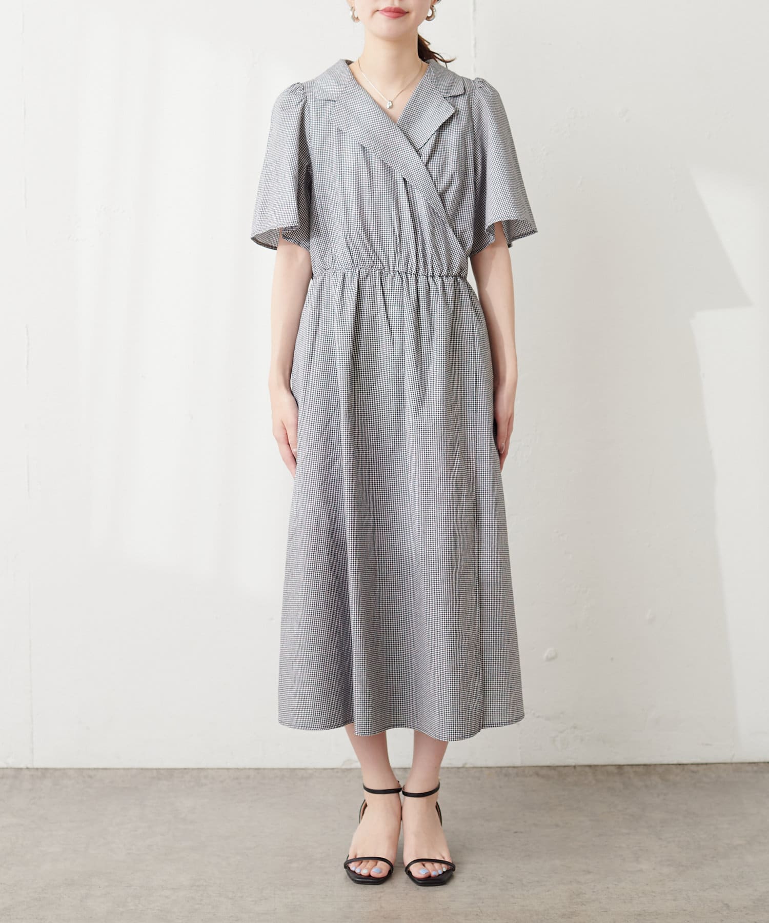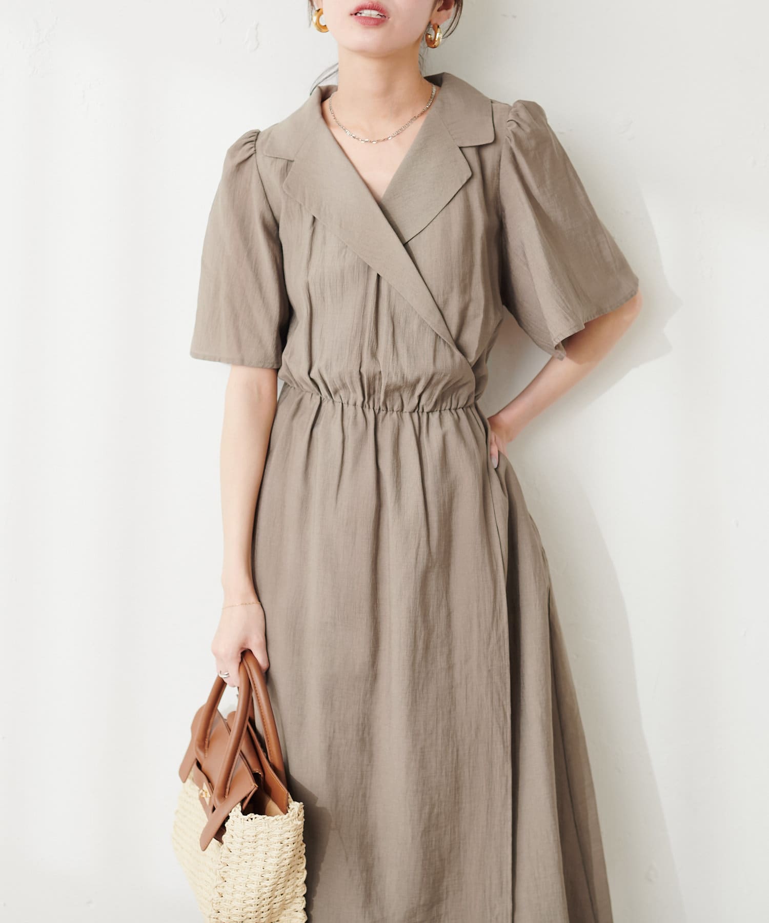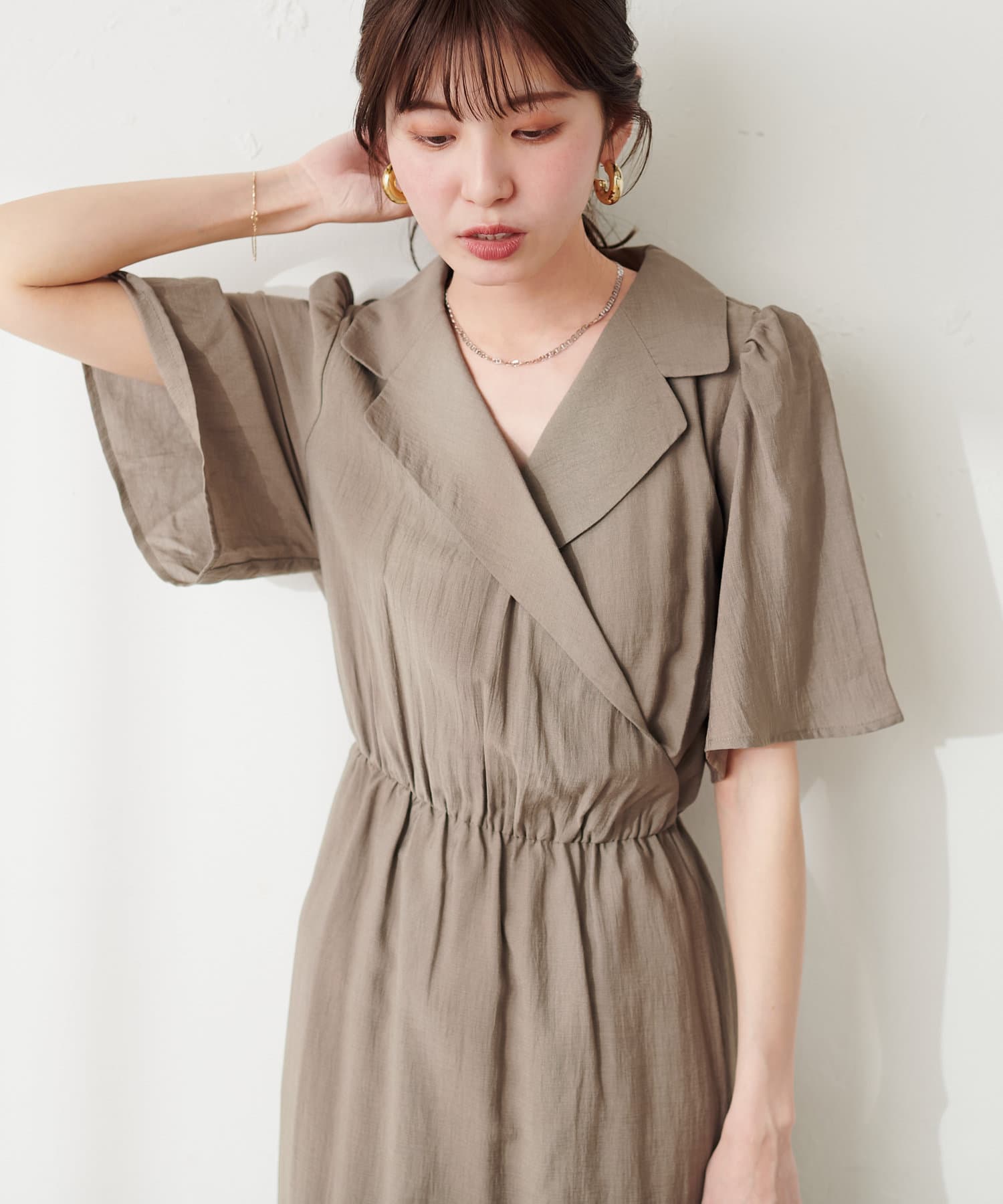 【mamamo】衿付きWZIPカシュクールワンピース