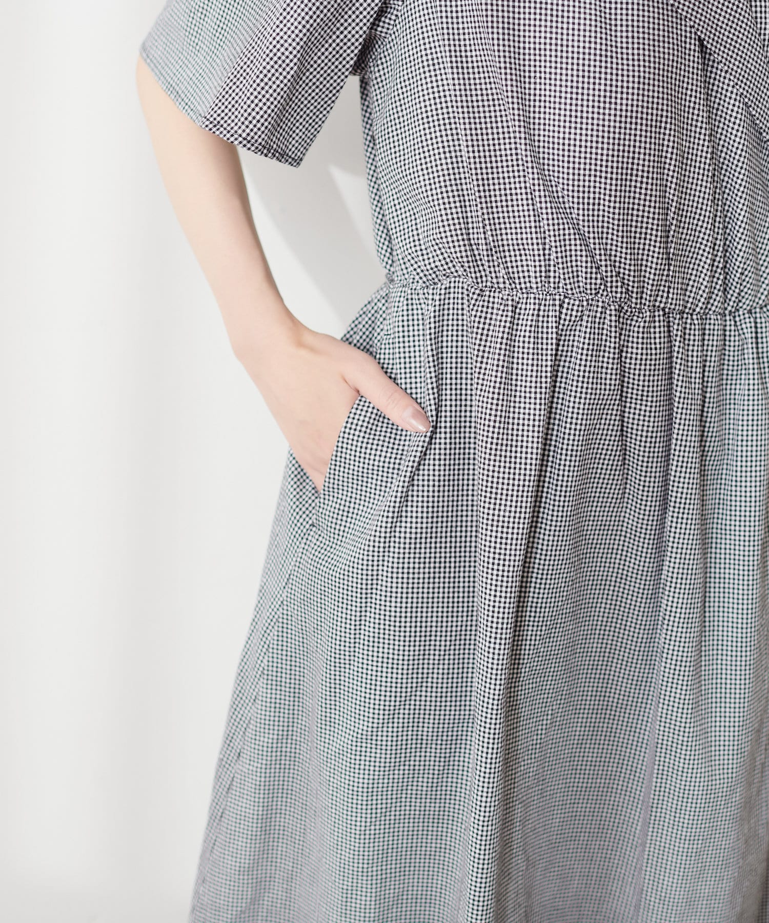 少し長めの袖が気になる二の腕もカバーしてくれ、スカート部分は巻きスカート風になっているので、めくれる心配もありません。